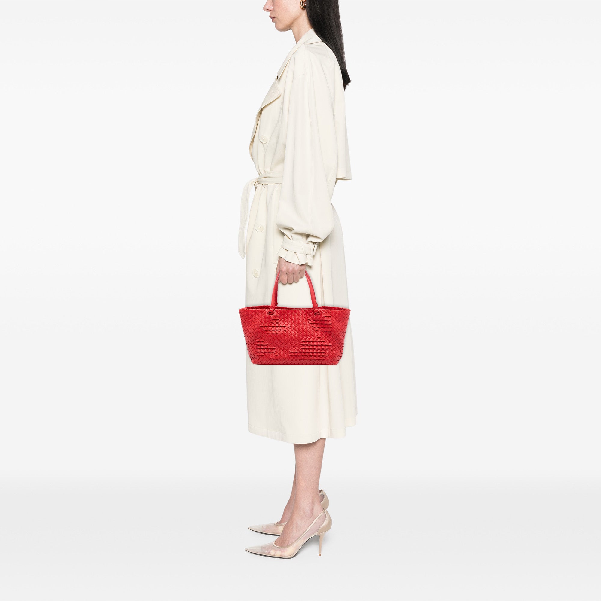 Red Bottega Veneta Nappa Intrecciato Ruffle Tote