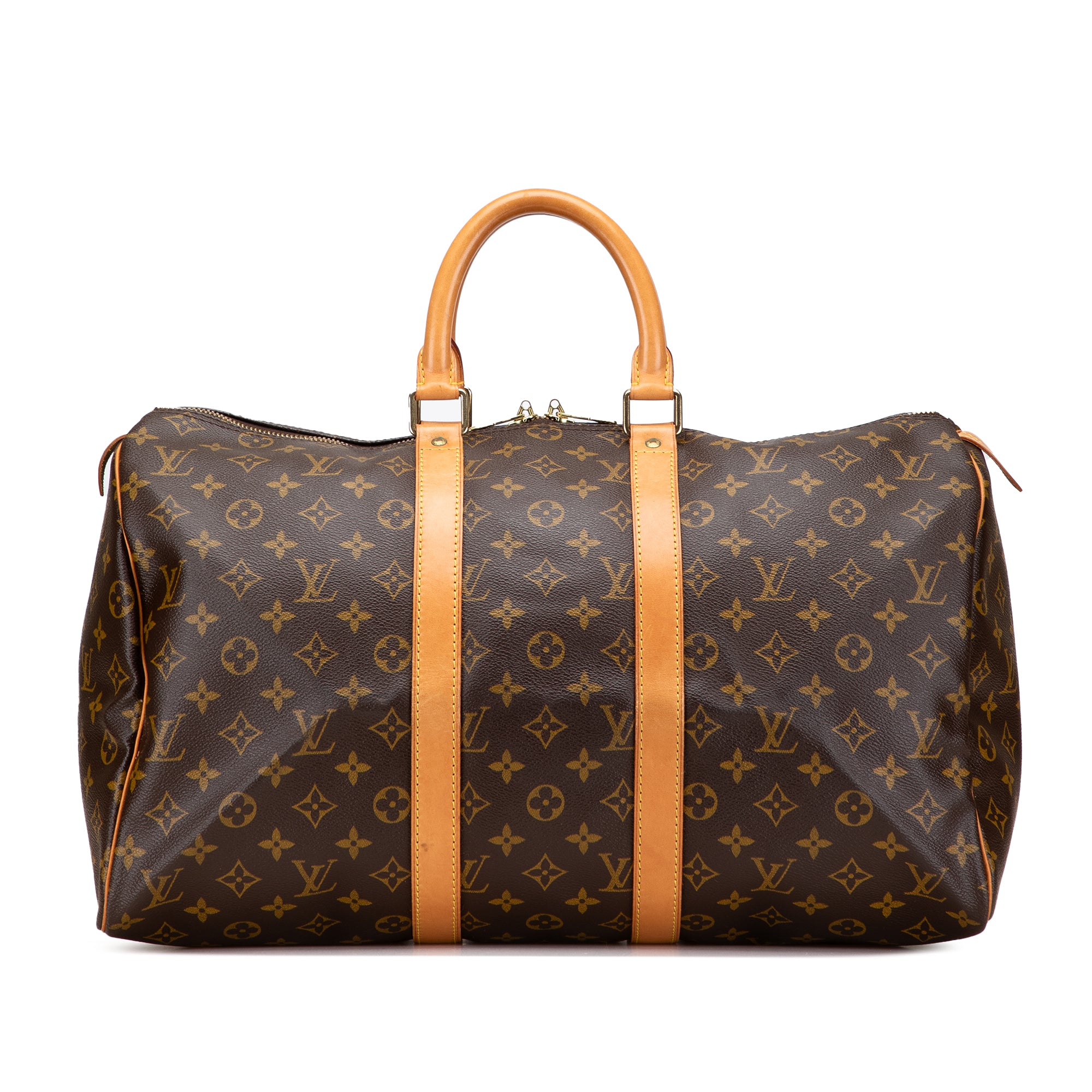 Please note this is a pre-owned item that may display signs of wear consistent with the condition listed above and shown in photos. Designer Revival guarantees this is an authentic Brown Louis Vuitton Monogram Keepall 45 Travel Bag or 100% of your money back. Learn more about our authentication process.