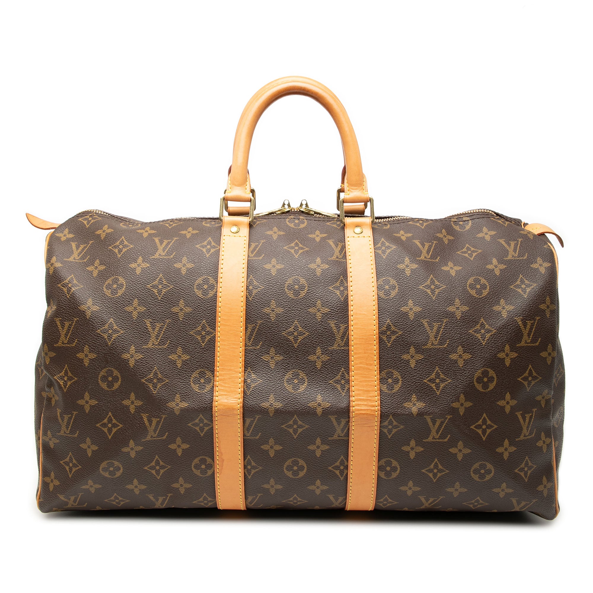 Please note this is a pre-owned item that may display signs of wear consistent with the condition listed above and shown in photos. Designer Revival guarantees this is an authentic Brown Louis Vuitton Monogram Keepall 45 Travel Bag or 100% of your money back. Learn more about our authentication process.