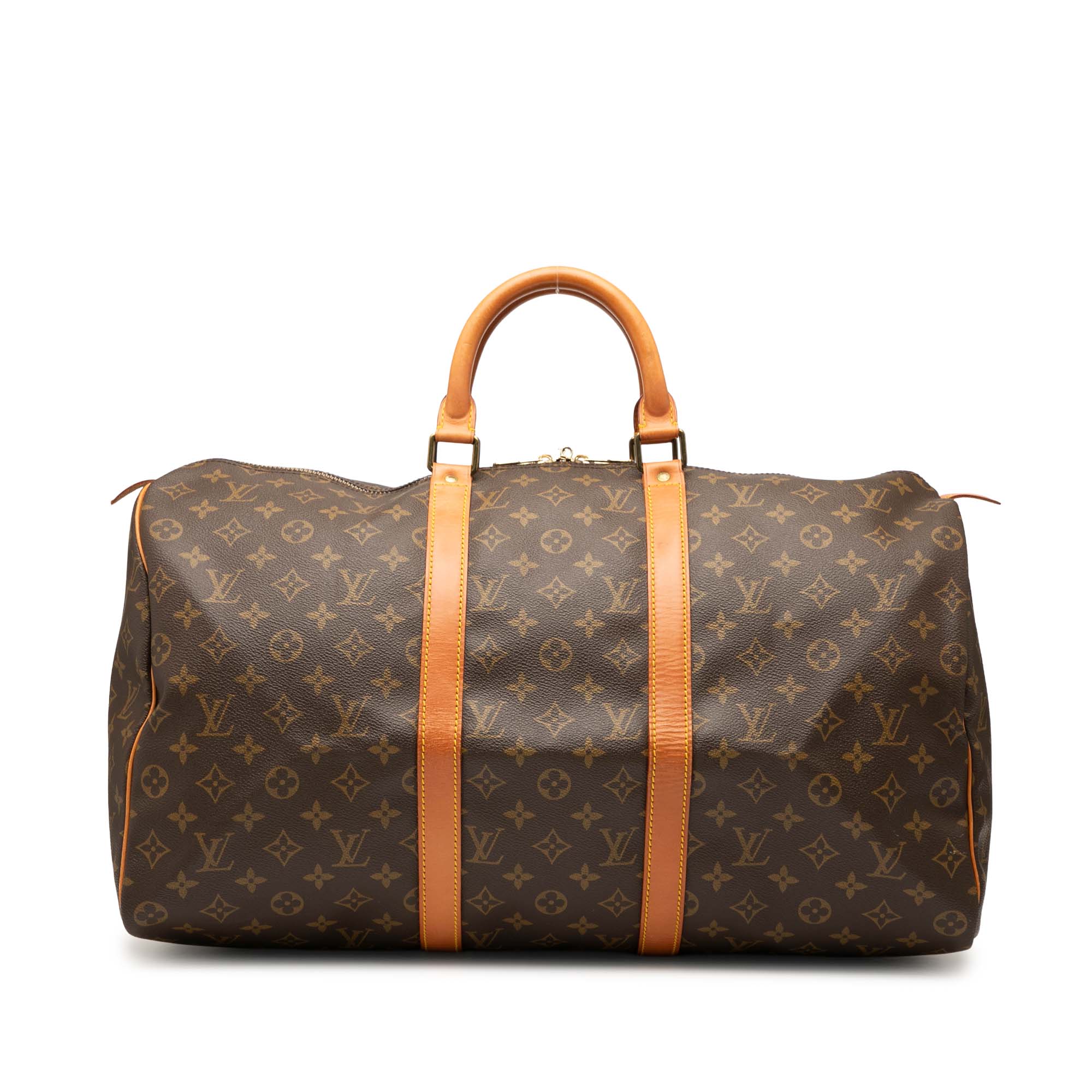 Please note this is a pre-owned item that may display signs of wear consistent with the condition listed above and shown in photos. Designer Revival guarantees this is an authentic Brown Louis Vuitton Monogram Keepall 50 Travel Bag or 100% of your money back. Learn more about our authentication process.
