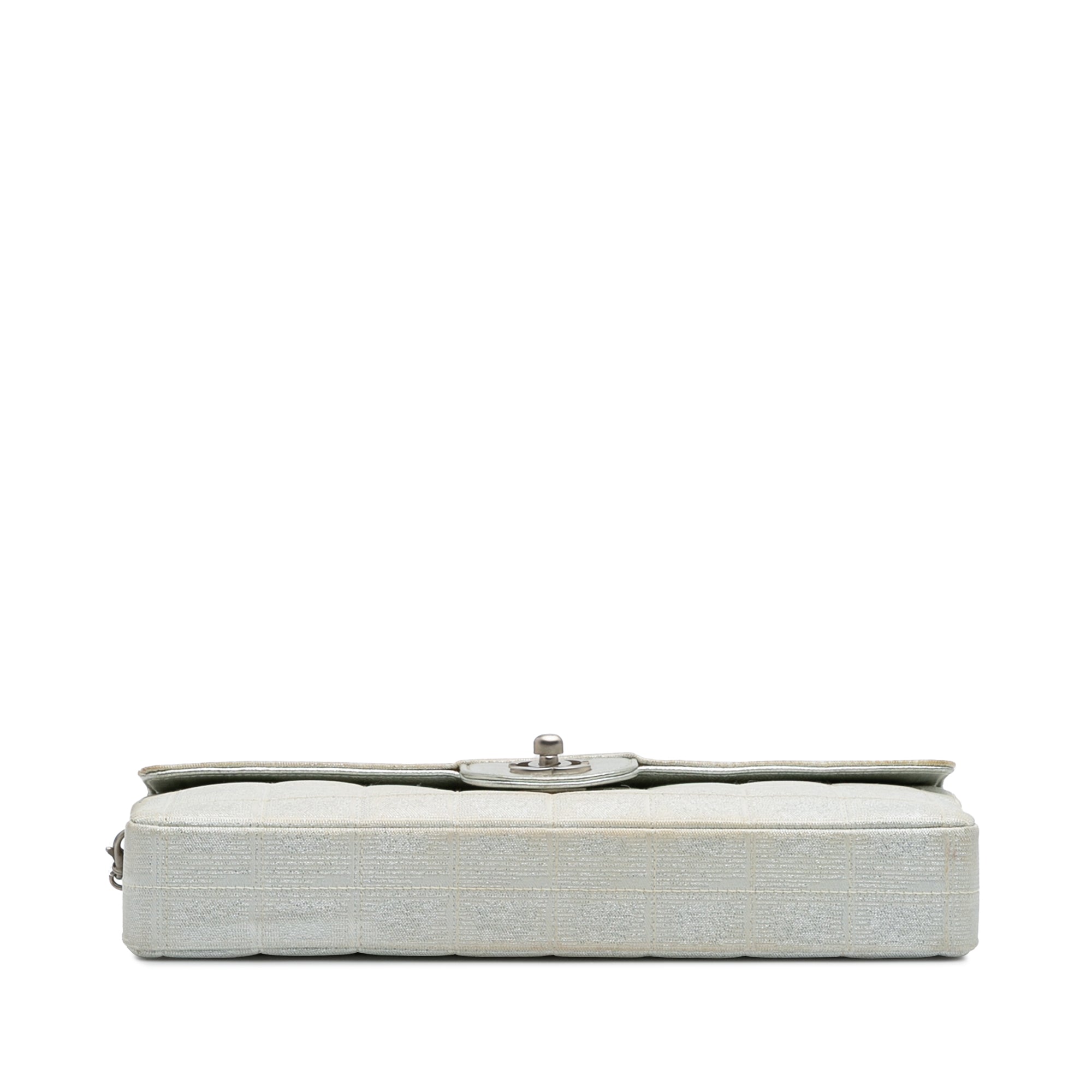 Silver Chanel New Travel Line Nylon East West Flap Shoulder Bag - Designer Revival Silver Chanel New Travel Line Nylon East West Flap Shoulder Bag - Designer Revival