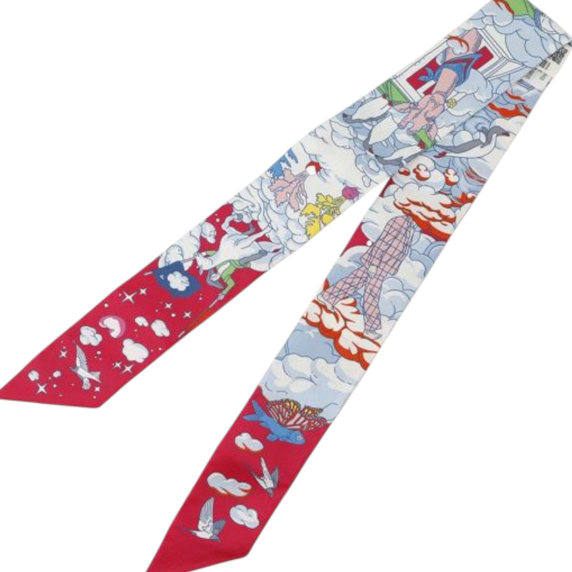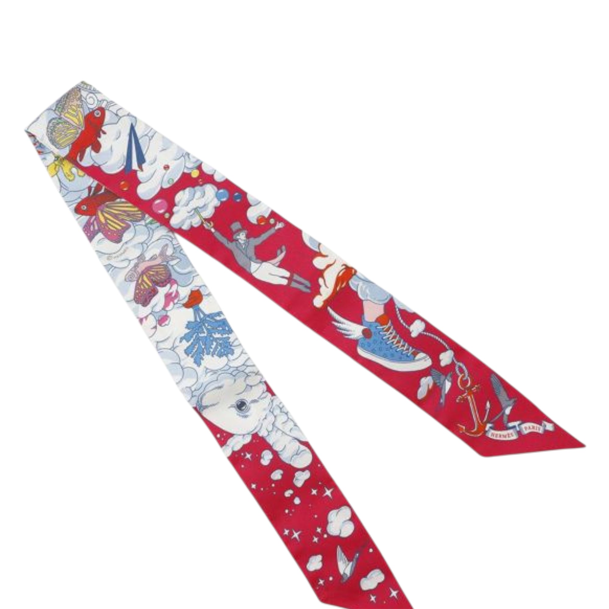 Pink Hermès Sur Mon Nuage Silk Twilly Scarf Scarves