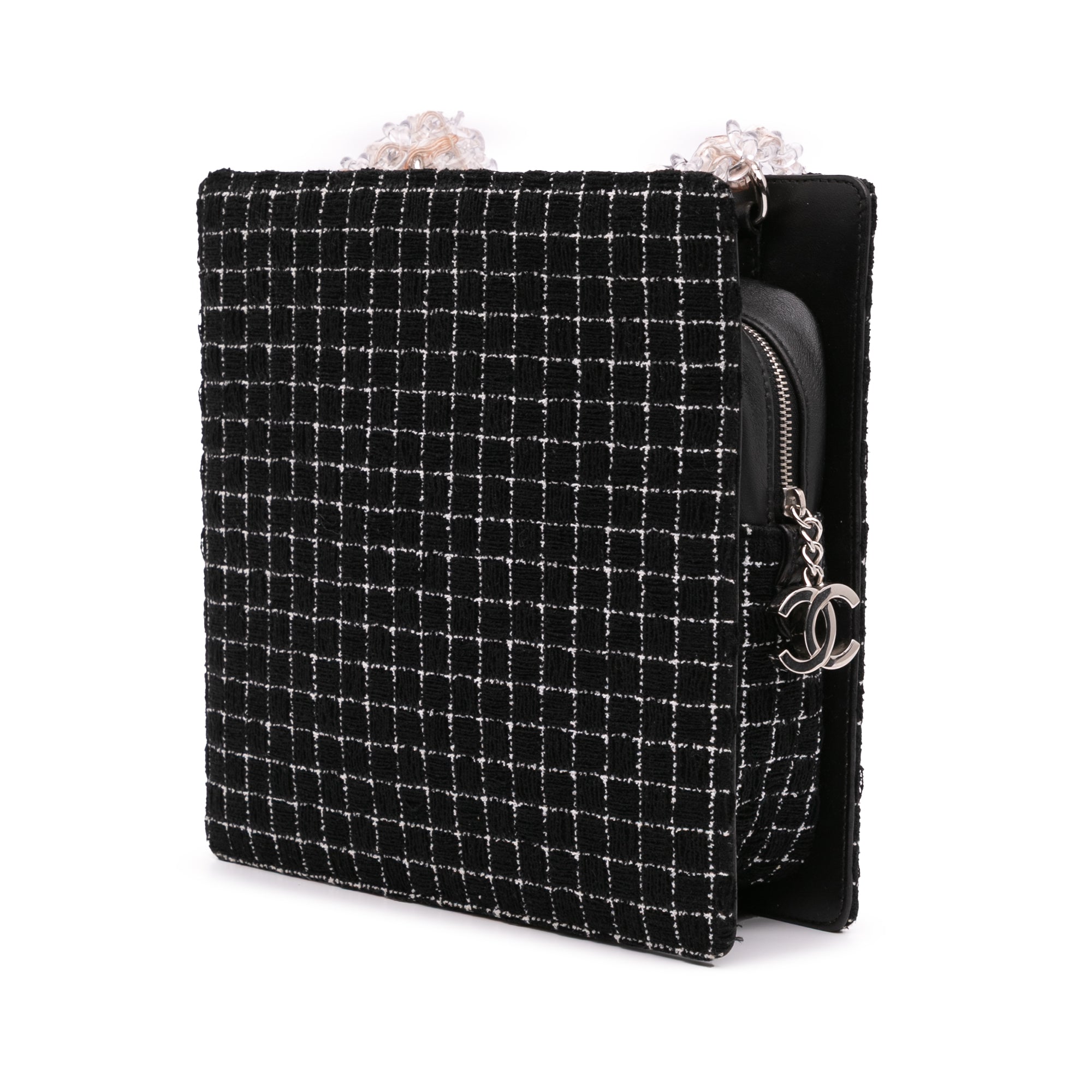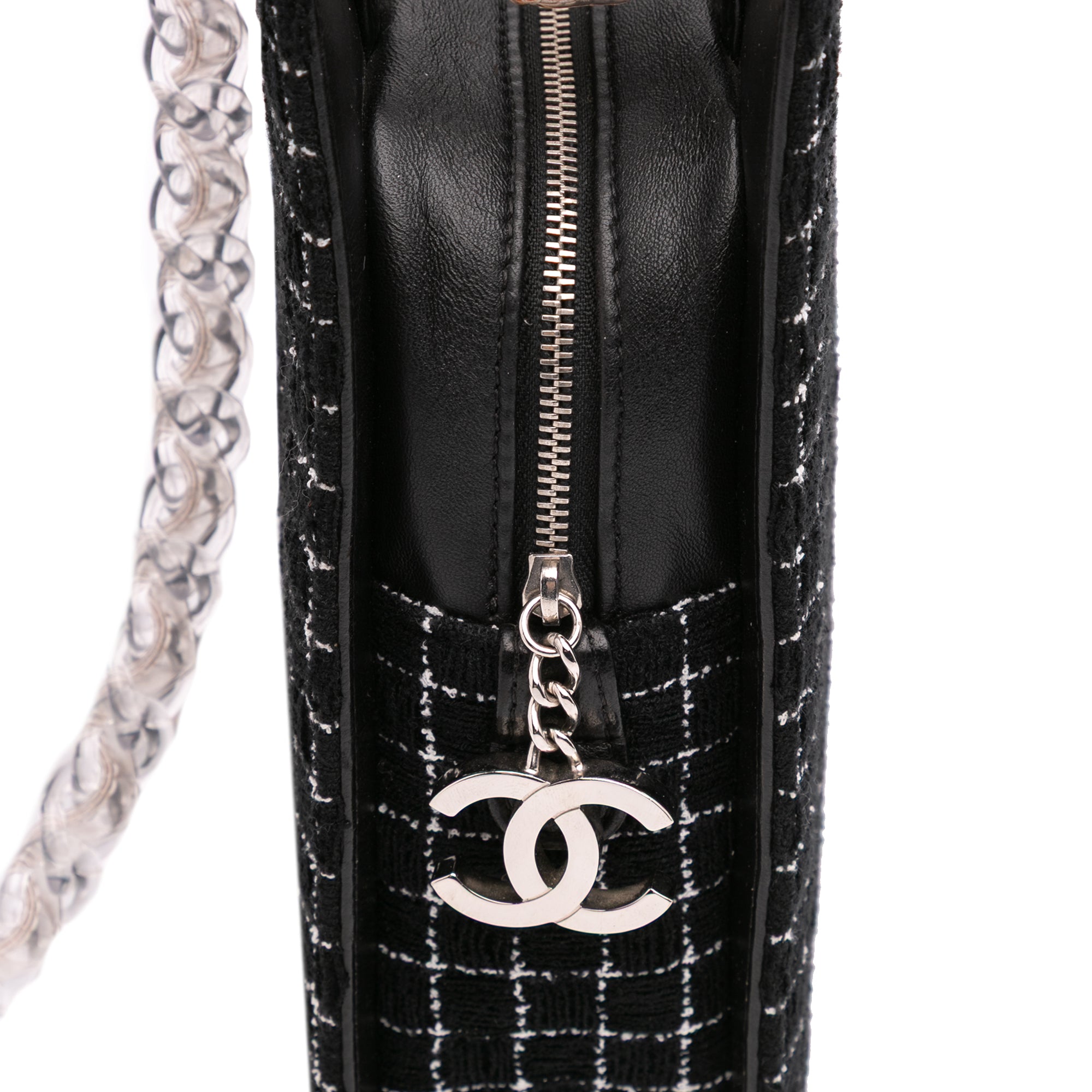 Black Chanel Tweed and Resin Zipped Chain Shopping Bag