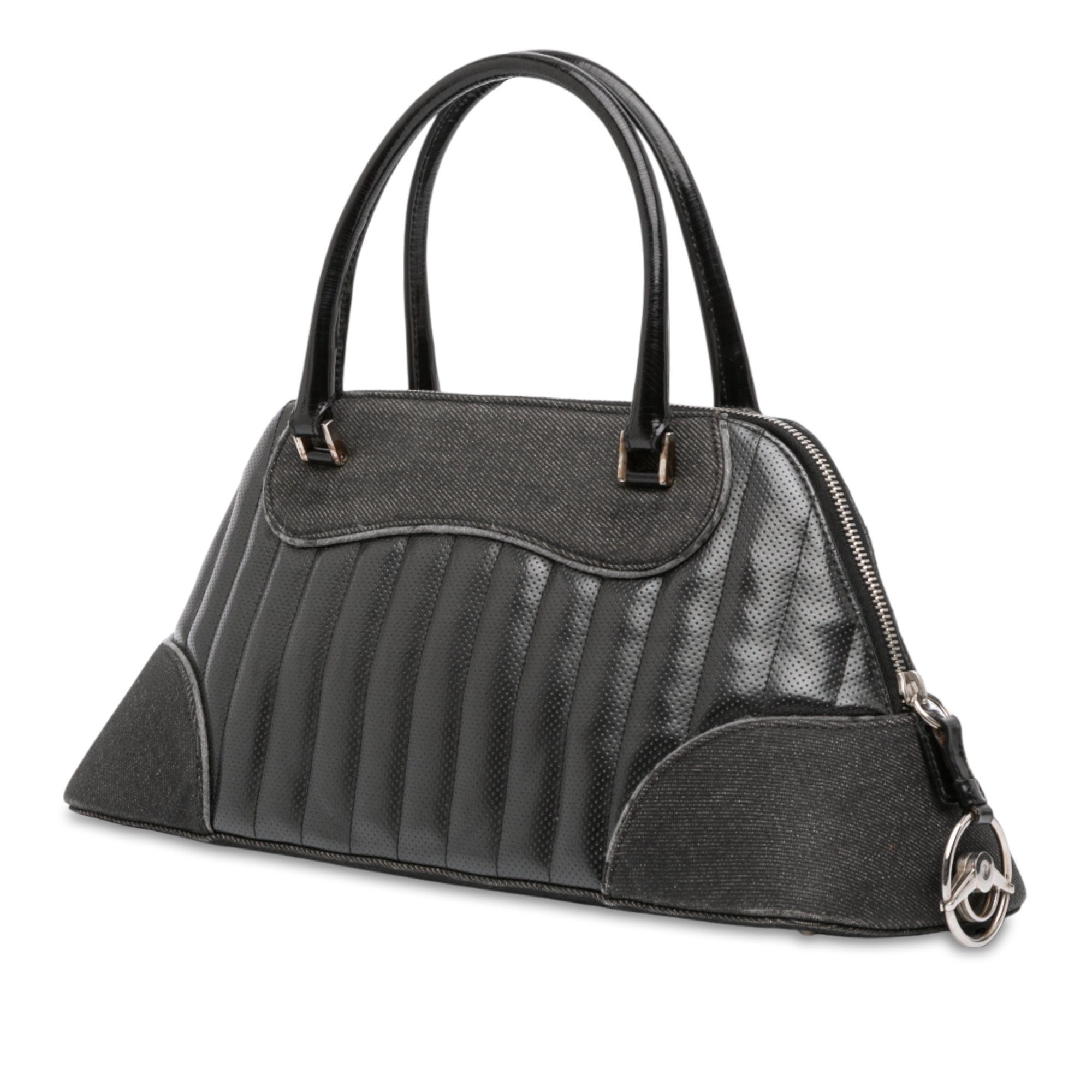 Black Dior Perforated Leather and Denim Montaigne Chris 1947 Cadillac Top Handle Bag