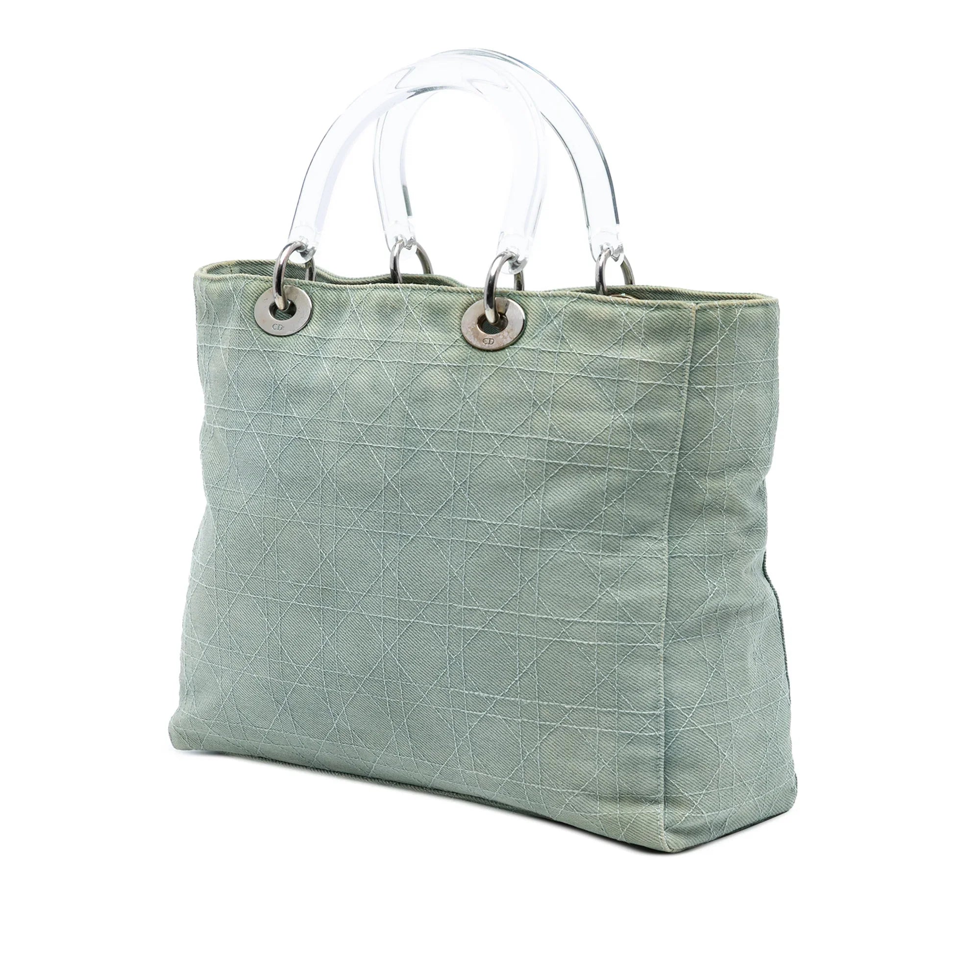 Blue Dior Large Denim Cannage Acrylic Handles Lady Dior Satchel