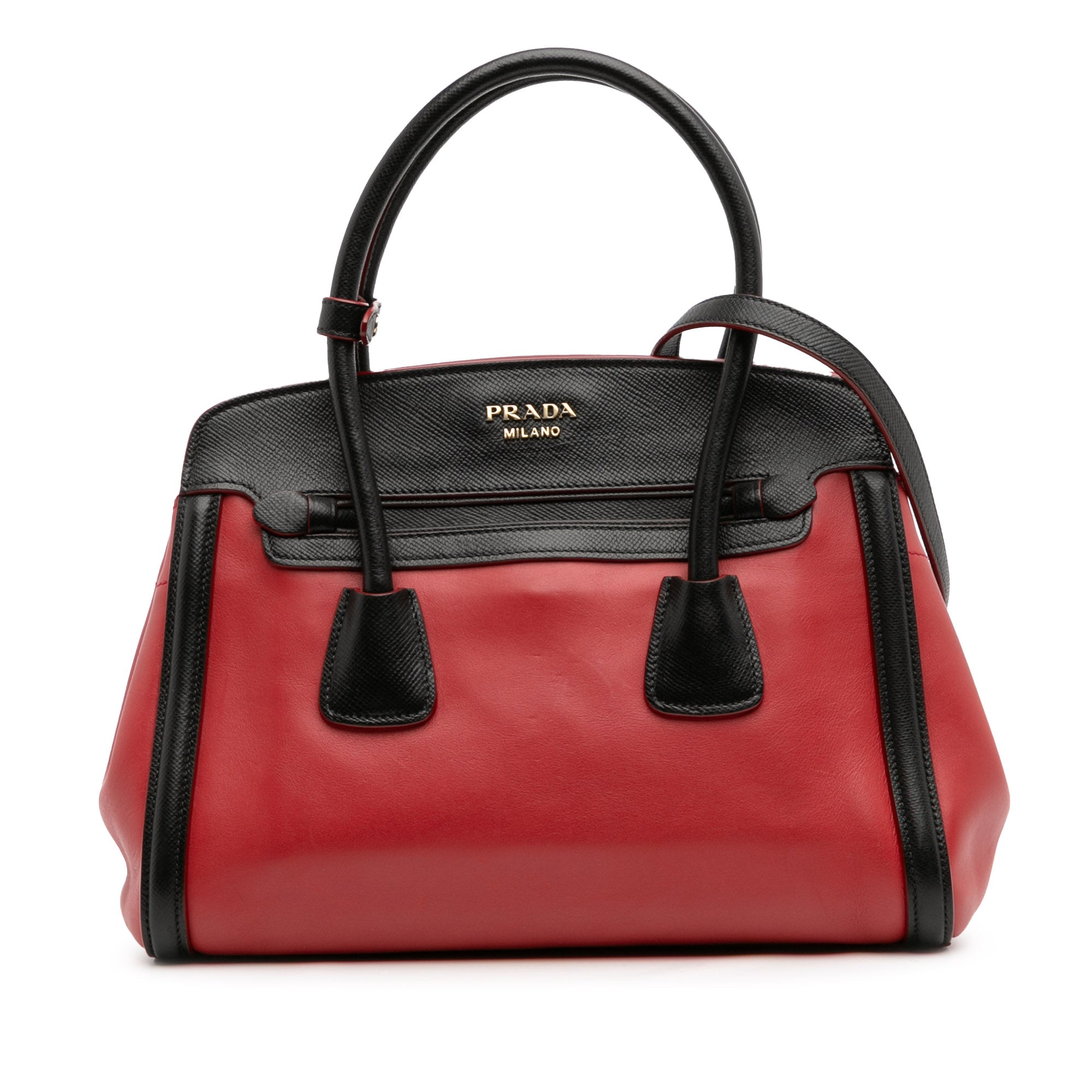 Red Prada Bicolor Saffiano and City Calf Tote Satchel - Designer Revival Red Prada Bicolor Saffiano and City Calf Tote Satchel - Designer Revival