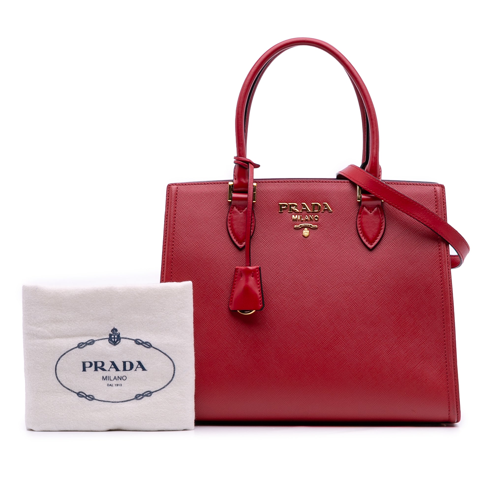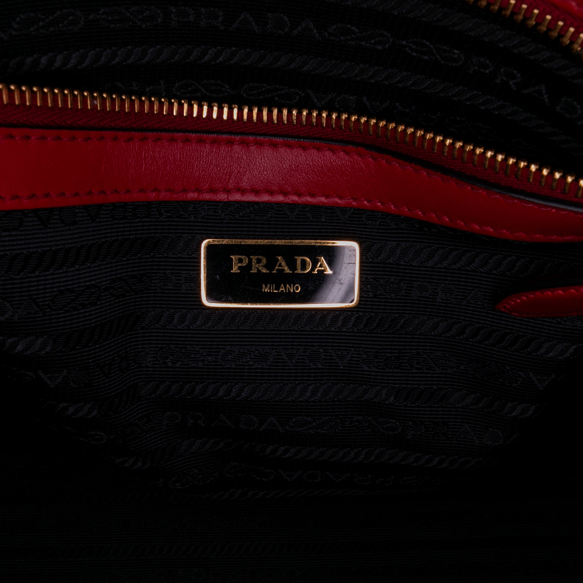Red Prada Soft Calf Trimmed Saffiano Convertible Tote Satchel