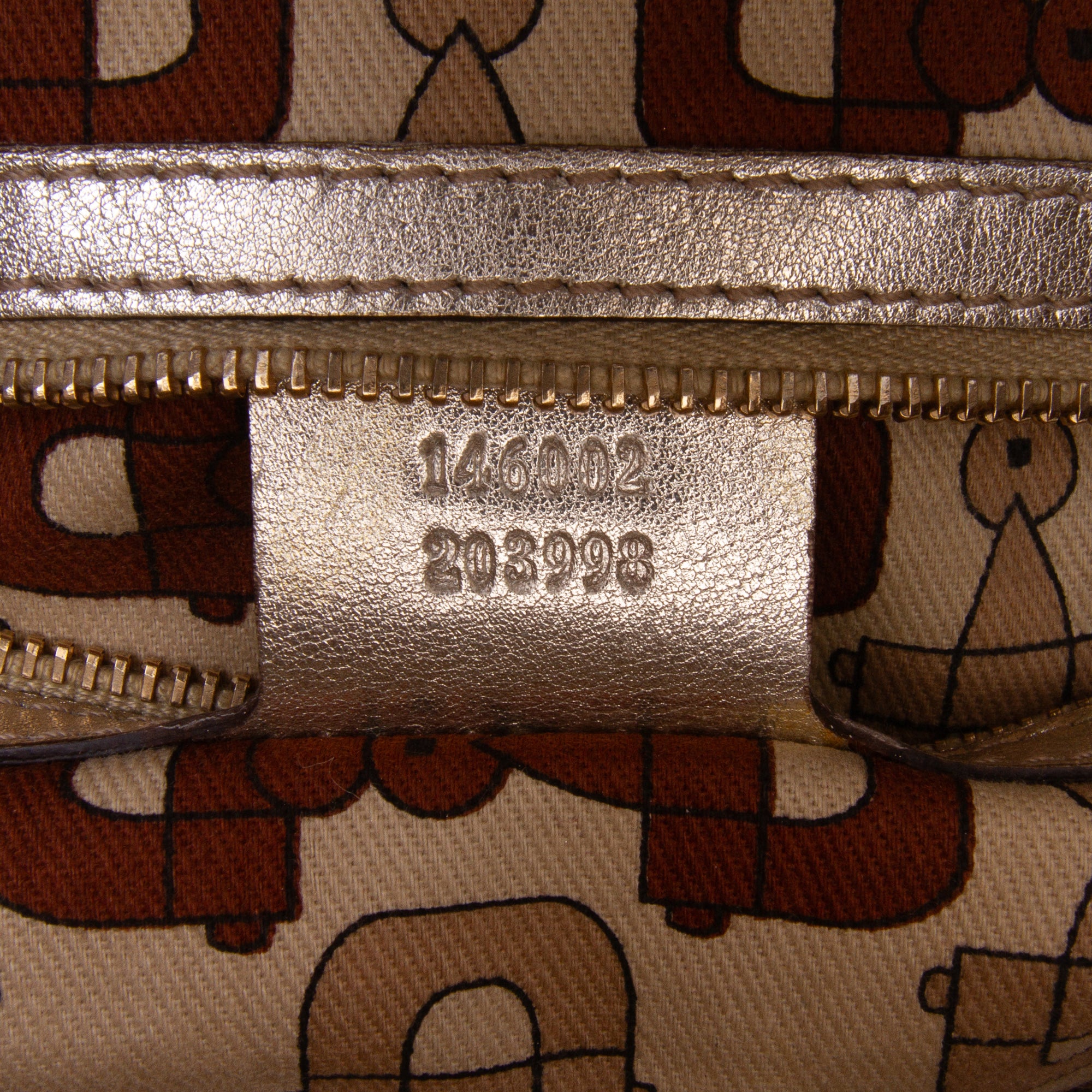 Please note this is a pre-owned item that may display signs of wear consistent with the condition listed above and shown in photos. Designer Revival guarantees this is an authentic Silver Gucci Metallic Guccissima Web Treasure Handbag or 100% of your money back. Learn more about our authentication process.