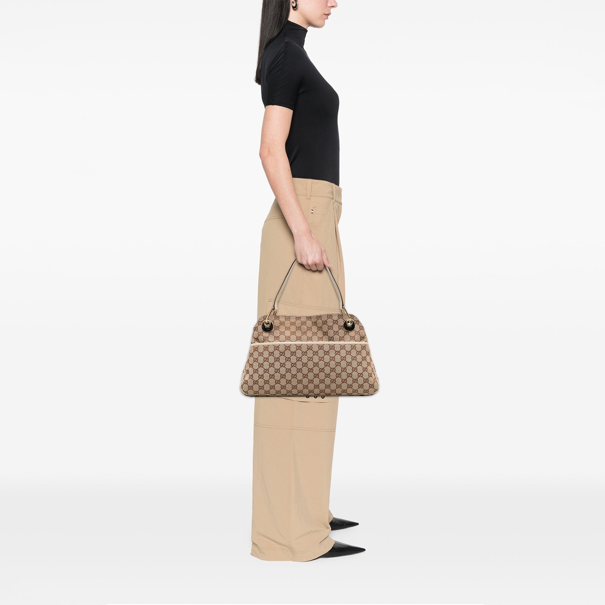 Tan Gucci GG Canvas Eclipse Shoulder Bag - Designer Revival Tan Gucci GG Canvas Eclipse Shoulder Bag - Designer Revival