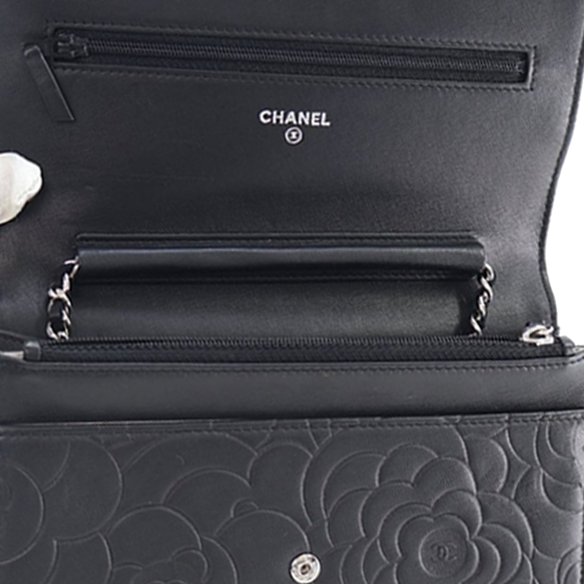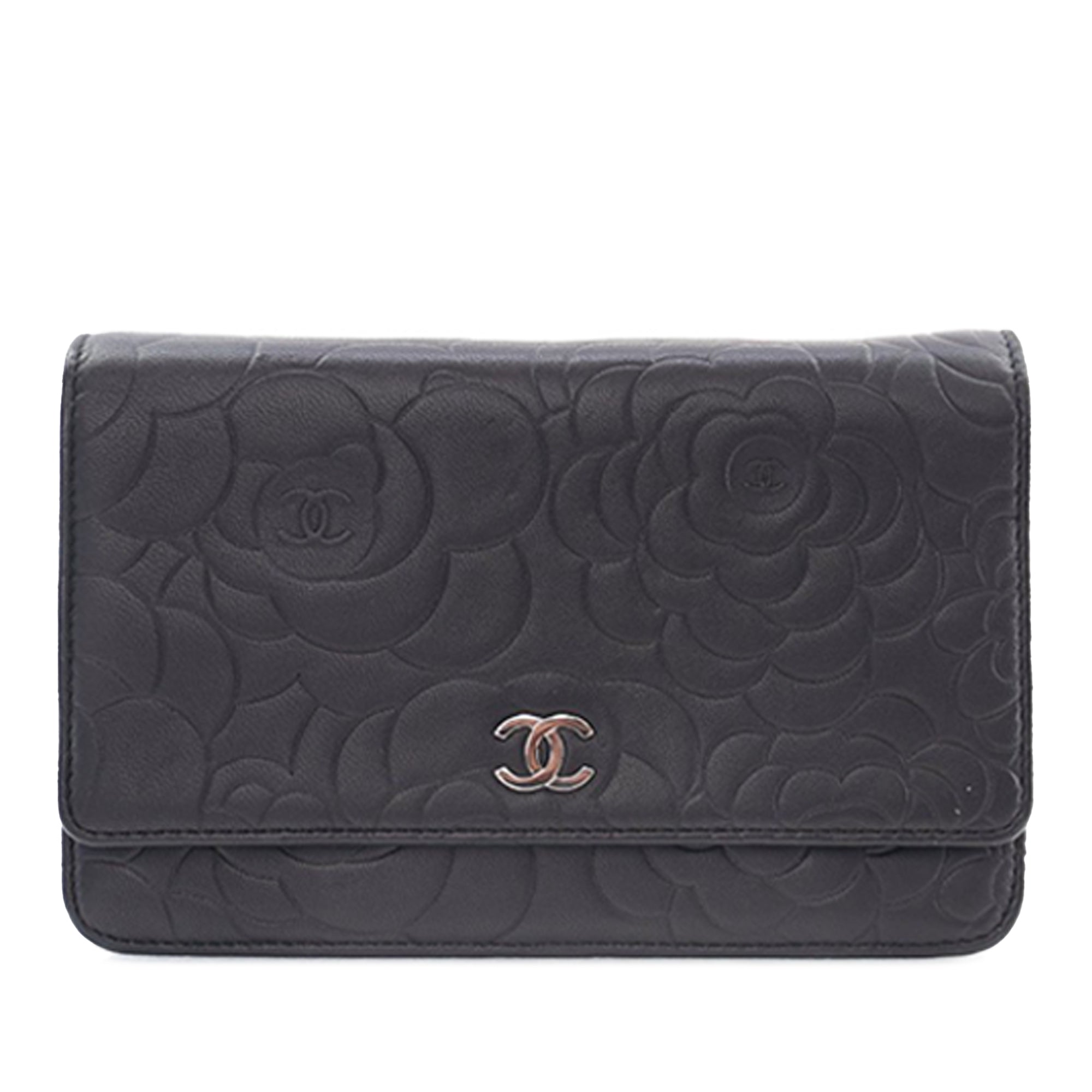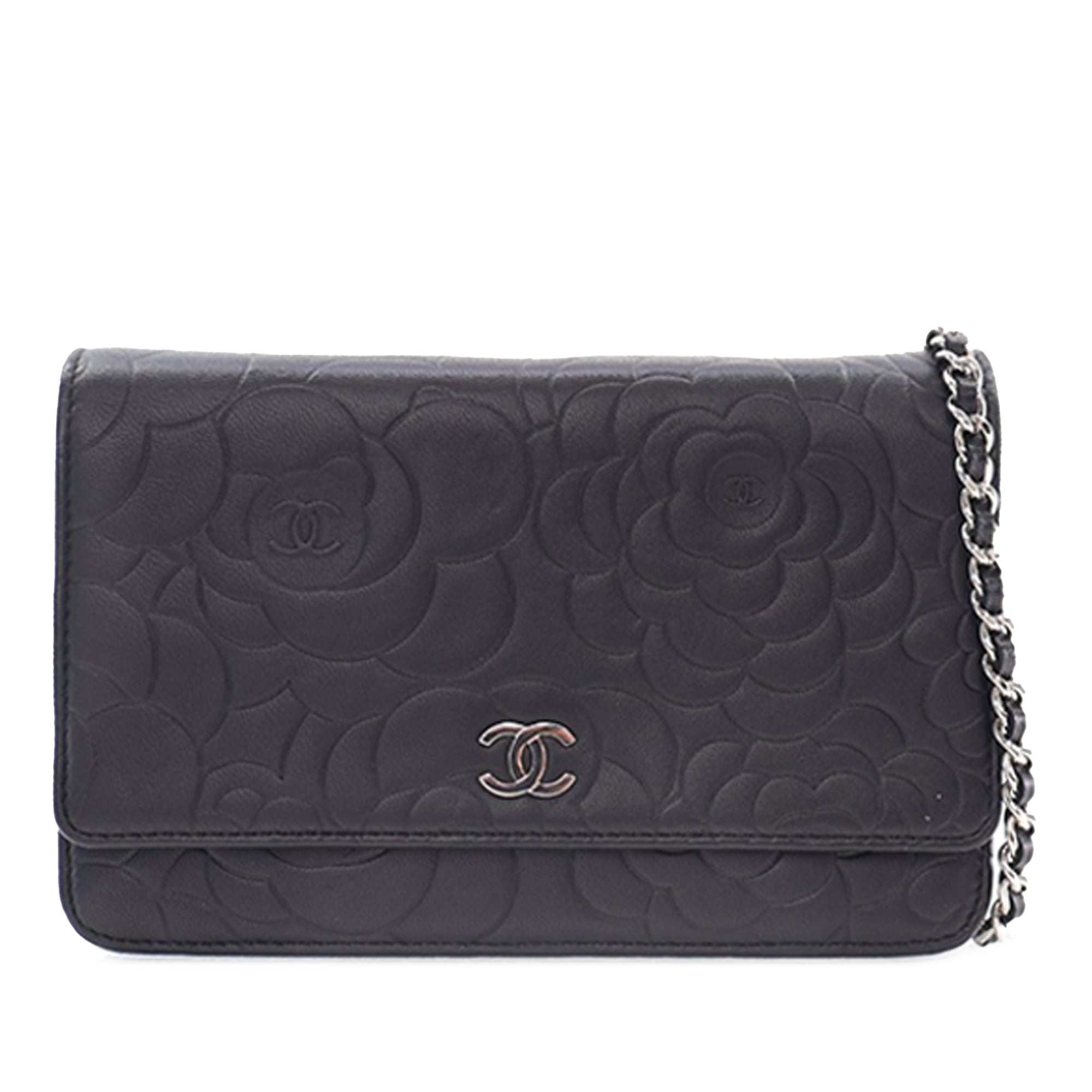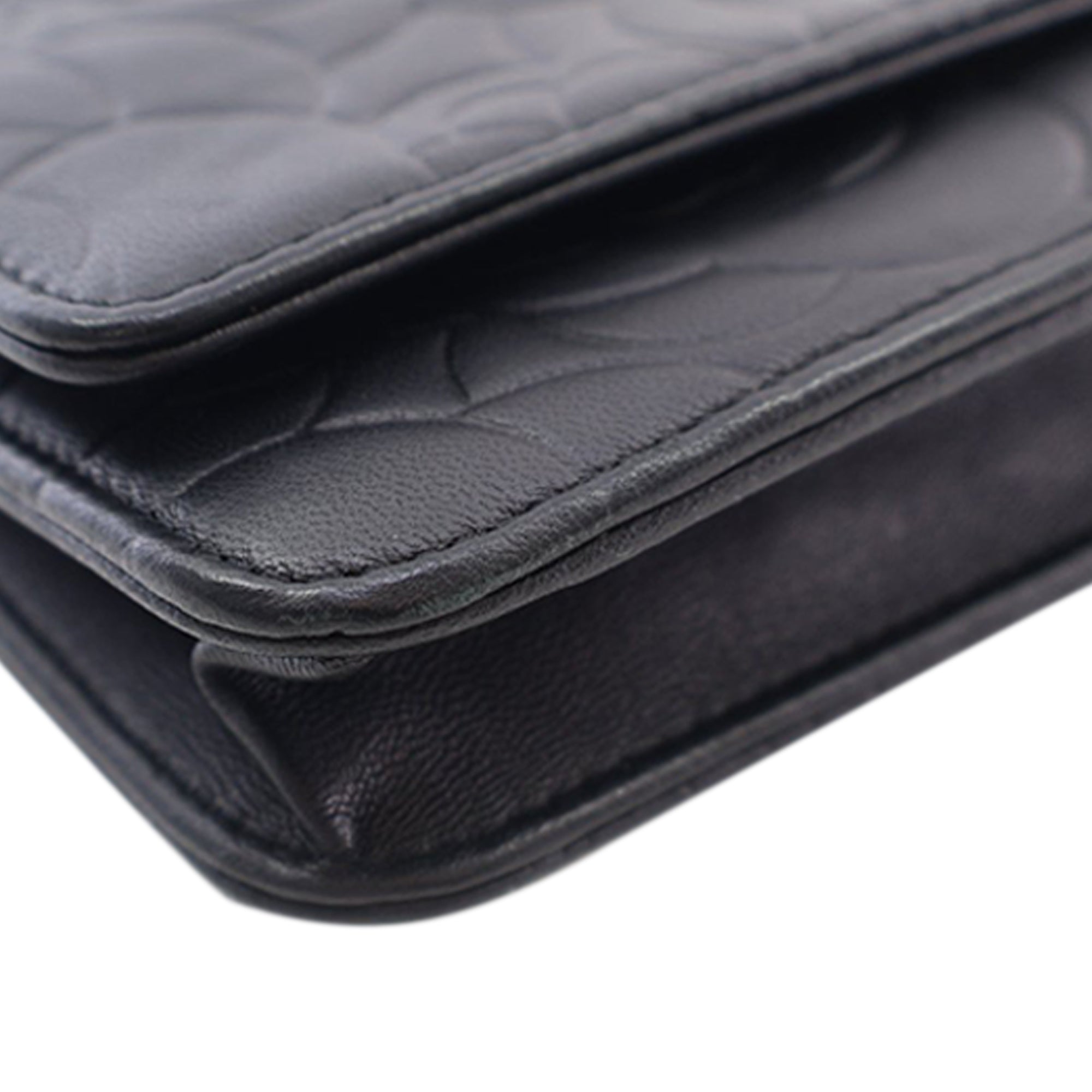 Black Chanel CC Embossed Lambskin Camellia Wallet On Chain Crossbody Bag