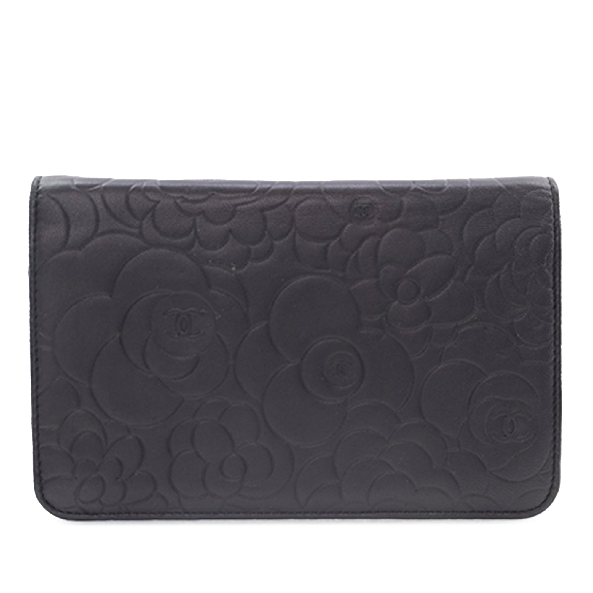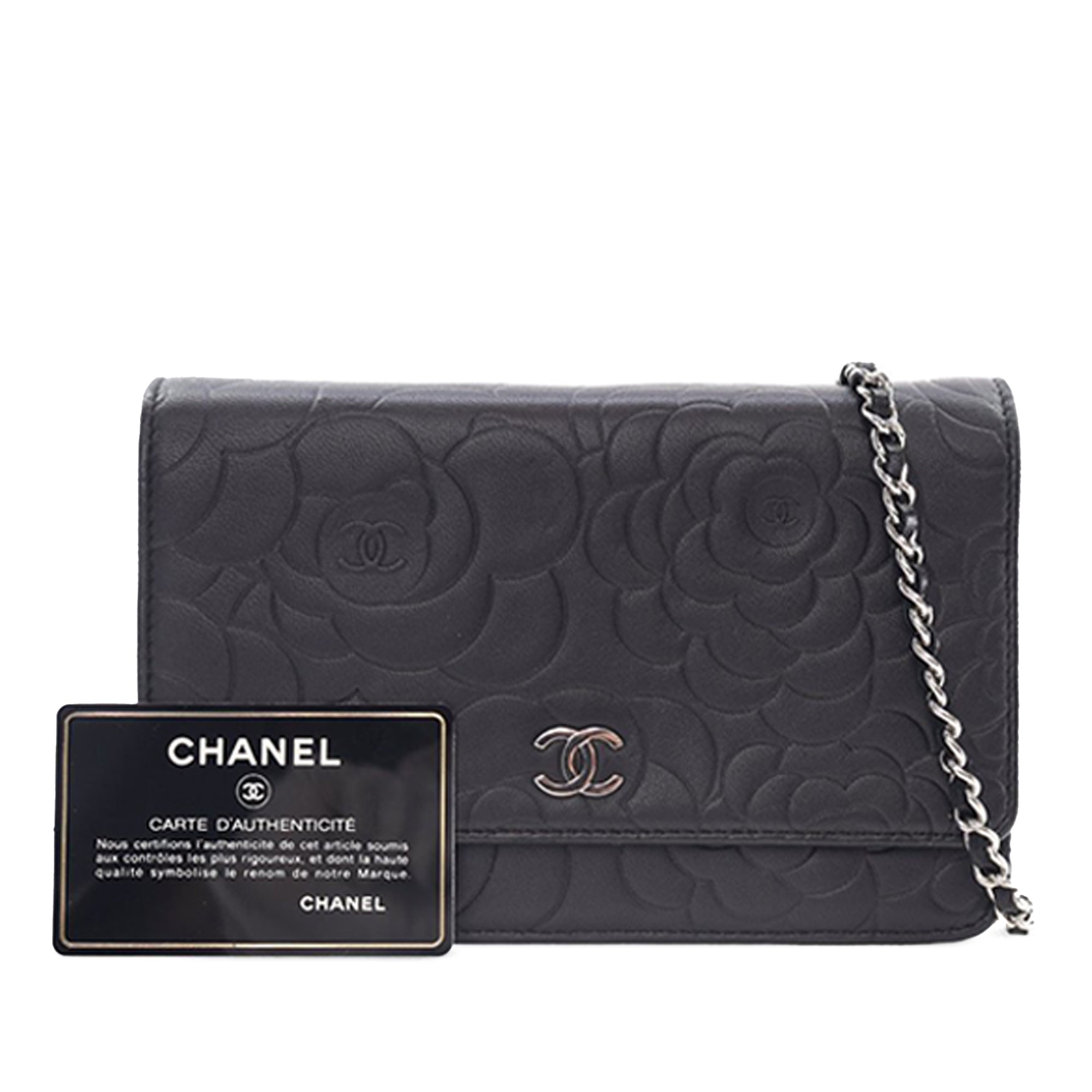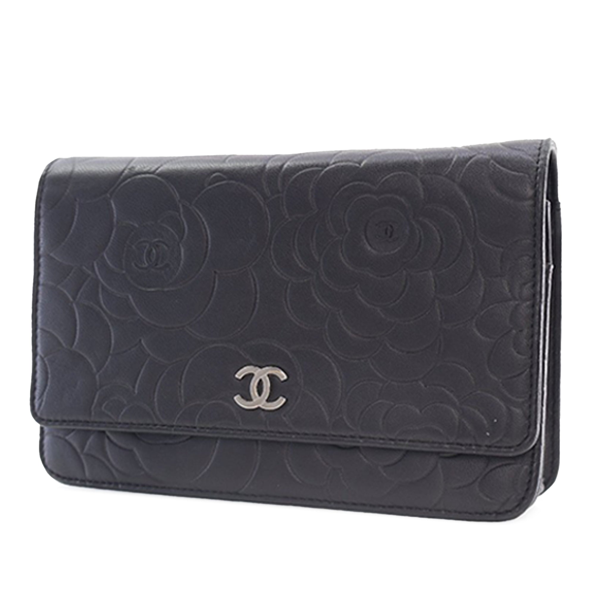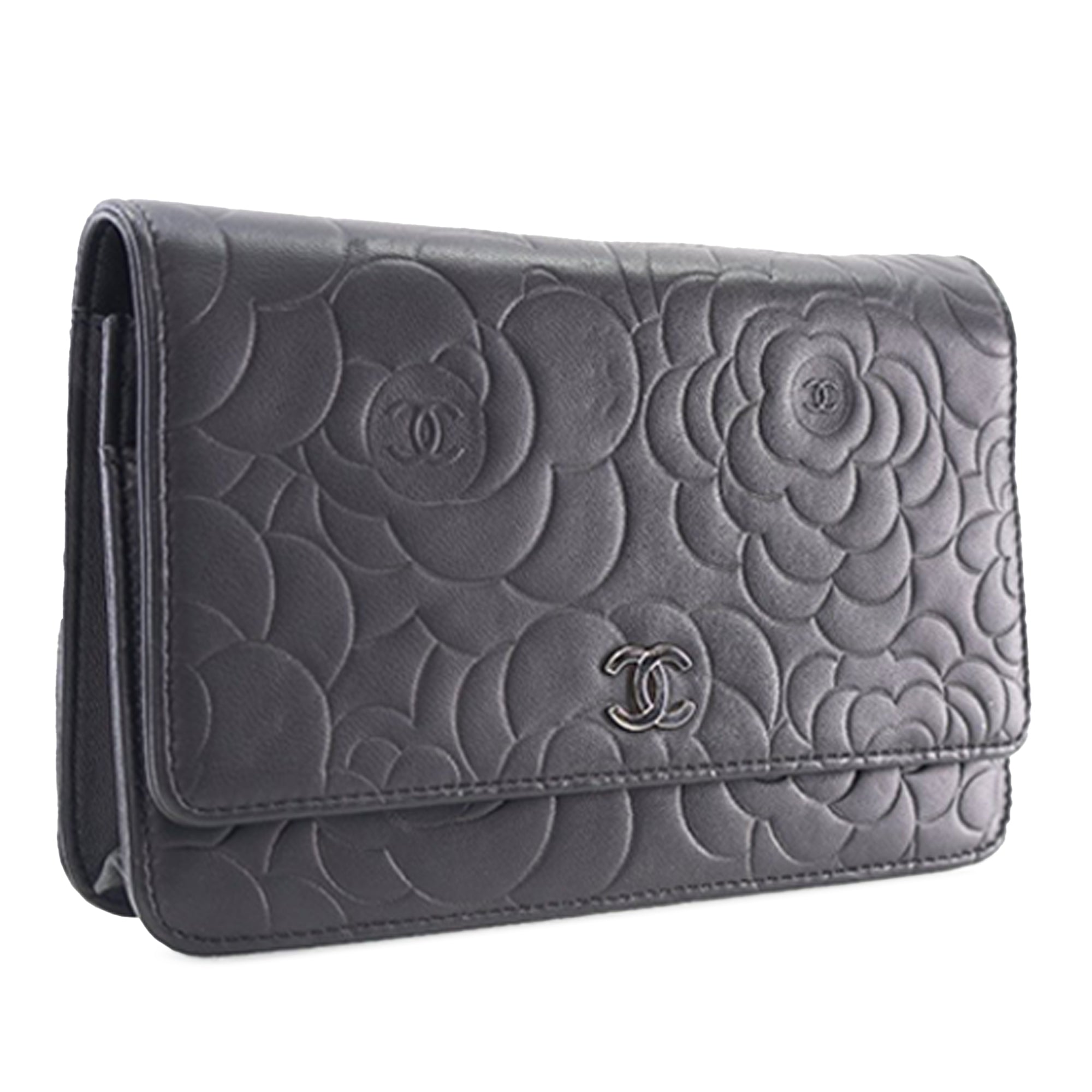 Black Chanel CC Embossed Lambskin Camellia Wallet On Chain Crossbody Bag