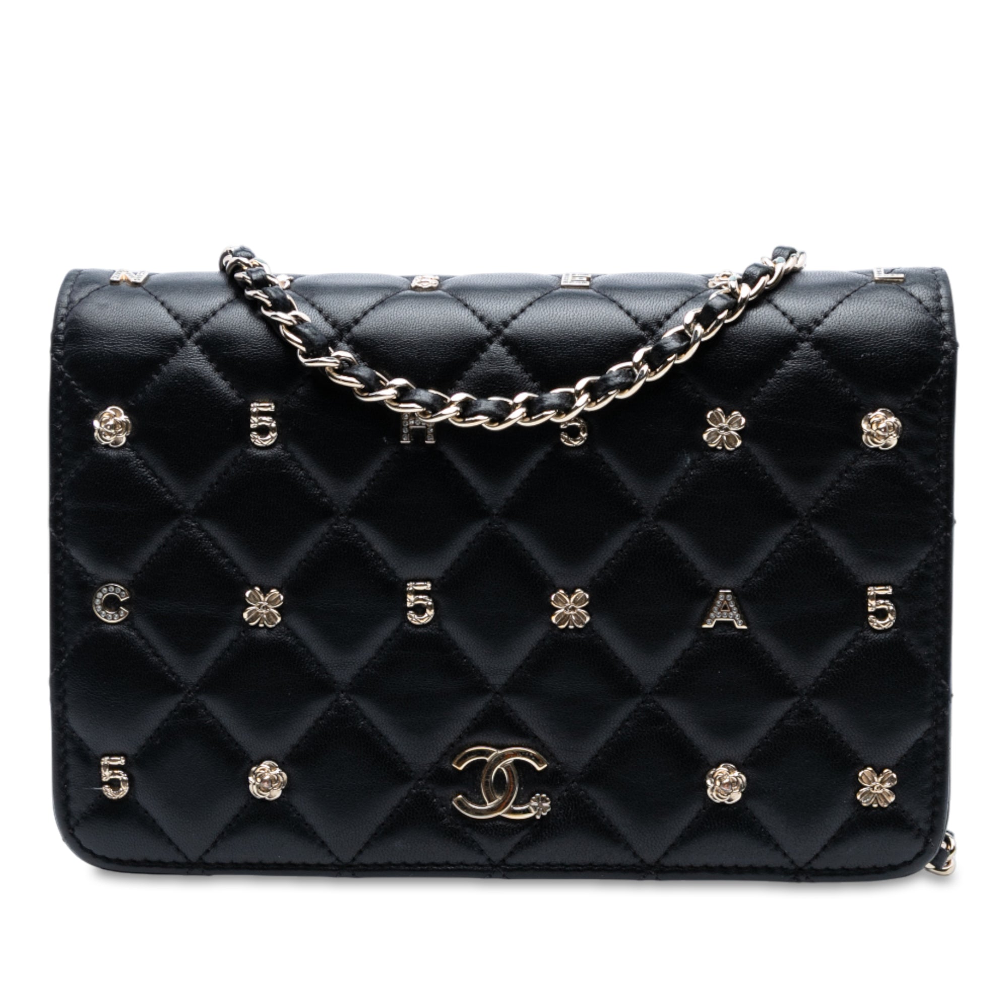 Black Chanel CC Quilted Lambskin Lucky Charms Wallet On Chain Crossbody Bag
