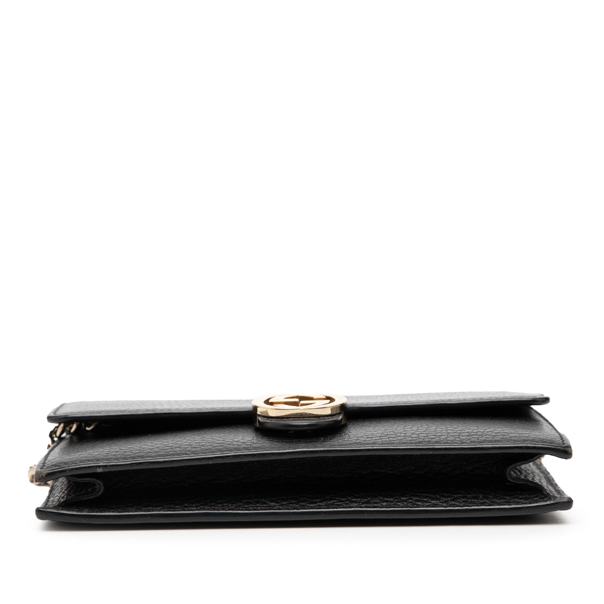 Black Gucci Leather Interlocking G Dollar Wallet on Chain
