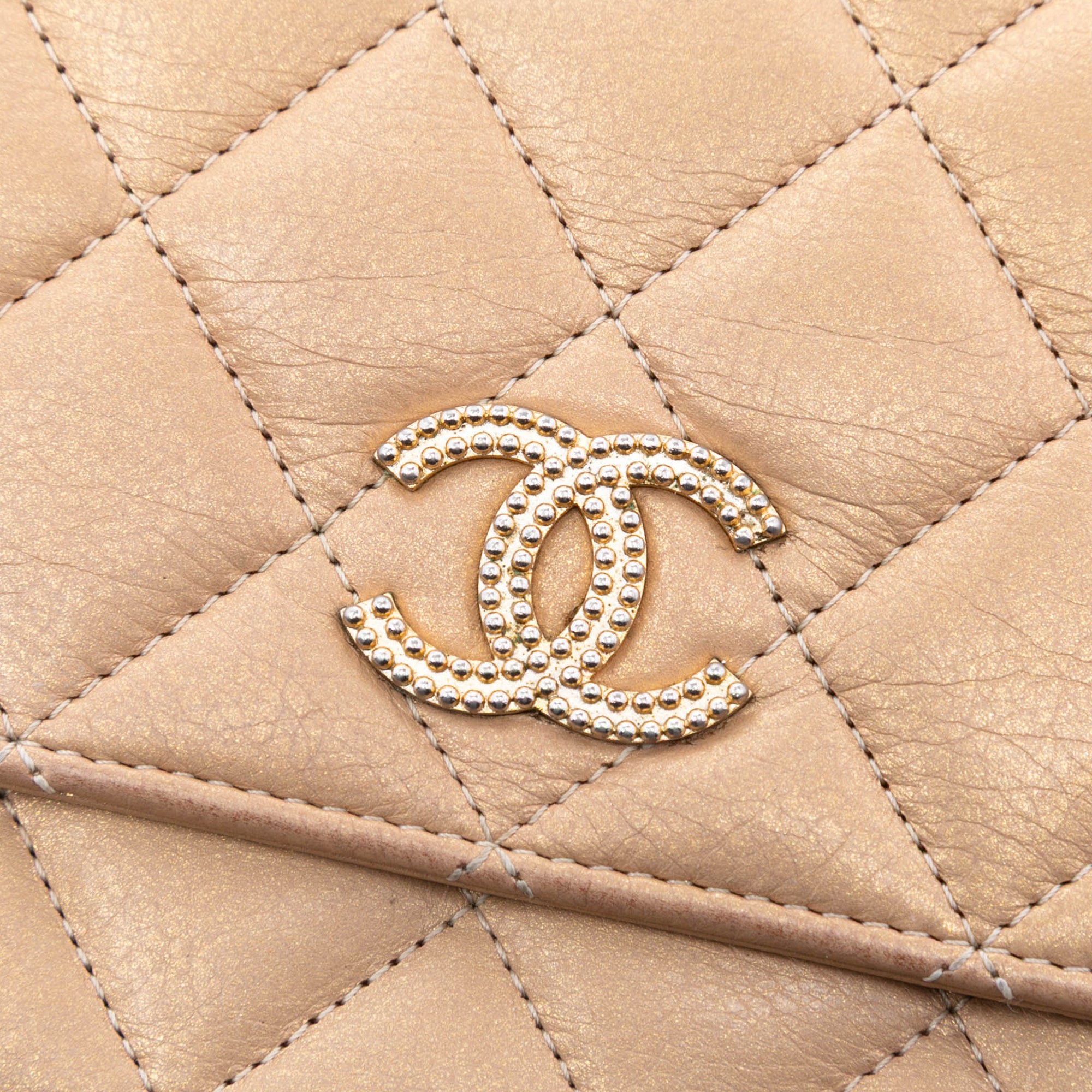 Gold Chanel CC Quilted Iridescent Lambskin Coin Charm Wallet on Chain Crossbody Bag