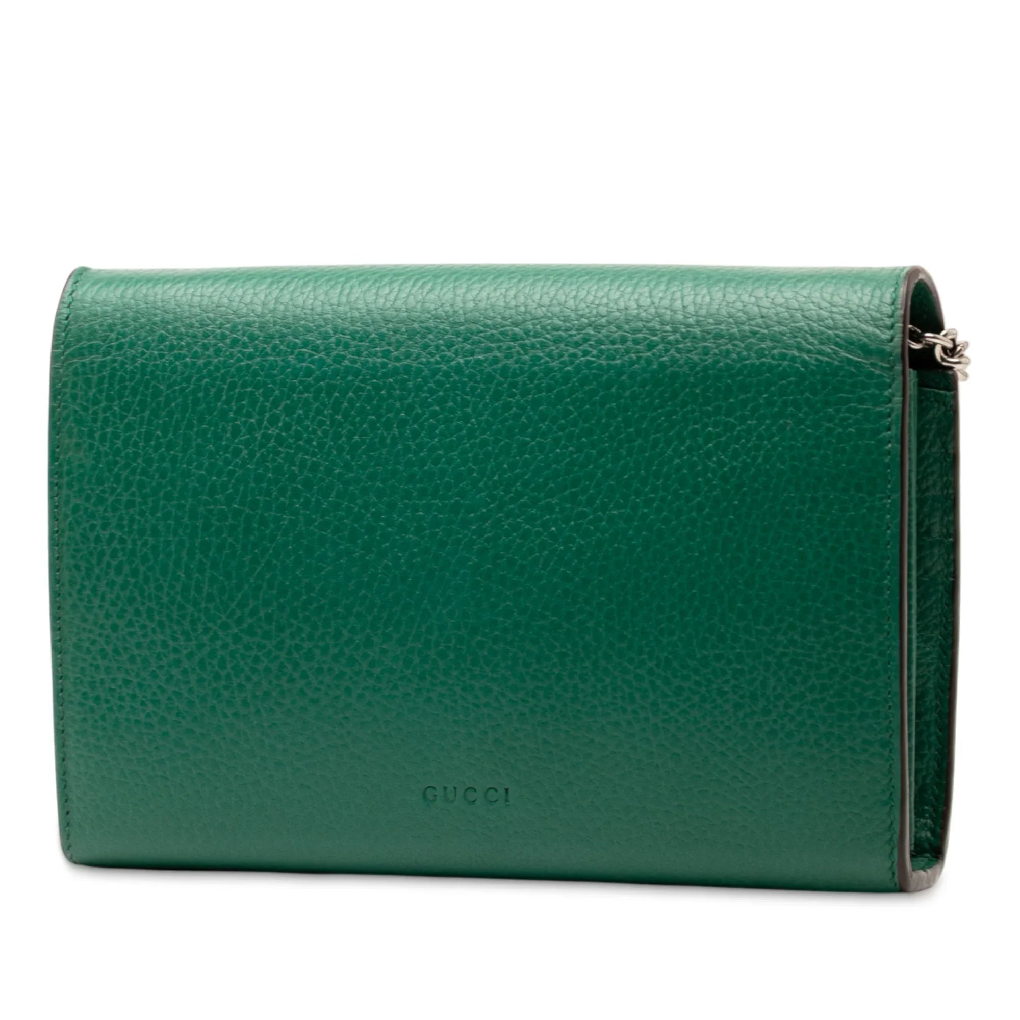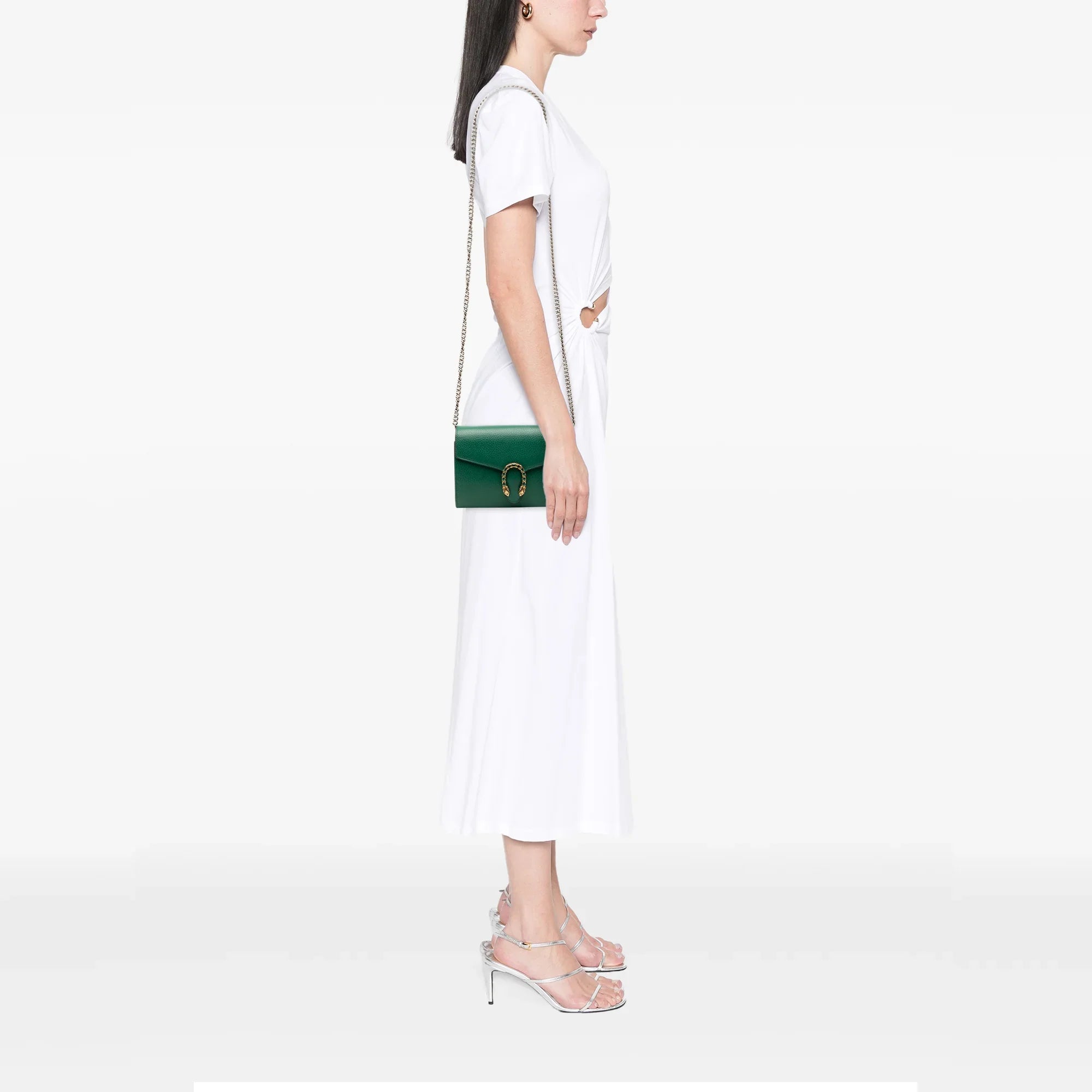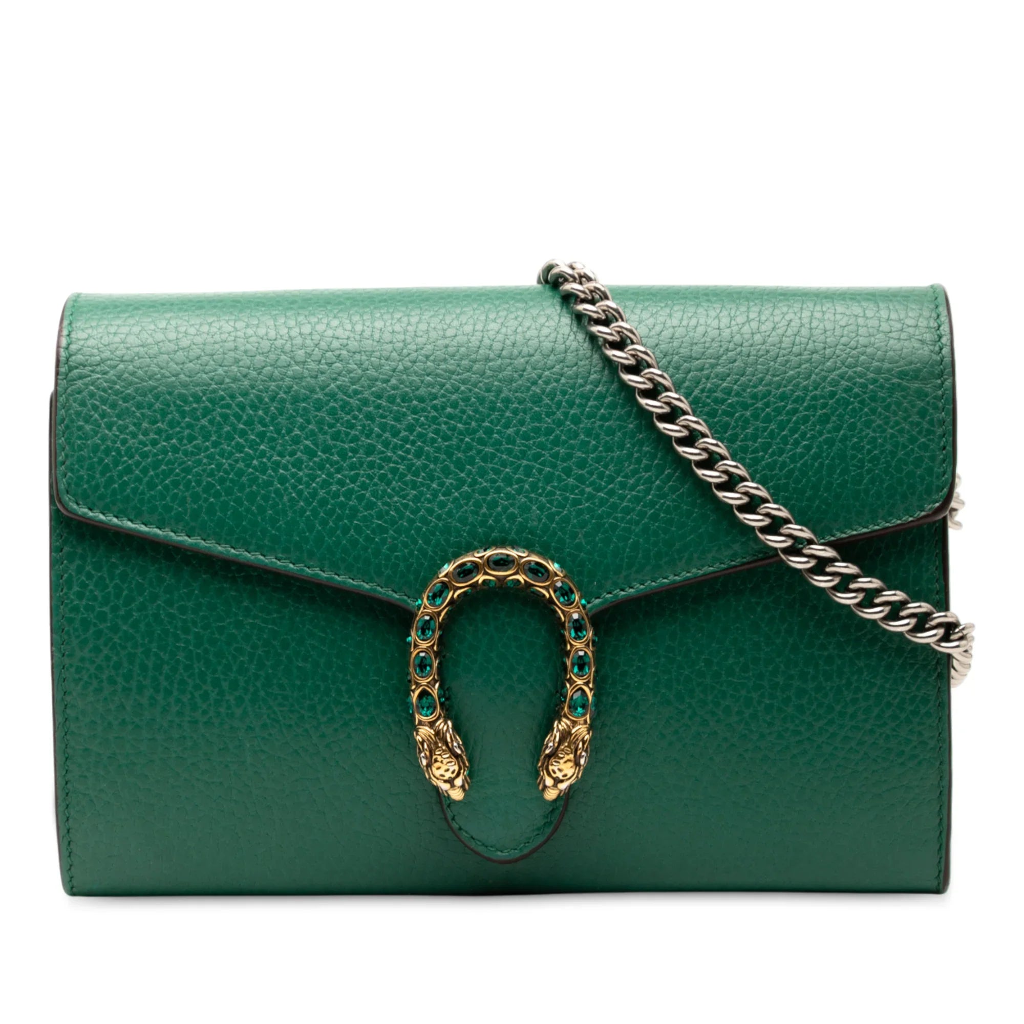 Green Gucci Leather Dionysus Wallet on Chain Crossbody Bag