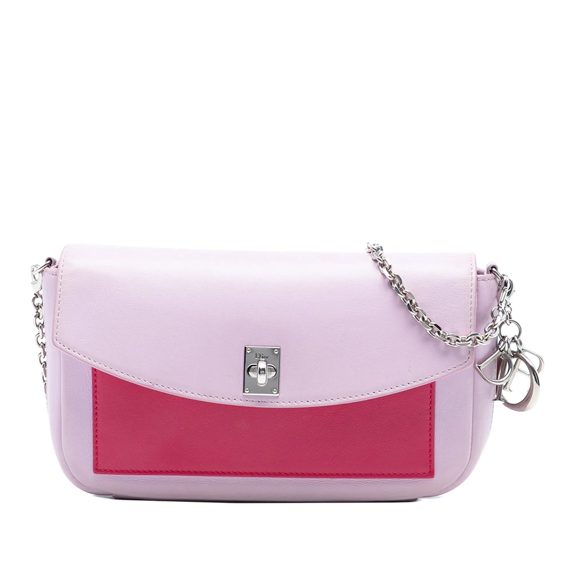 Pink Dior Tricolor Leather Turn Lock Wallet on Chain Crossbody Bag