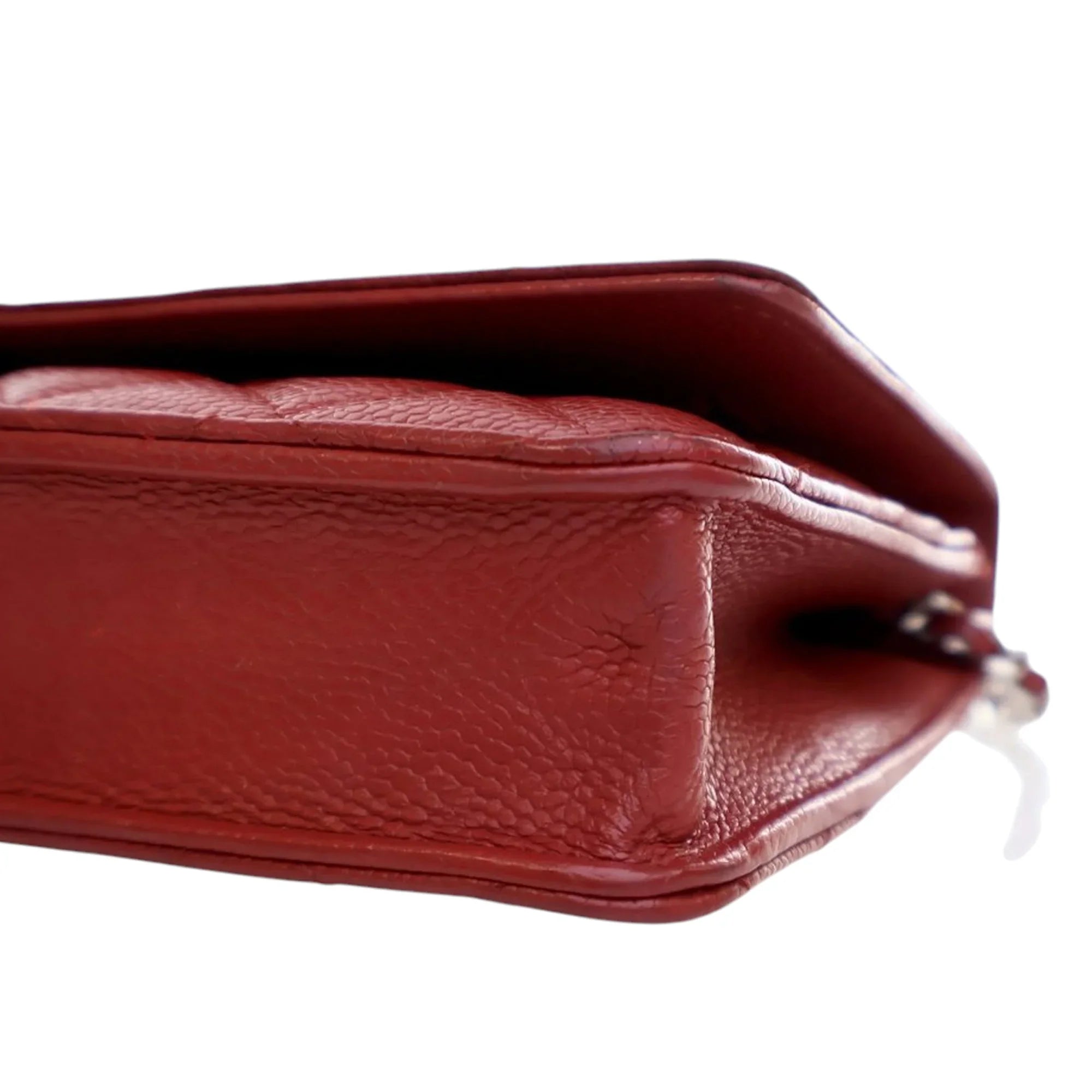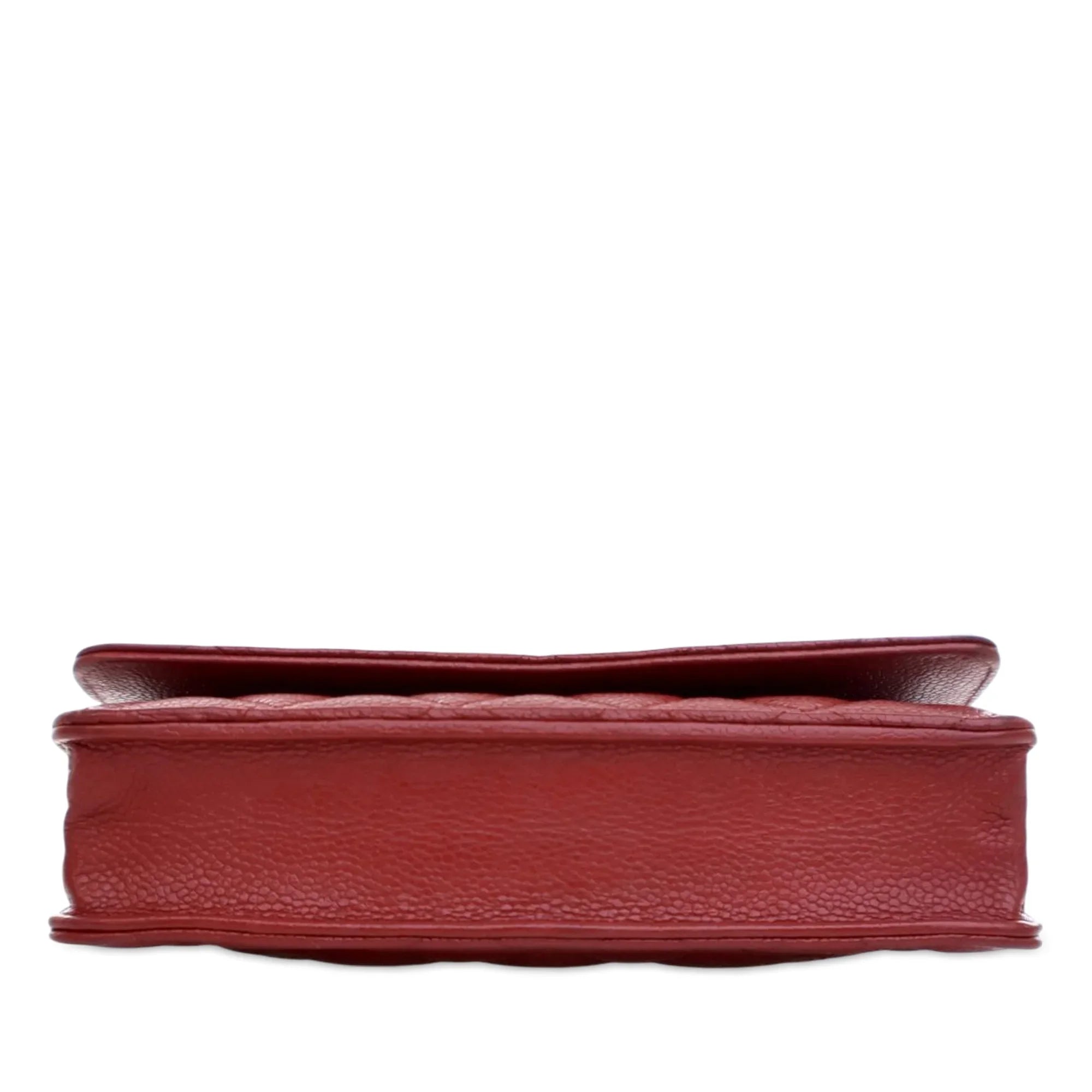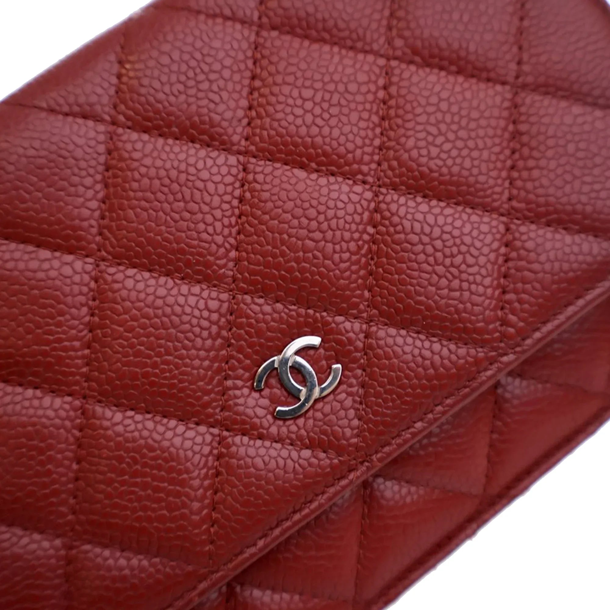 Red Chanel CC Quilted Caviar Wallet on Chain Crossbody Bag