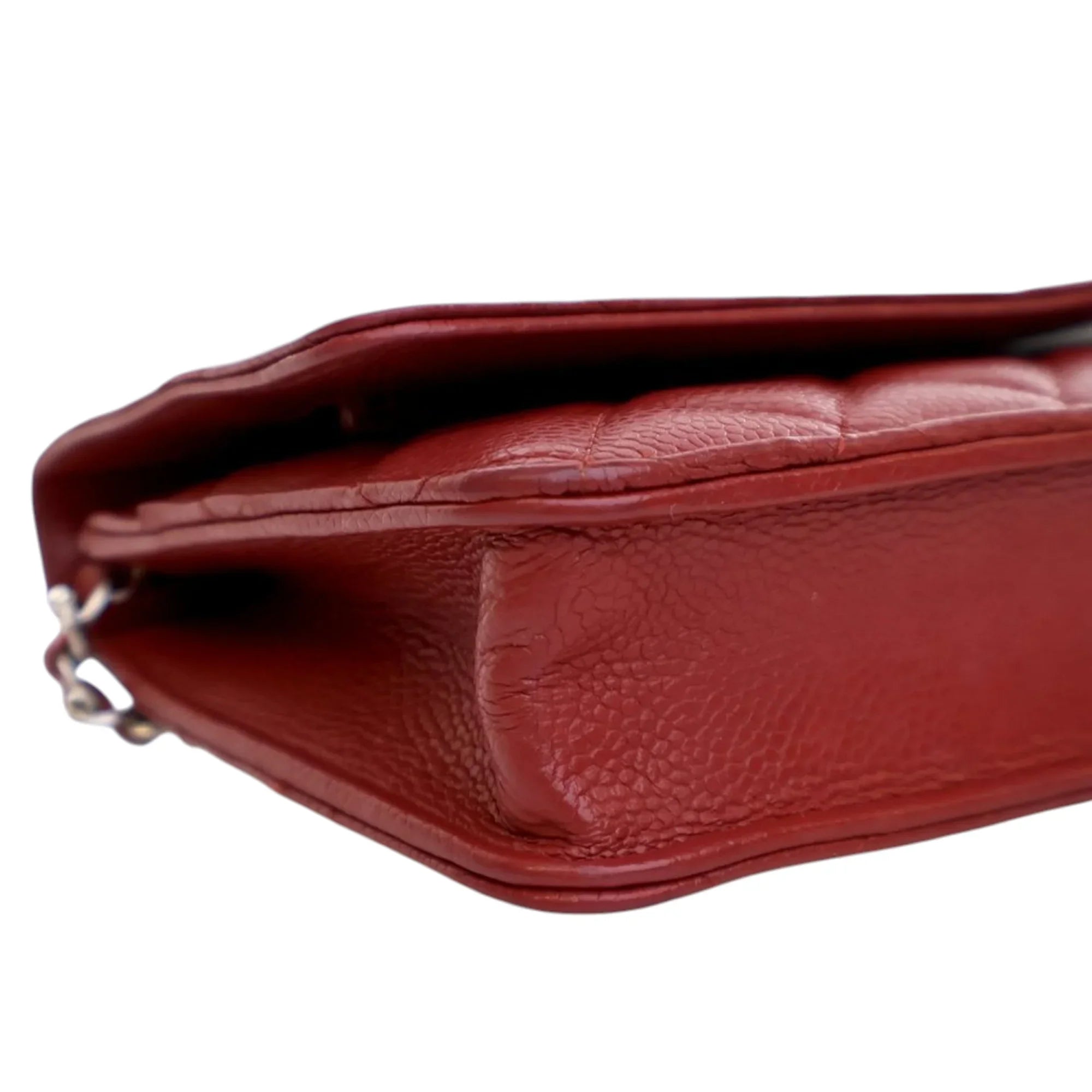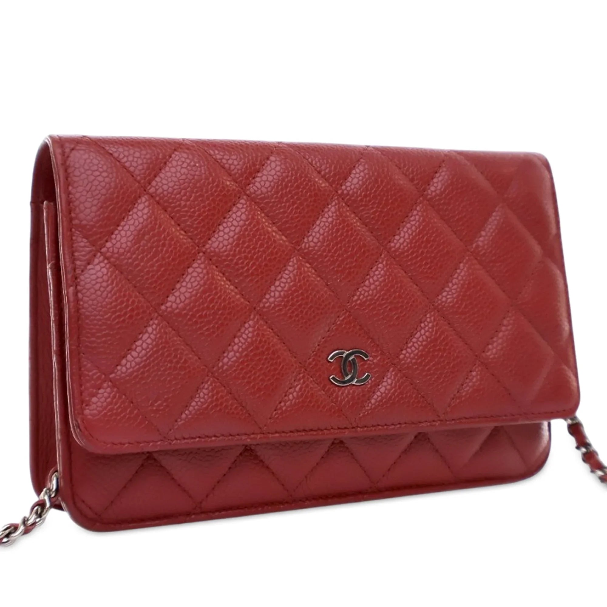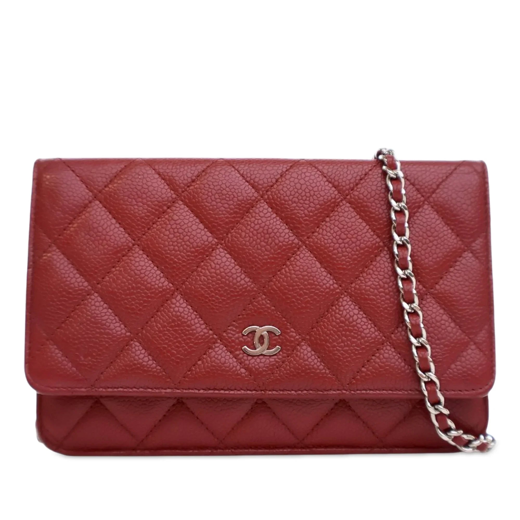 Red Chanel CC Quilted Caviar Wallet on Chain Crossbody Bag