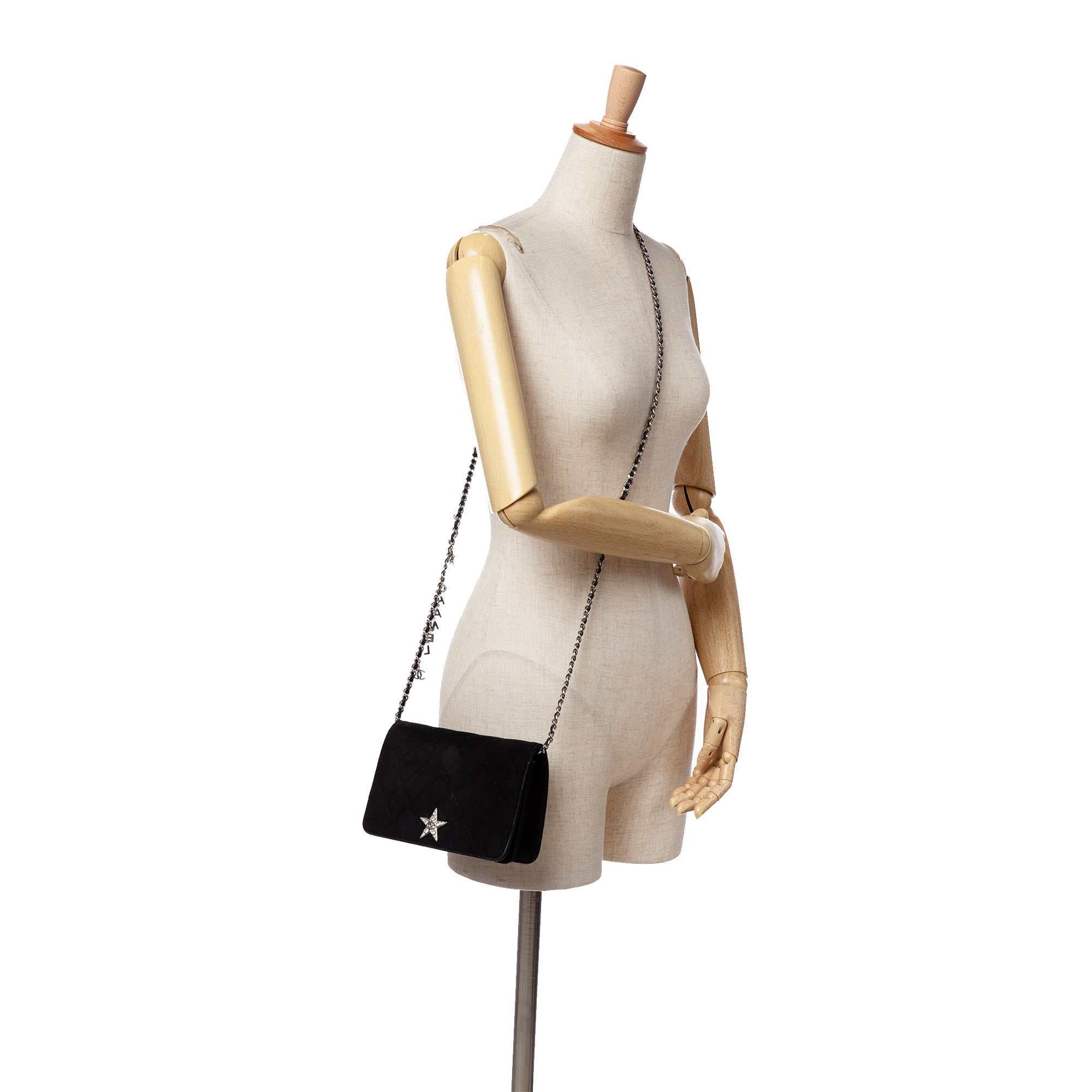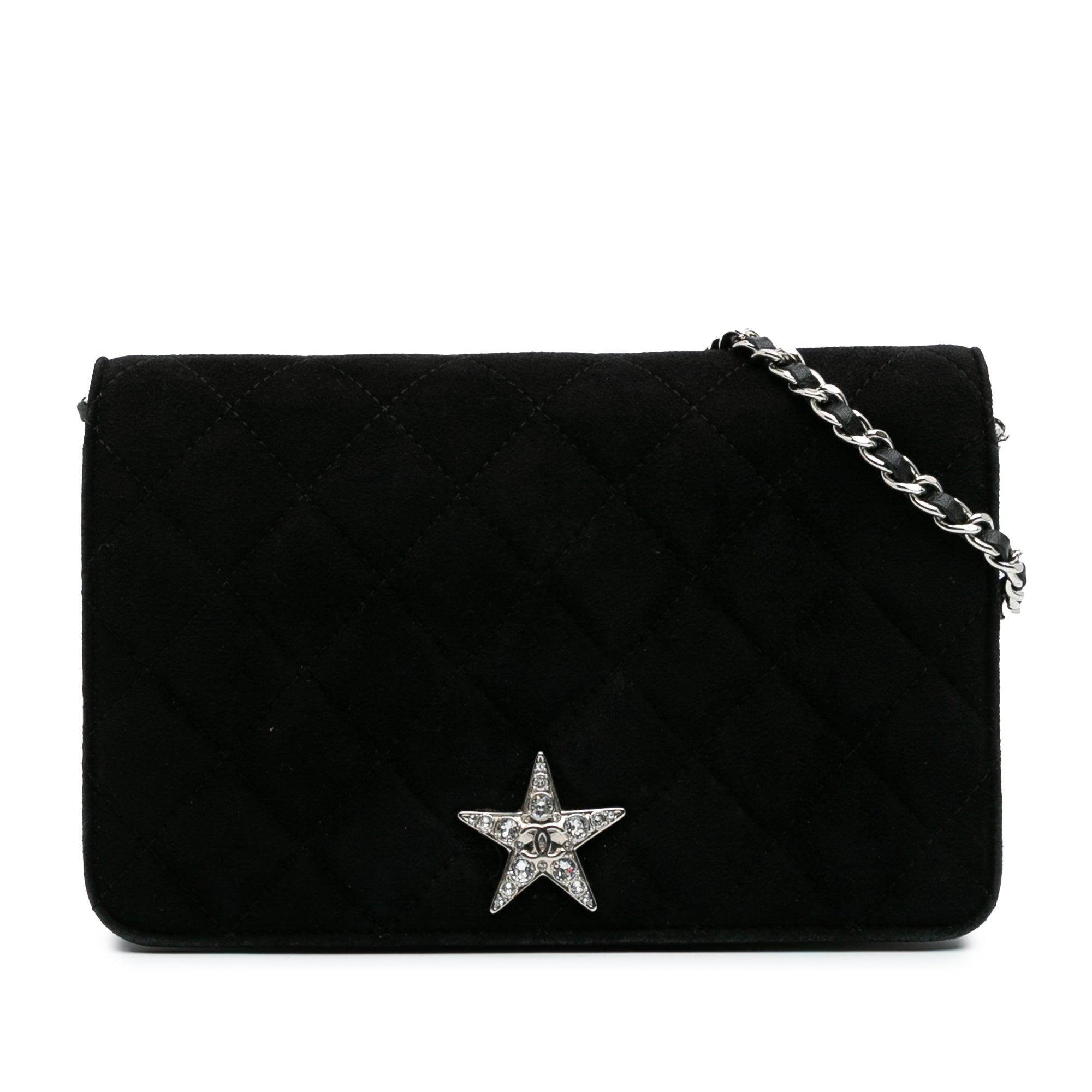 Black Chanel Quilted Suede Cocostellar Wallet on Chain Crossbody Bag