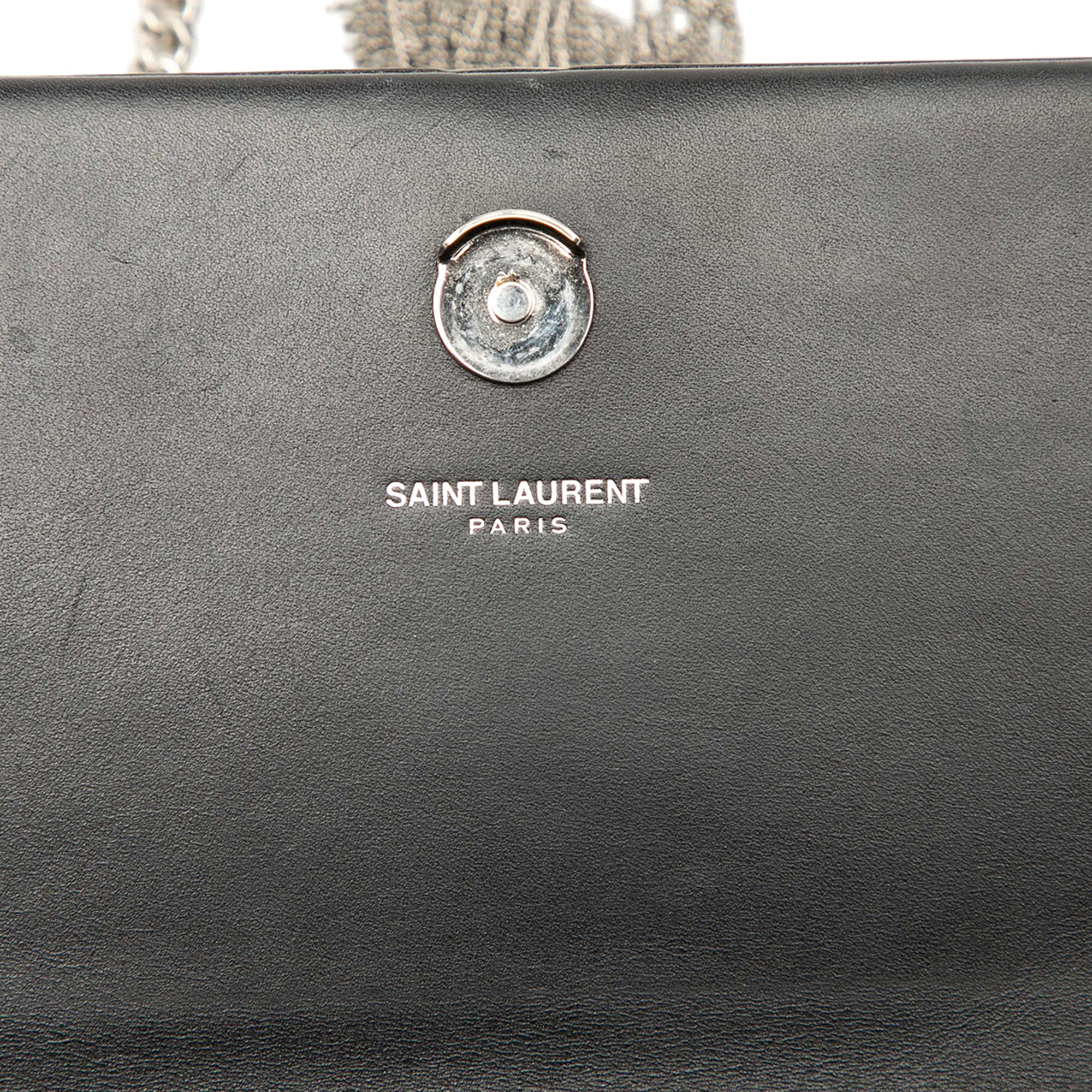 Black Saint Laurent Calfskin Cloud Star Applique Classic Monogram Kate Tassel Wallet on Chain Crossbody Bag