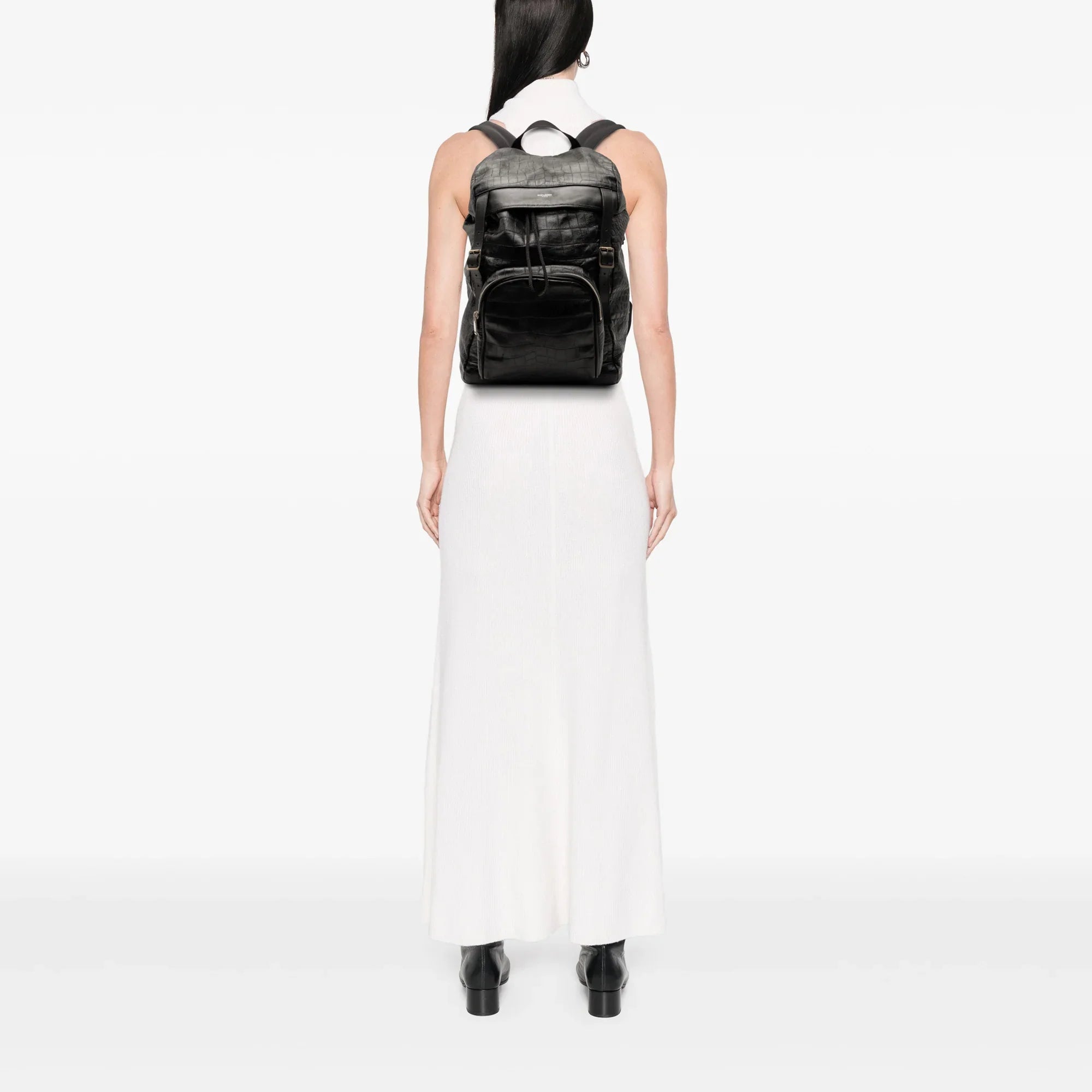 Black Saint Laurent Croc Embossed Leather Backpack
