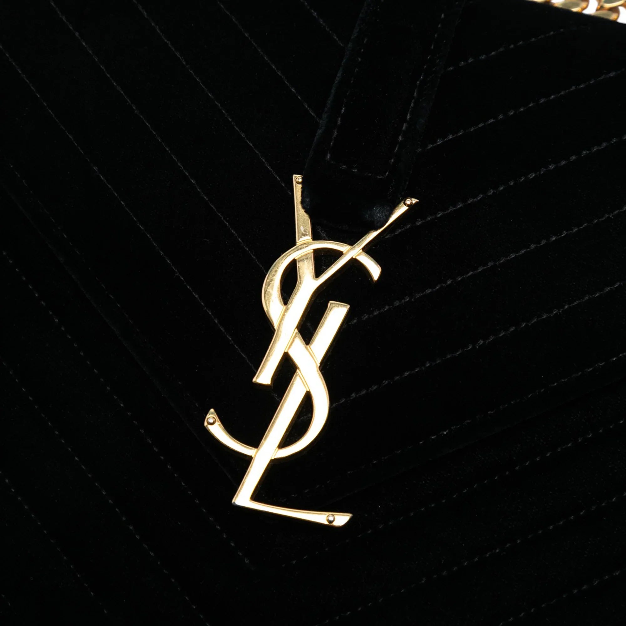 Black Saint Laurent Medium Chevron Velvet Monogram Envelope Bag