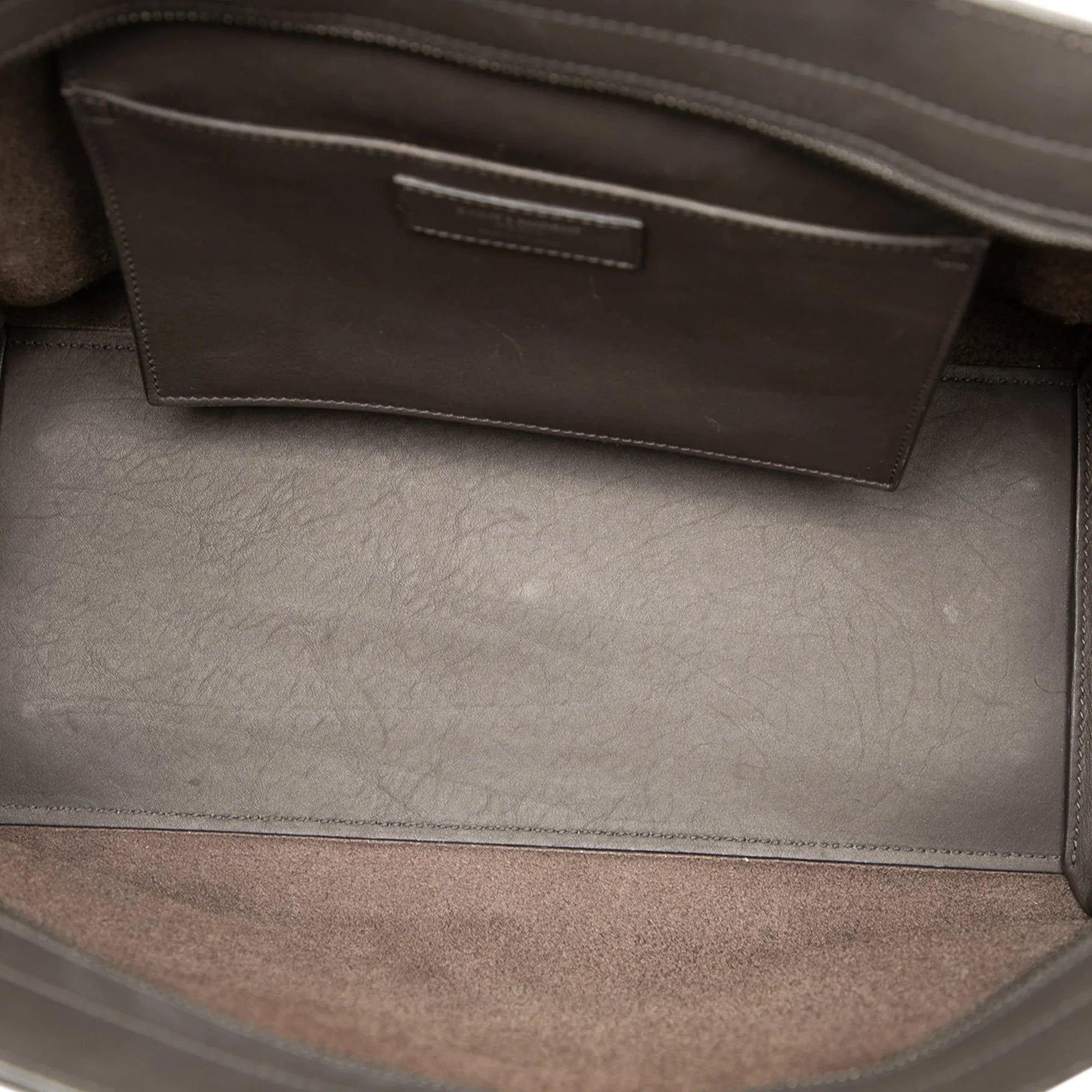 Gray Saint Laurent Small Croc Embossed Trimmed Leather Downtown Cabas Satchel