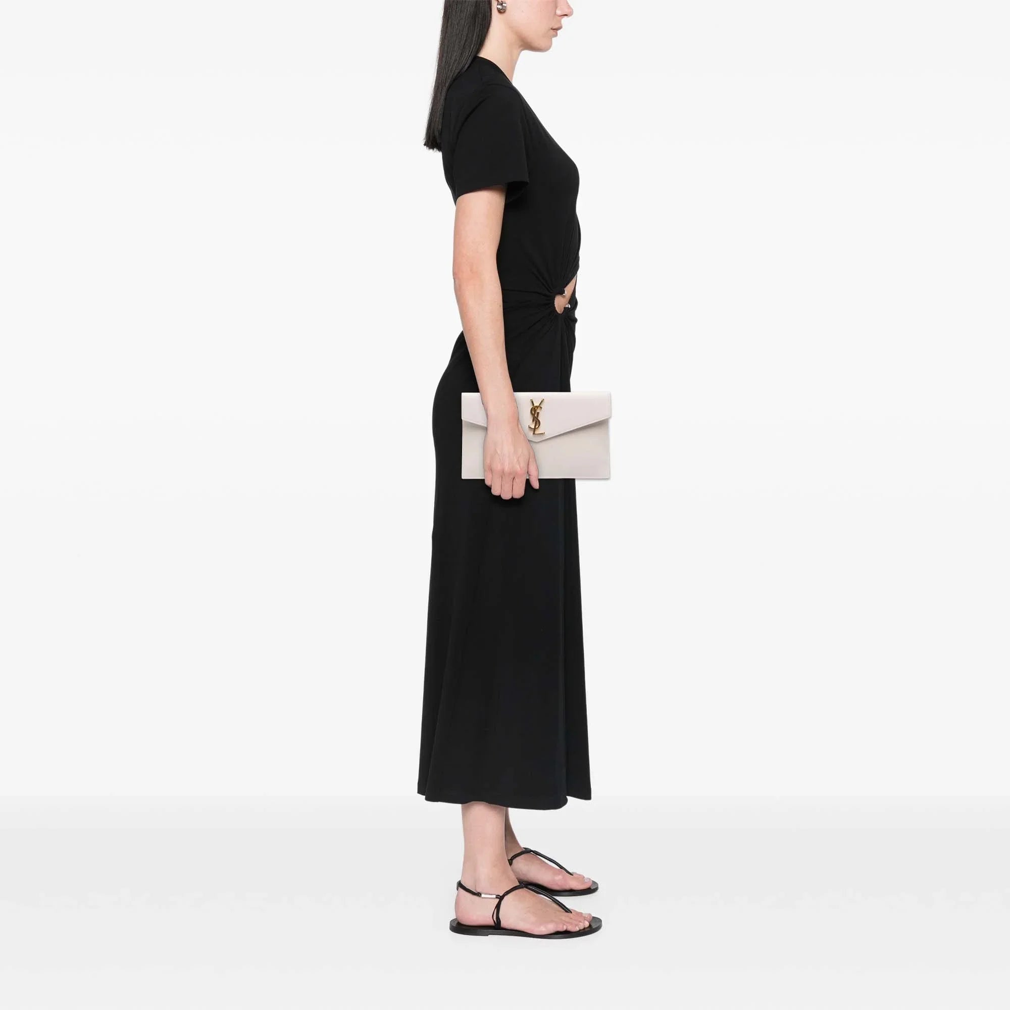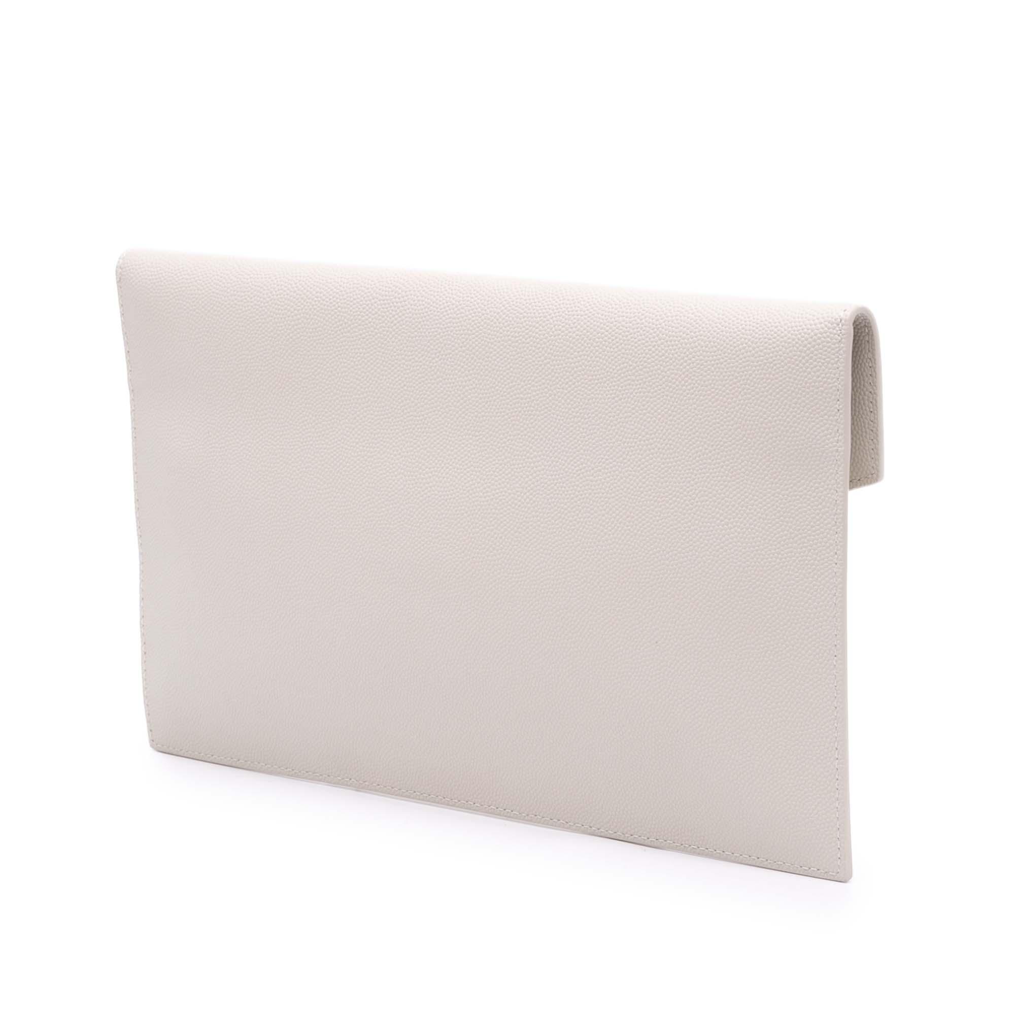 White Saint Laurent Grain De Poudre Uptown Pouch Clutch Bag