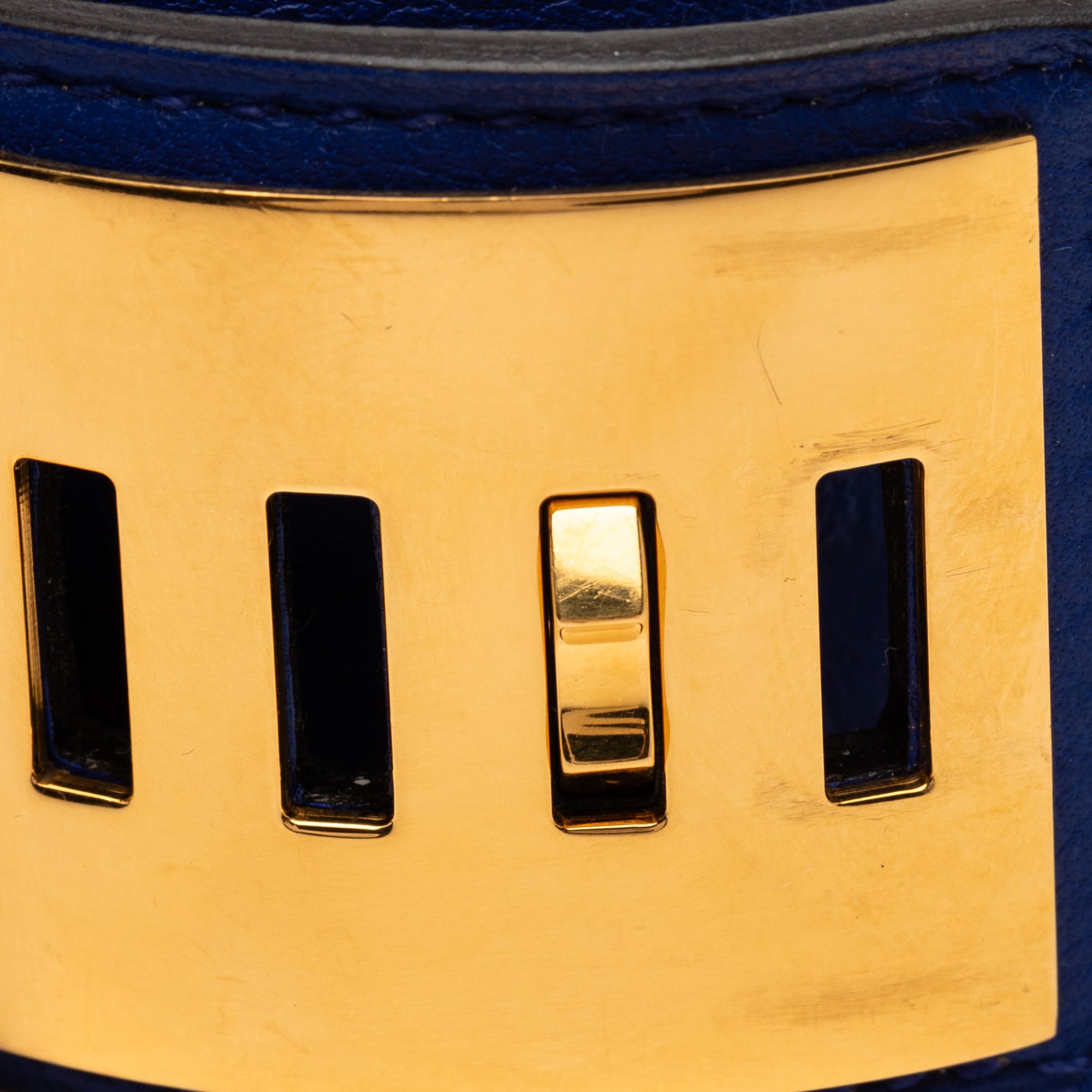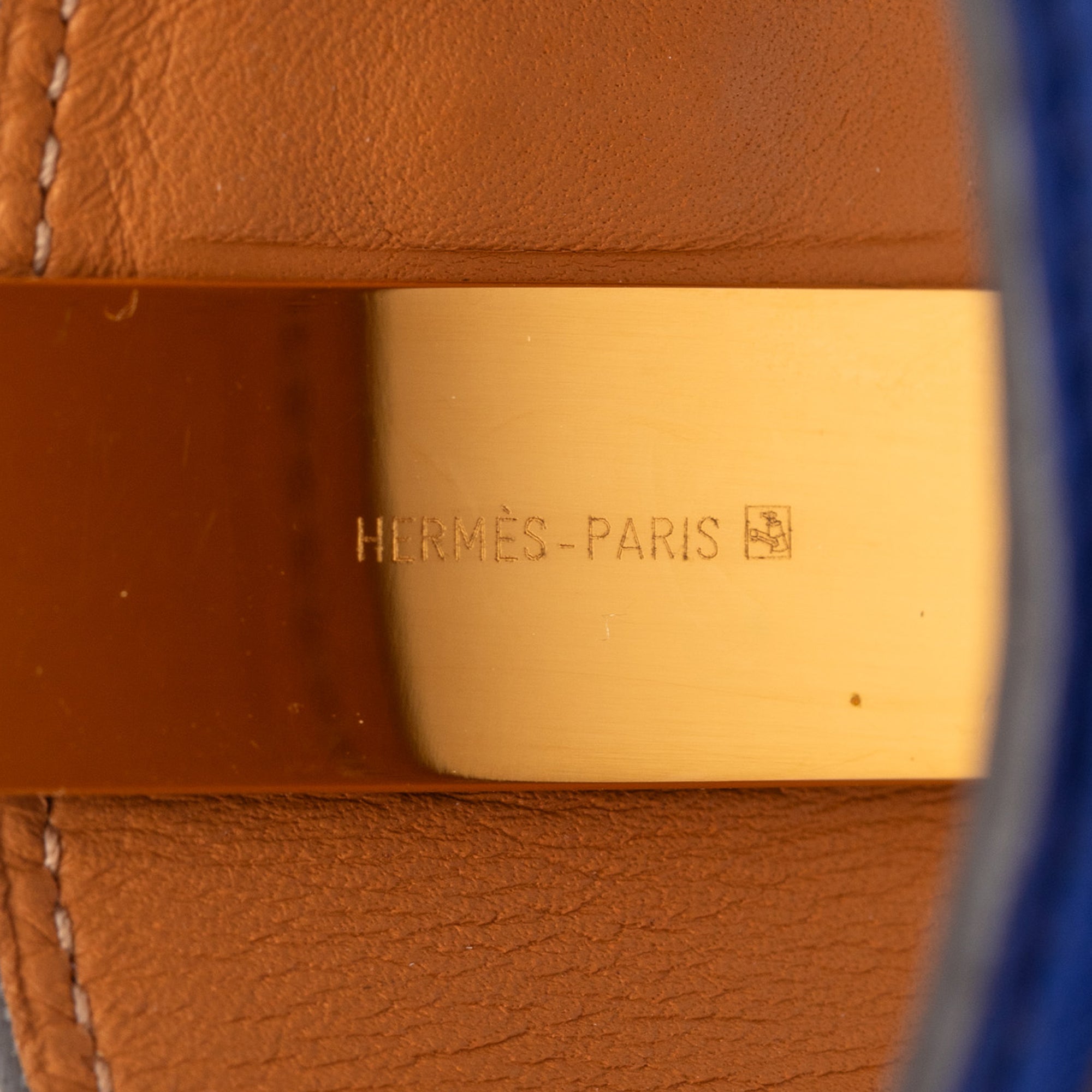 Blue Hermès Swift and Gold Plated Collier de Chien Bracelet