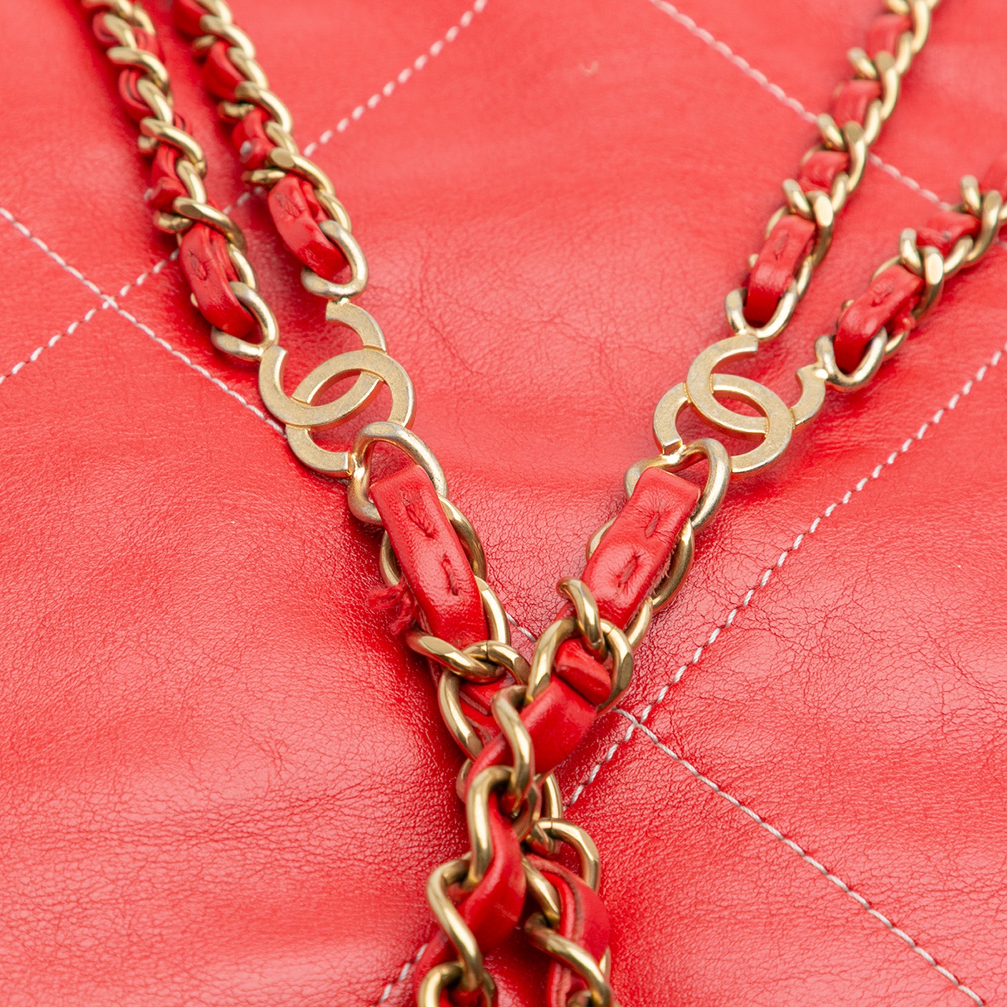 Red Chanel Large Shiny Quilted Calfskin 22 Backpack