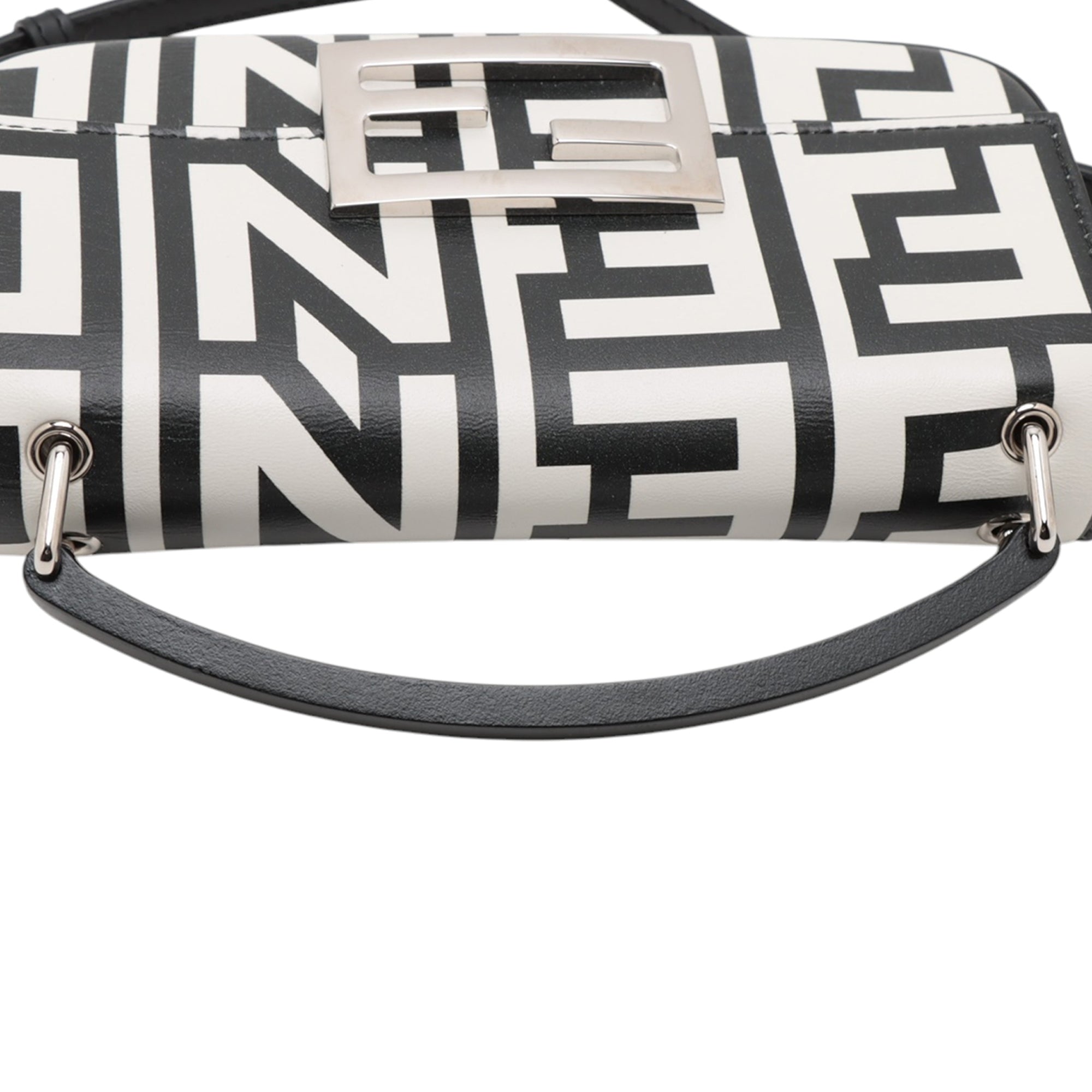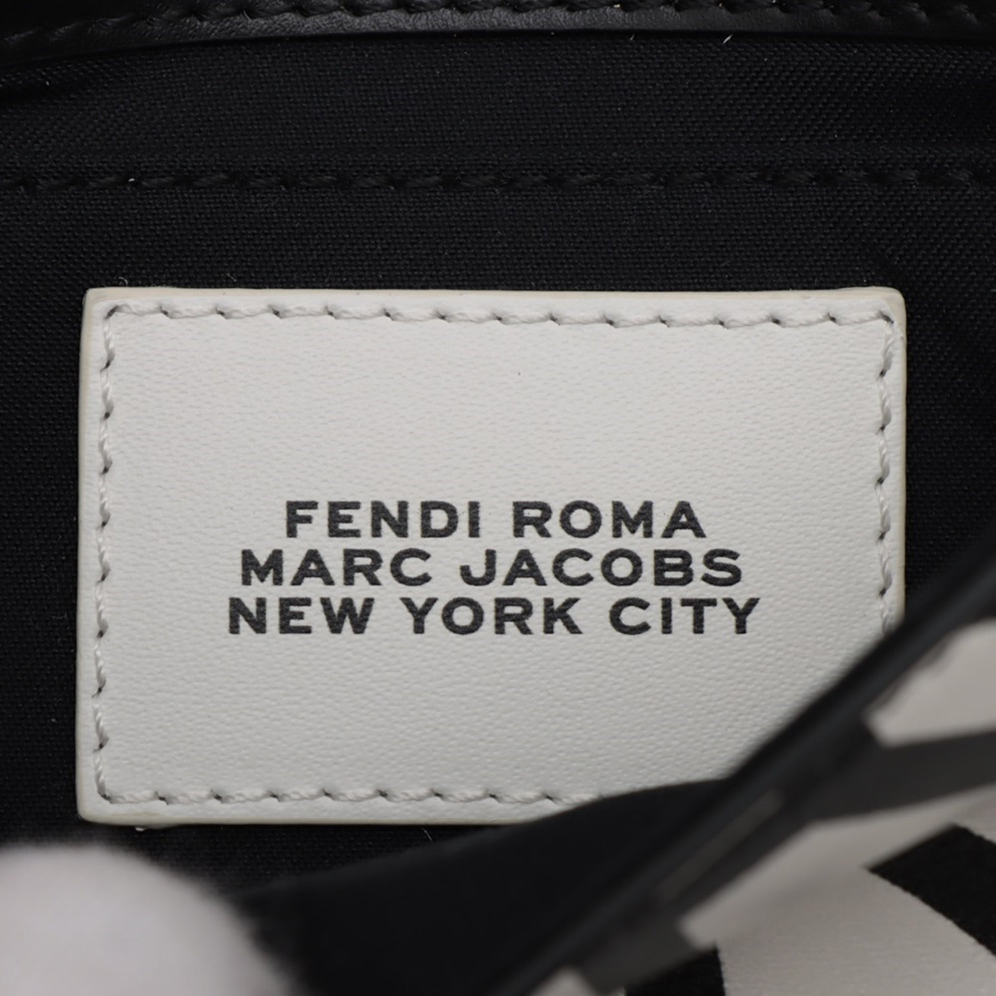 White Fendi Marc Jacobs Nappa Vitello King Logo Print Baguette Phone Pouch Satchel