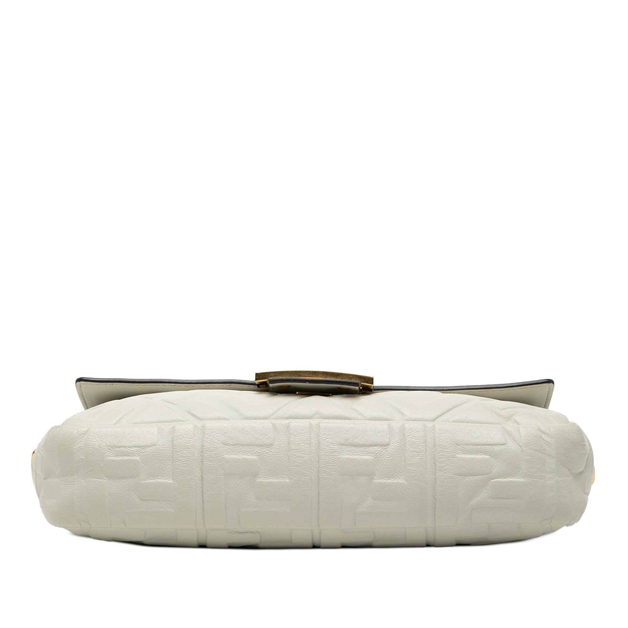 White Fendi Zucca Embossed Leather Baguette Satchel
