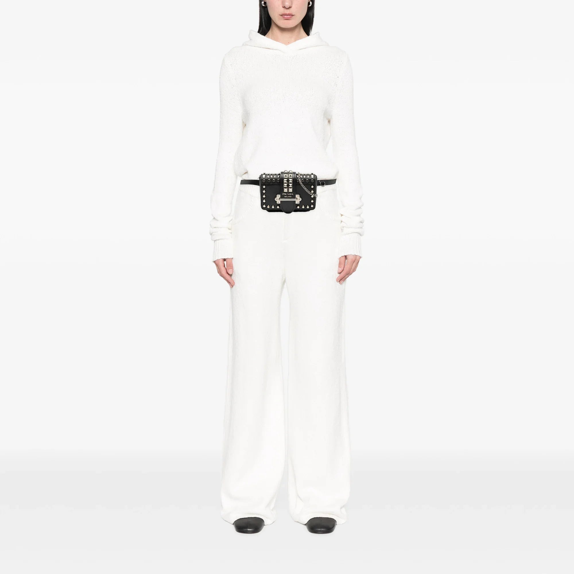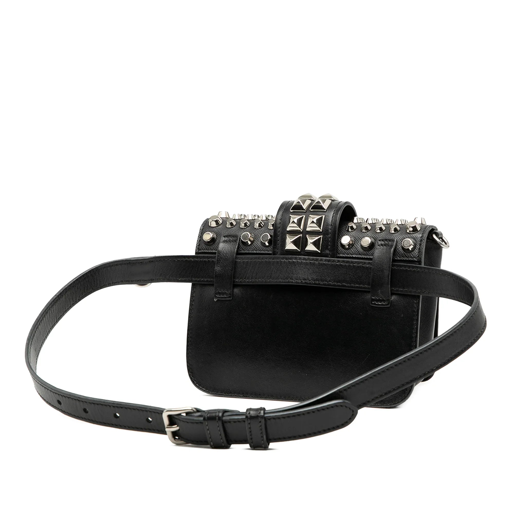 Black Prada Studded City Calf and Saffiano Cahier Belt Bag