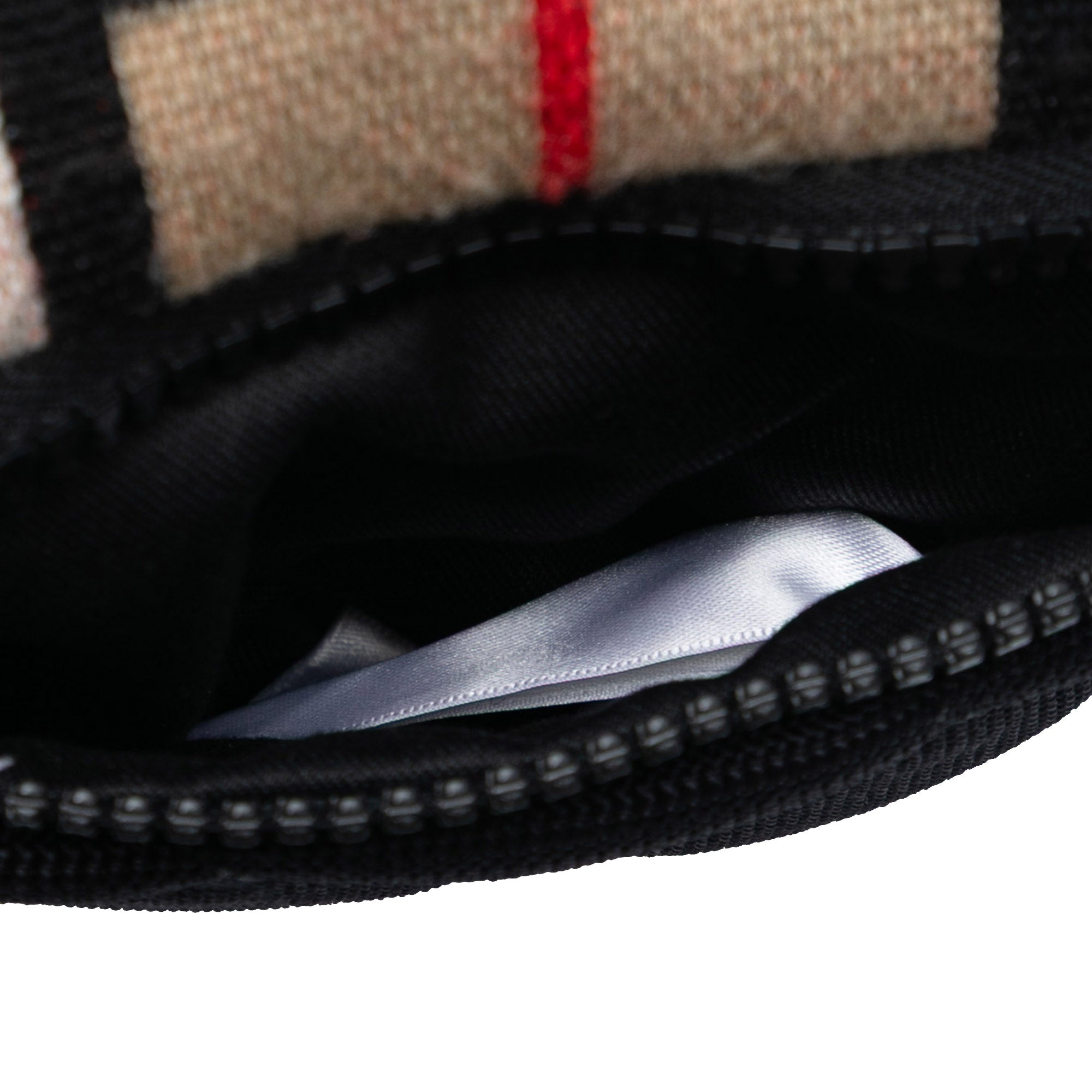 Product Details: Brown Burberry Thomas Bear House Check Wool Bear Belt Bag. This belt bag features a plaid wool body, an adjustable canvas waist strap, an exterior back zip closure. 6.5" L x 6.3" W x 3.5" D. Serial number CNDONIIOUDON.