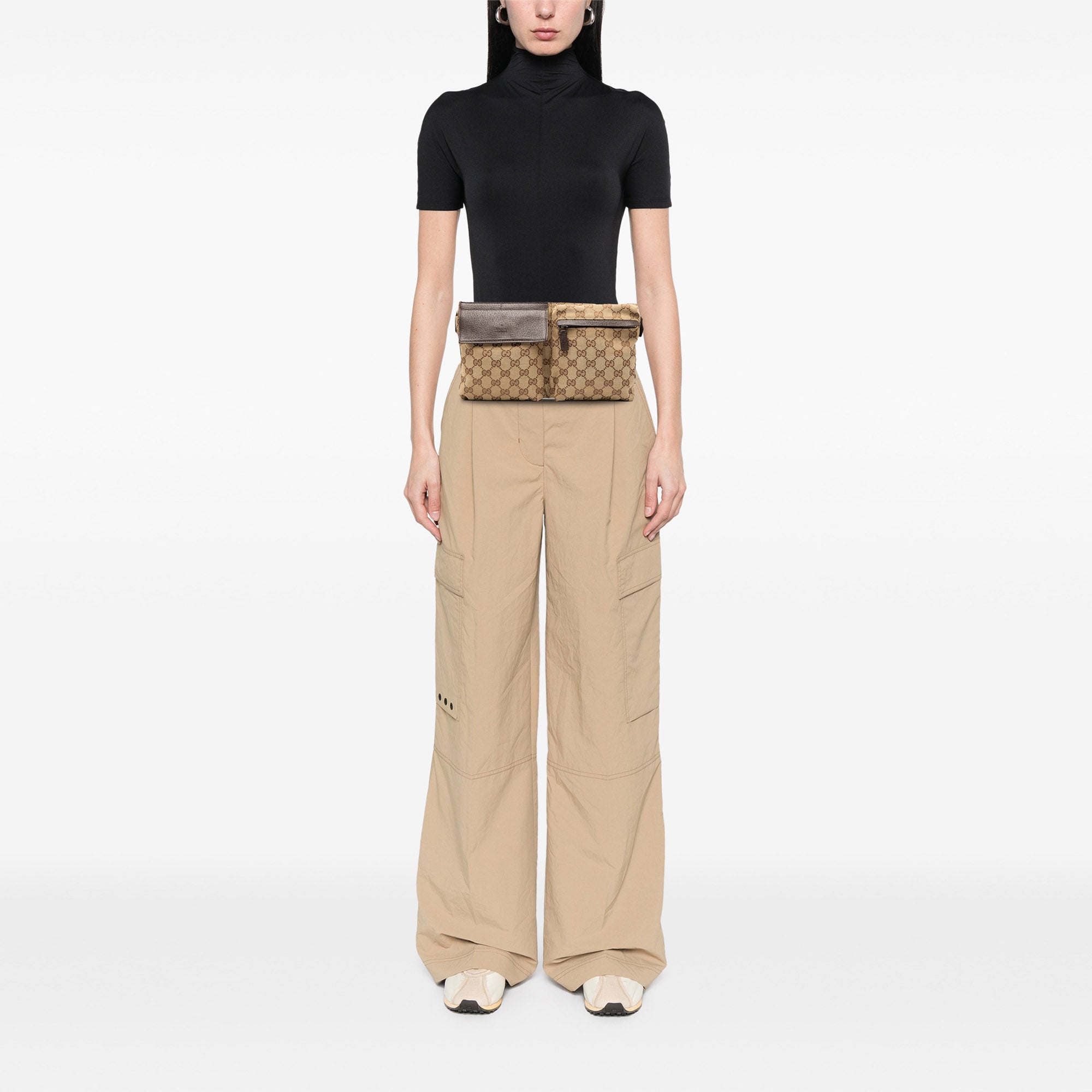 Tan Gucci GG Canvas Double Pocket Belt Bag