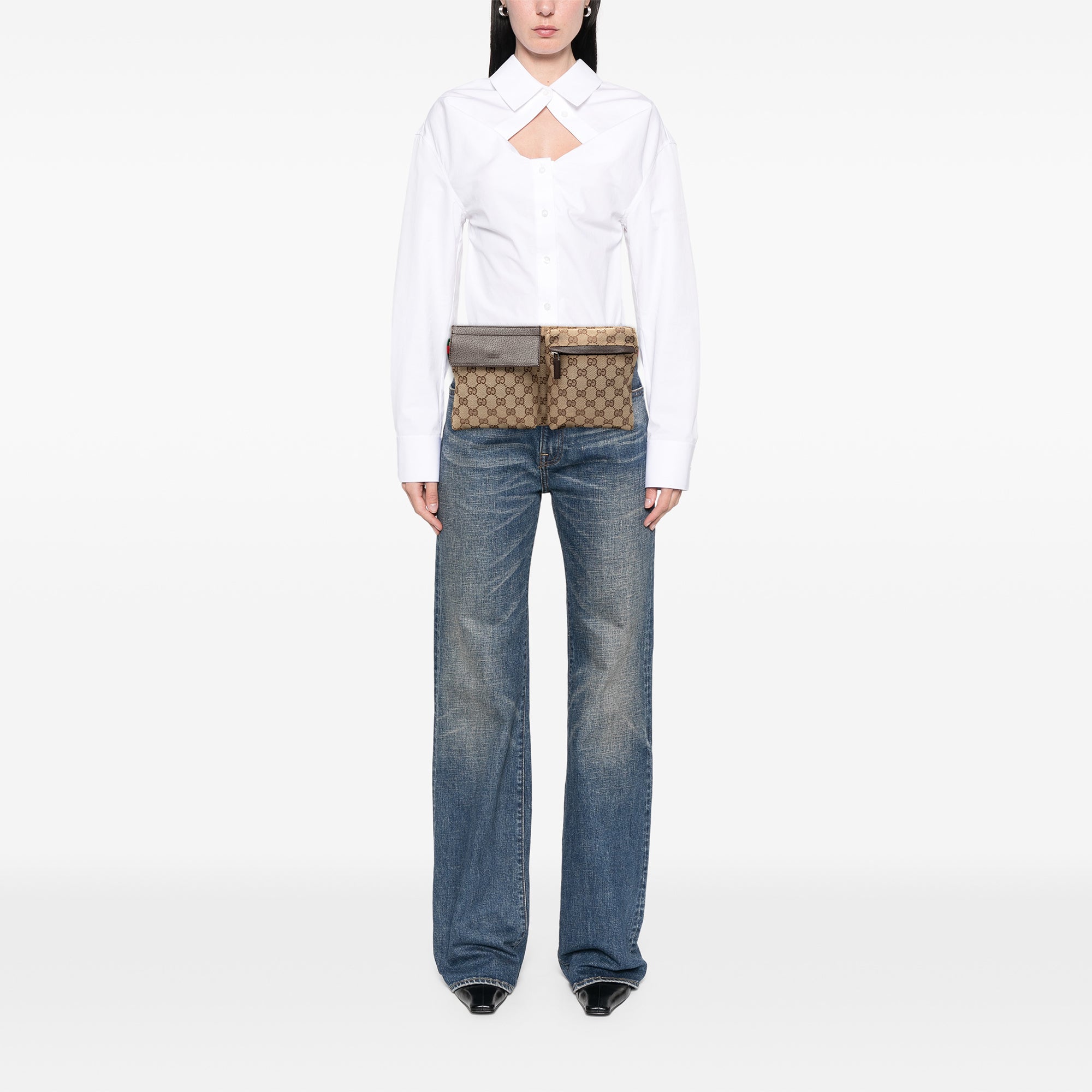 Brown Gucci GG Canvas Web Double Pocket Belt Bag