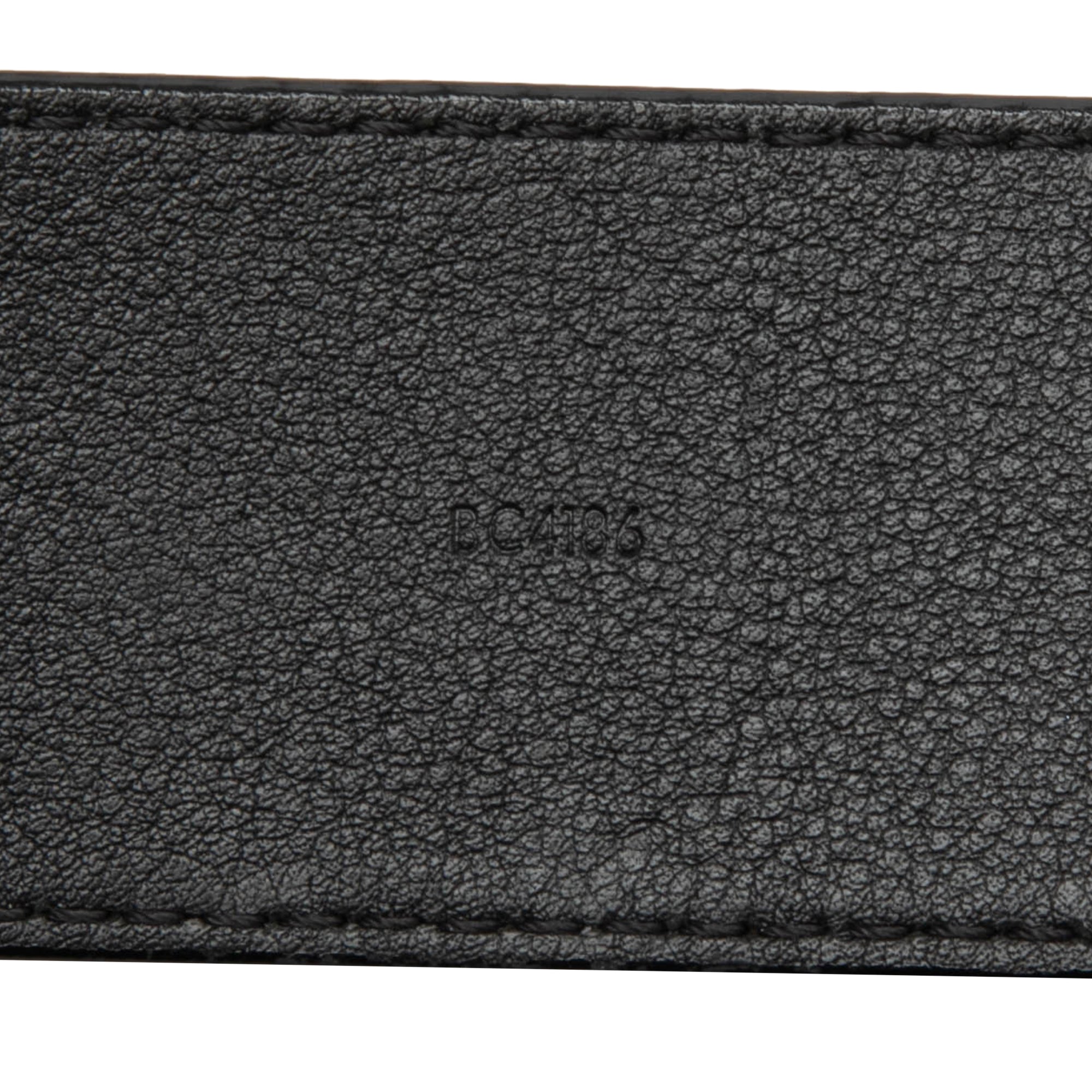Product Details: Black Louis Vuitton Leather LV Initiales Belt. This belt features a leather body, and a peg-in-hole closure. 43.9" L x 1.6" W x 0" D. Serial number BC4186.