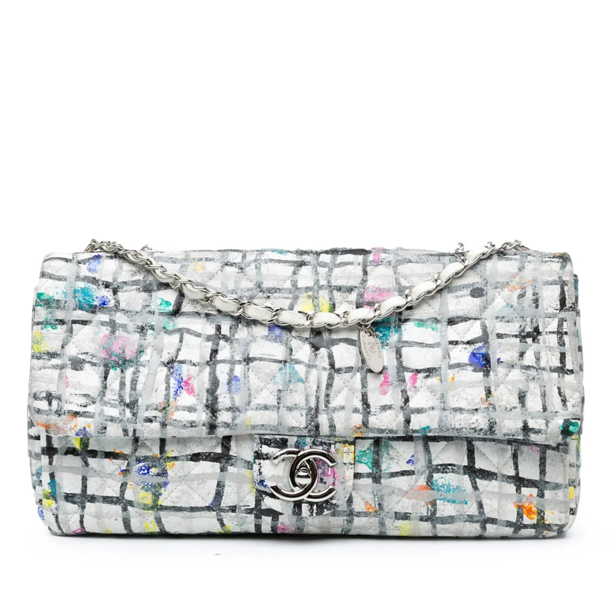 White Chanel Medium Calfskin Hand Painted Graffiti Flap Shoulder Bag - Designer Revival White Chanel Medium Calfskin Hand Painted Graffiti Flap Shoulder Bag - Designer Revival