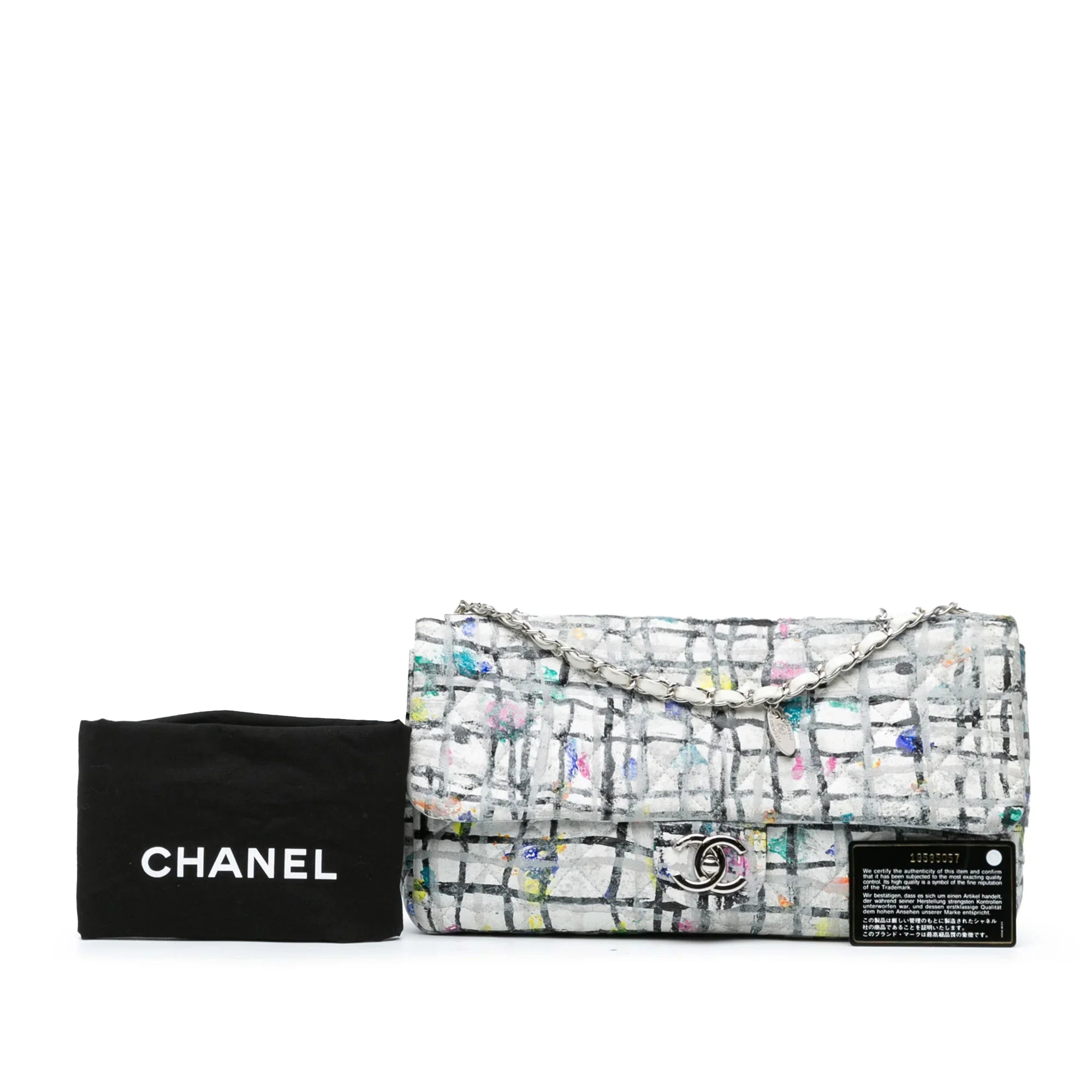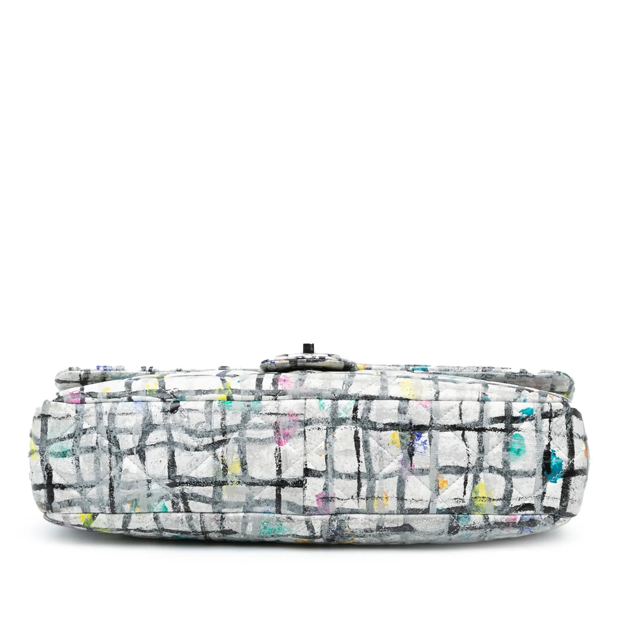 White Chanel Medium Calfskin Hand Painted Graffiti Flap Shoulder Bag