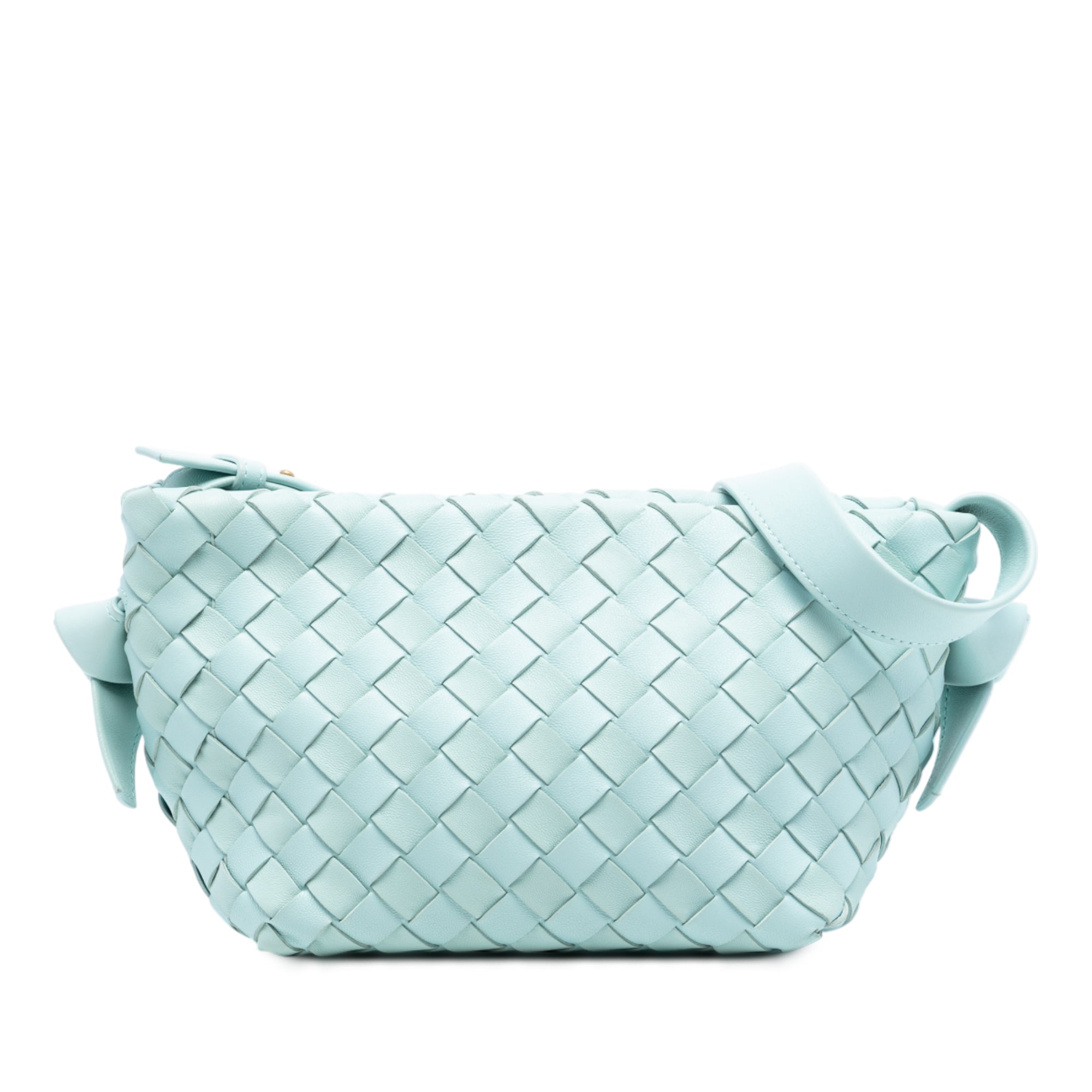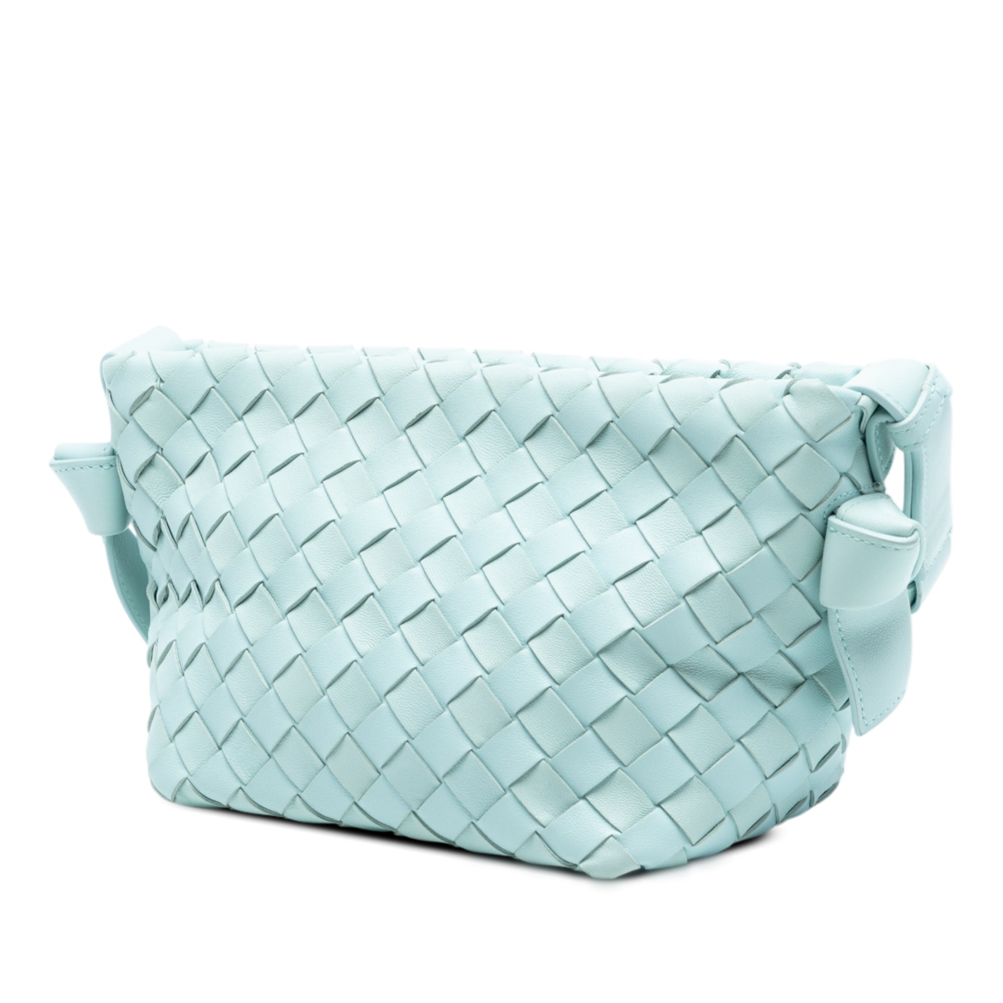 Blue Bottega Veneta Lambskin Intrecciato Tie Shoulder Bag
