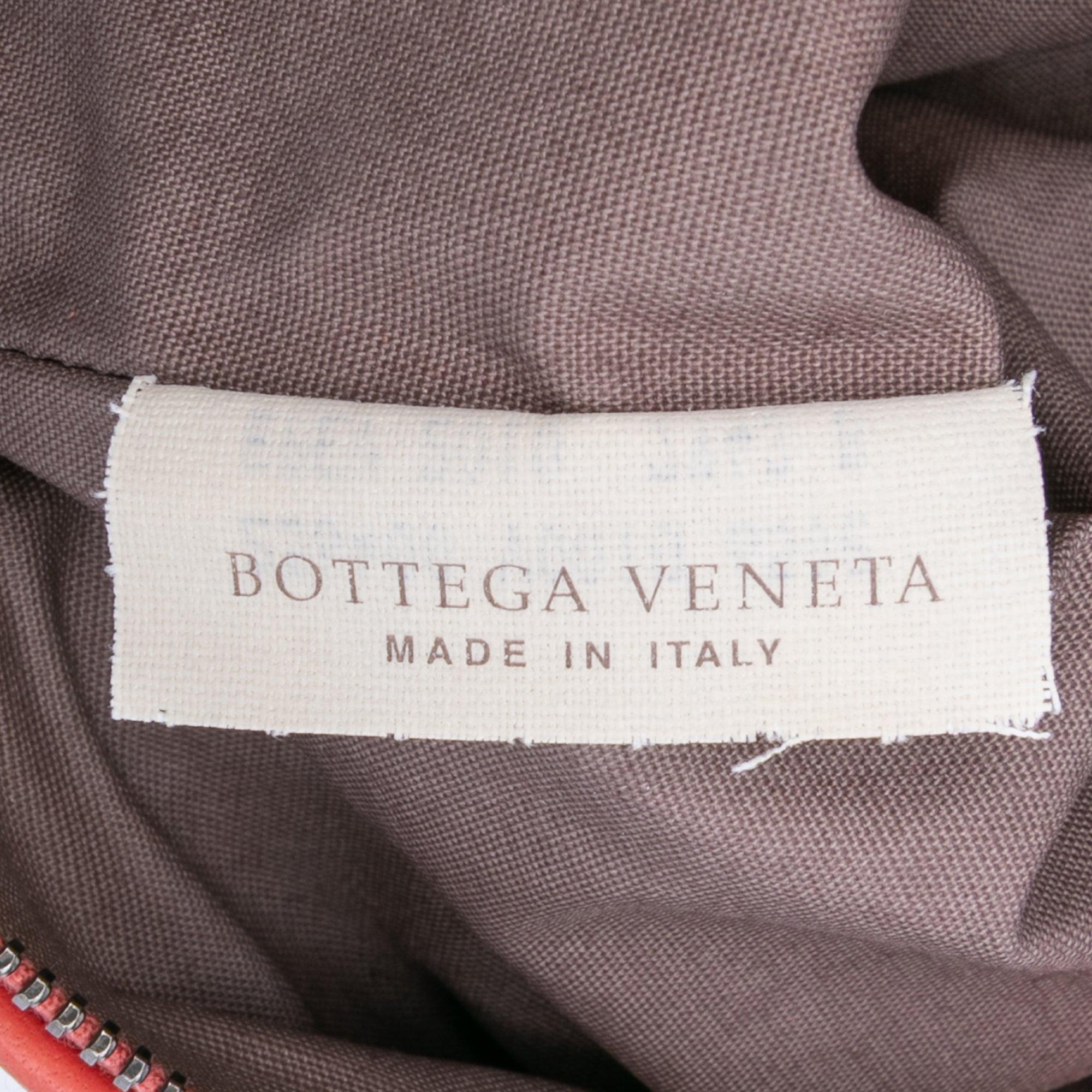 Product Details: Orange Bottega Veneta Nappa Intrecciato Clutch. This clutch bag features a woven leather body, and a top zip closure. Zipper pull has been repainted. 5.9" L x 9.4" W x 0.4" D. Serial number 256400 V0010 6502.