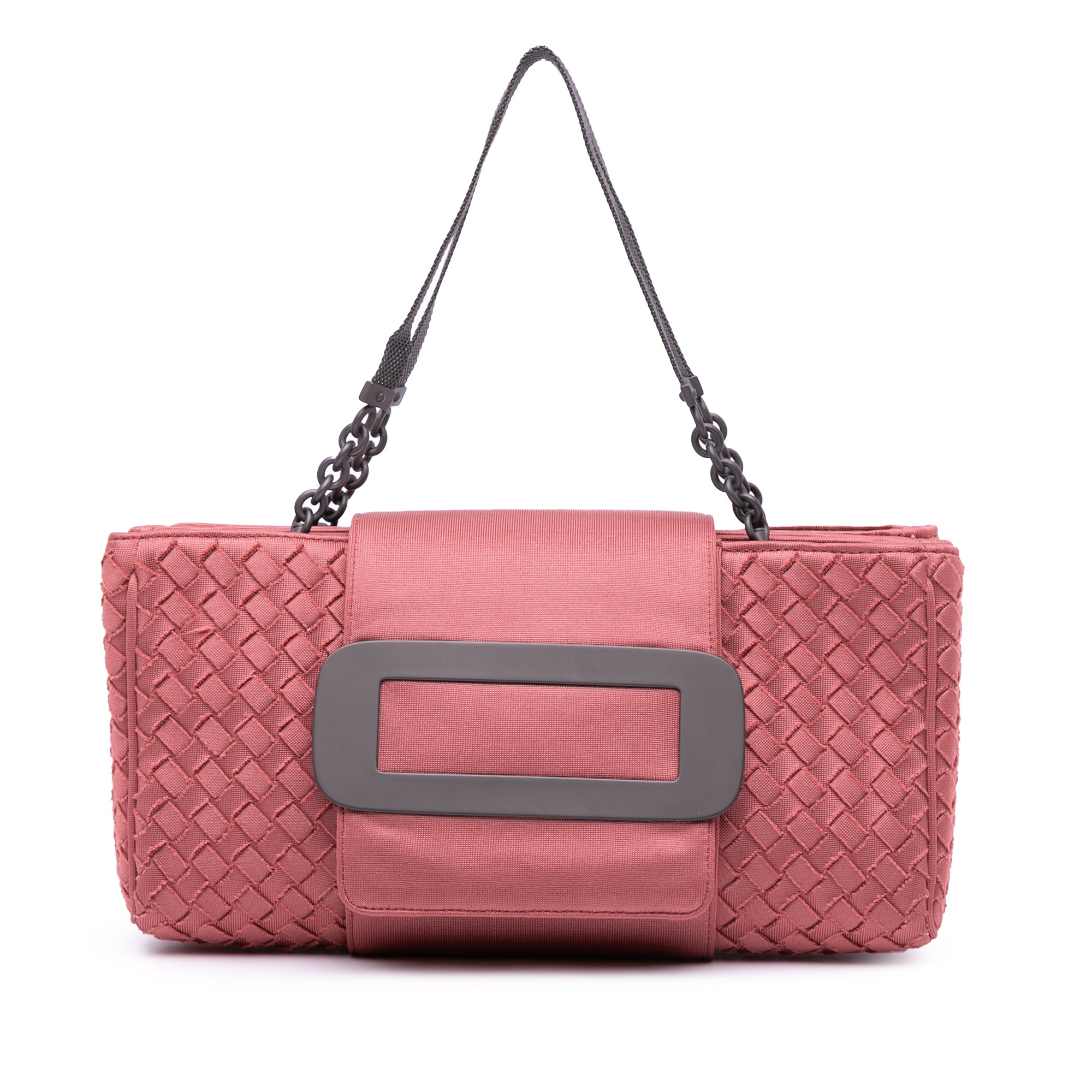 Pink Bottega Veneta Canvas Intrecciato Buckle Flap Handbag