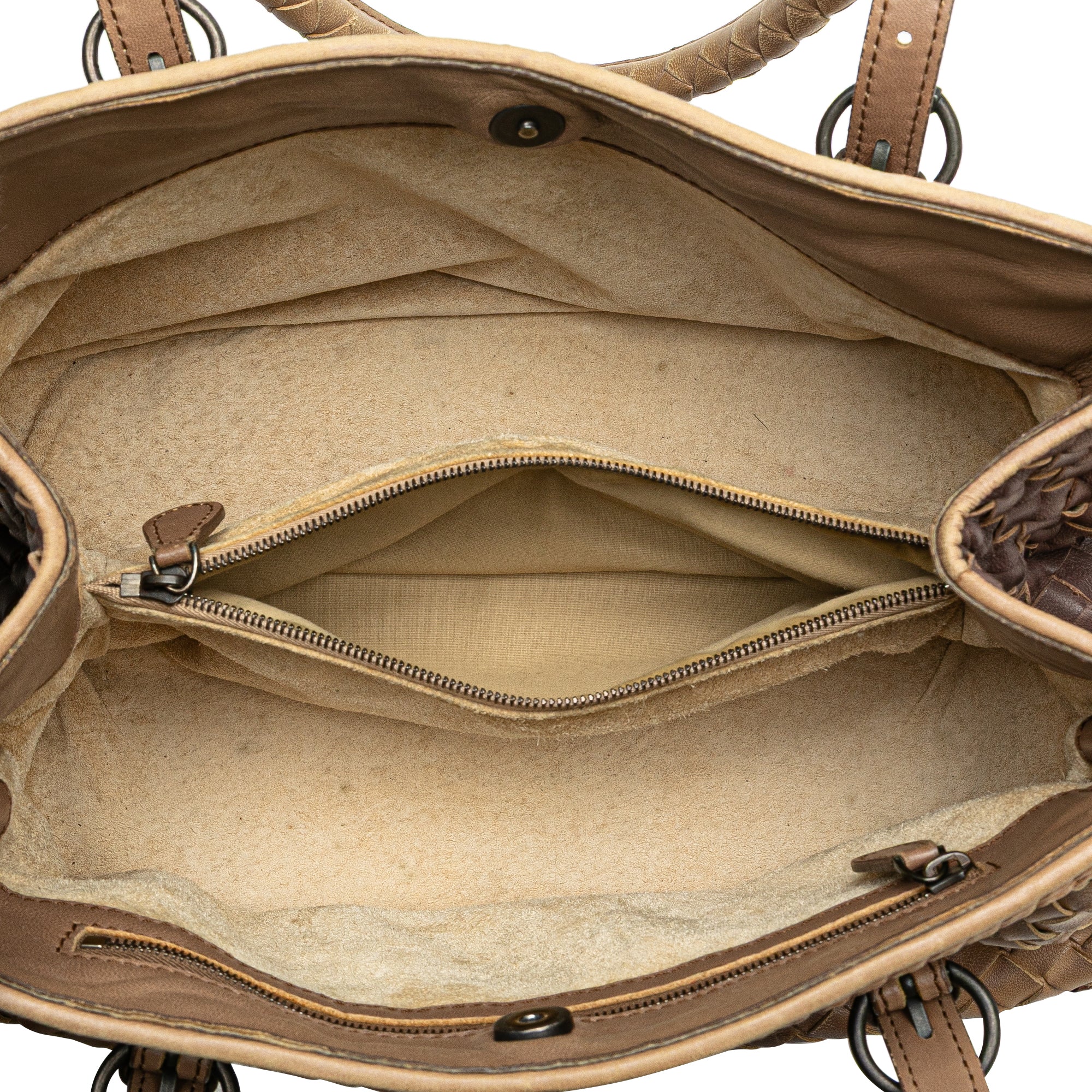 Please note this is a pre-owned item that may display signs of wear consistent with the condition listed above and shown in photos. Designer Revival guarantees this is an authentic Brown Bottega Veneta Small Nappa Gradient Intrecciato Handbag or 100% of your money back. Learn more about our authentication process.