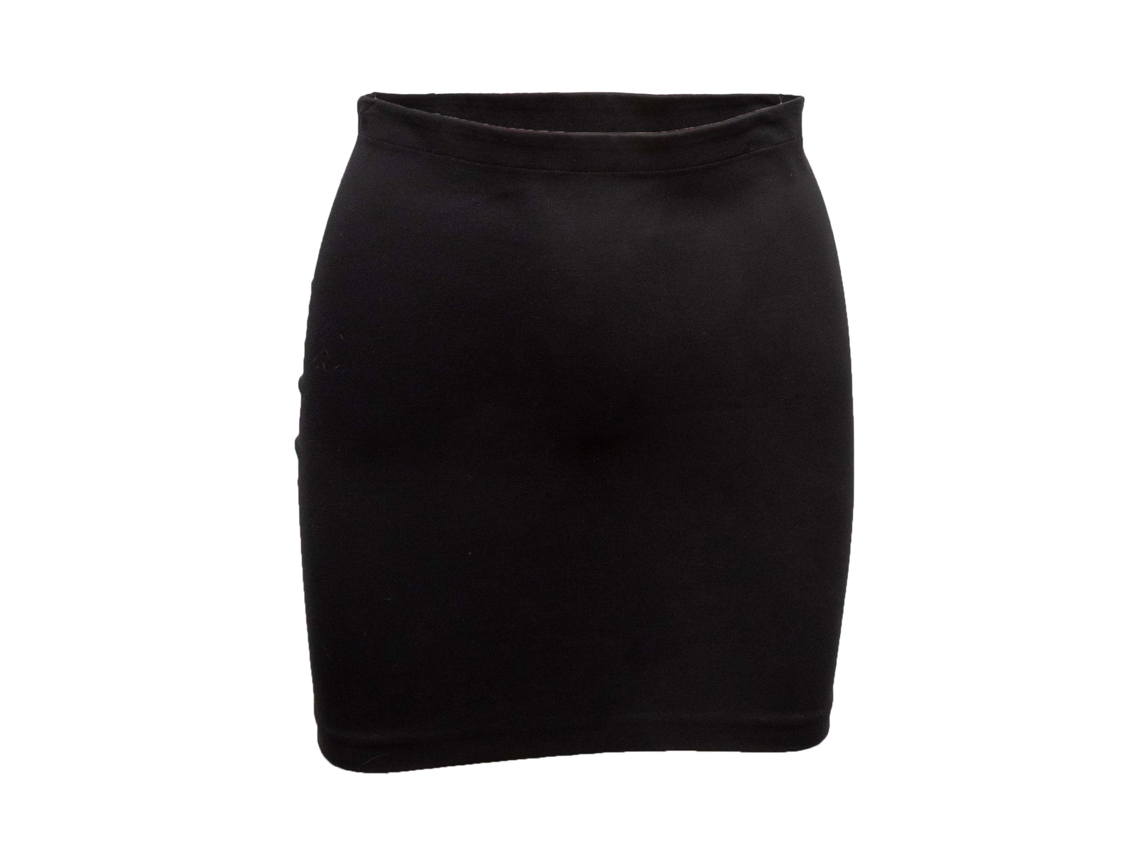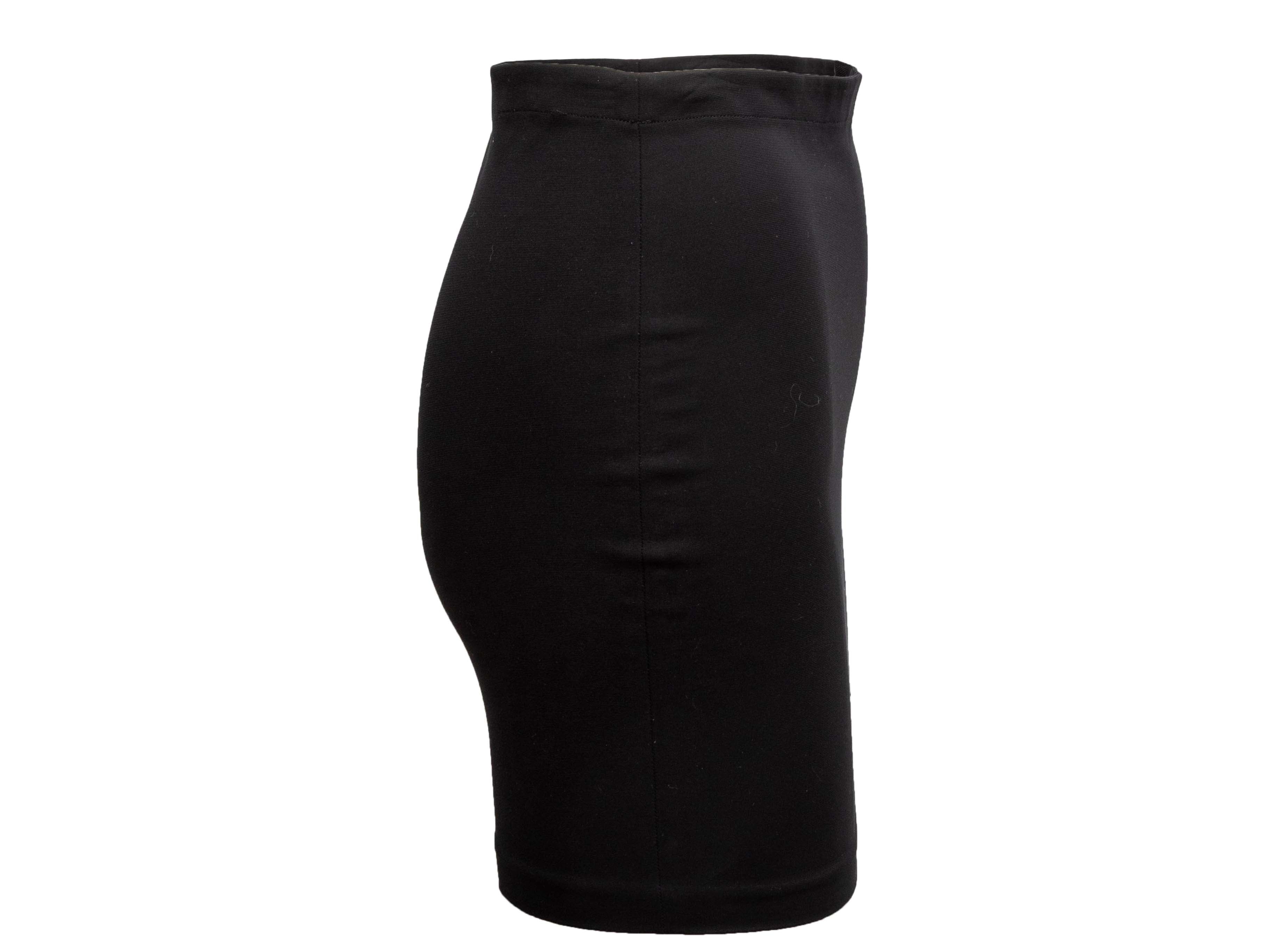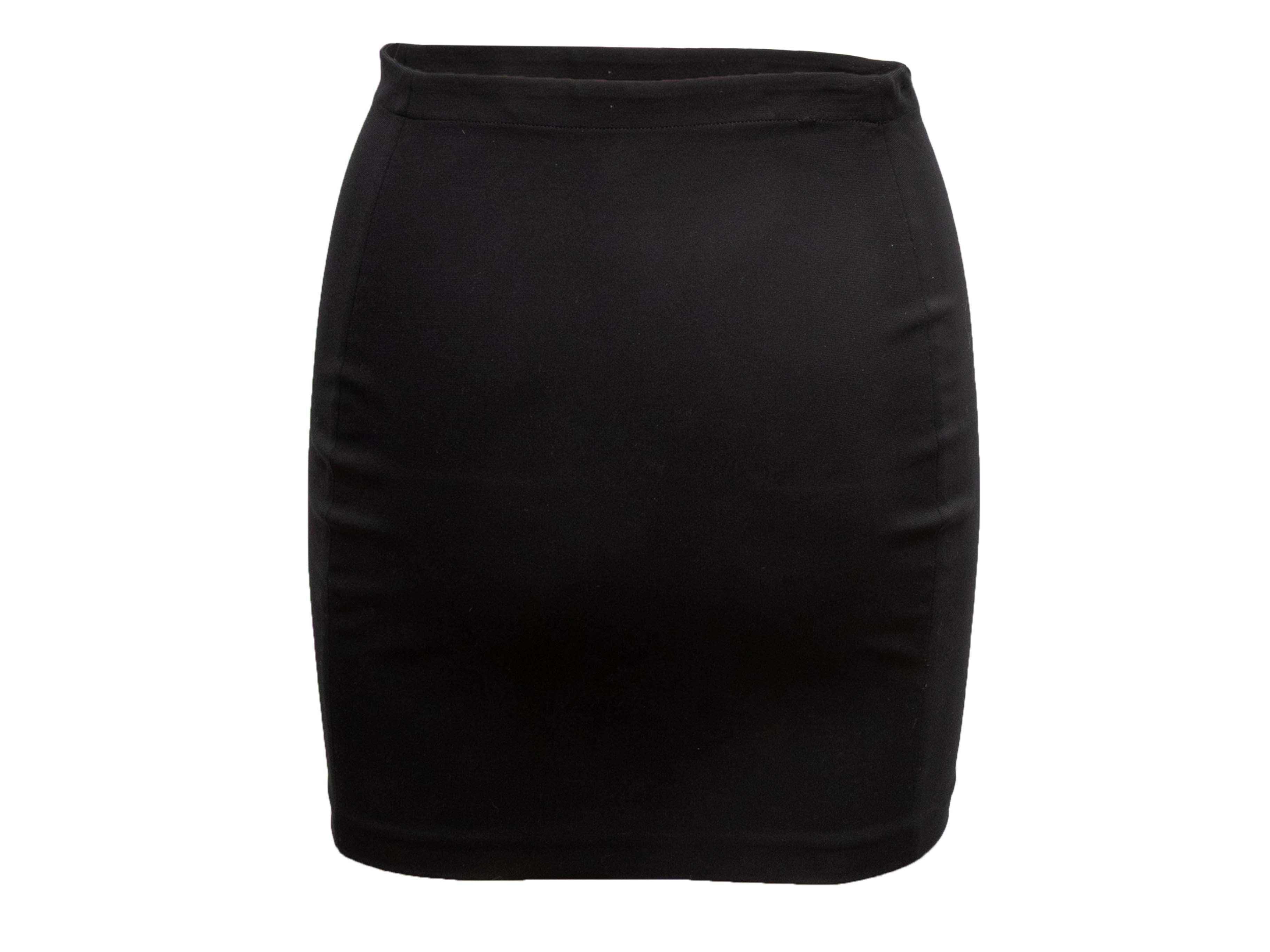 Product Details: Black bodycon mini skirt by The Row. Elasticized waistband. 25.5" waist, 30.5" hips, 15.5" length.