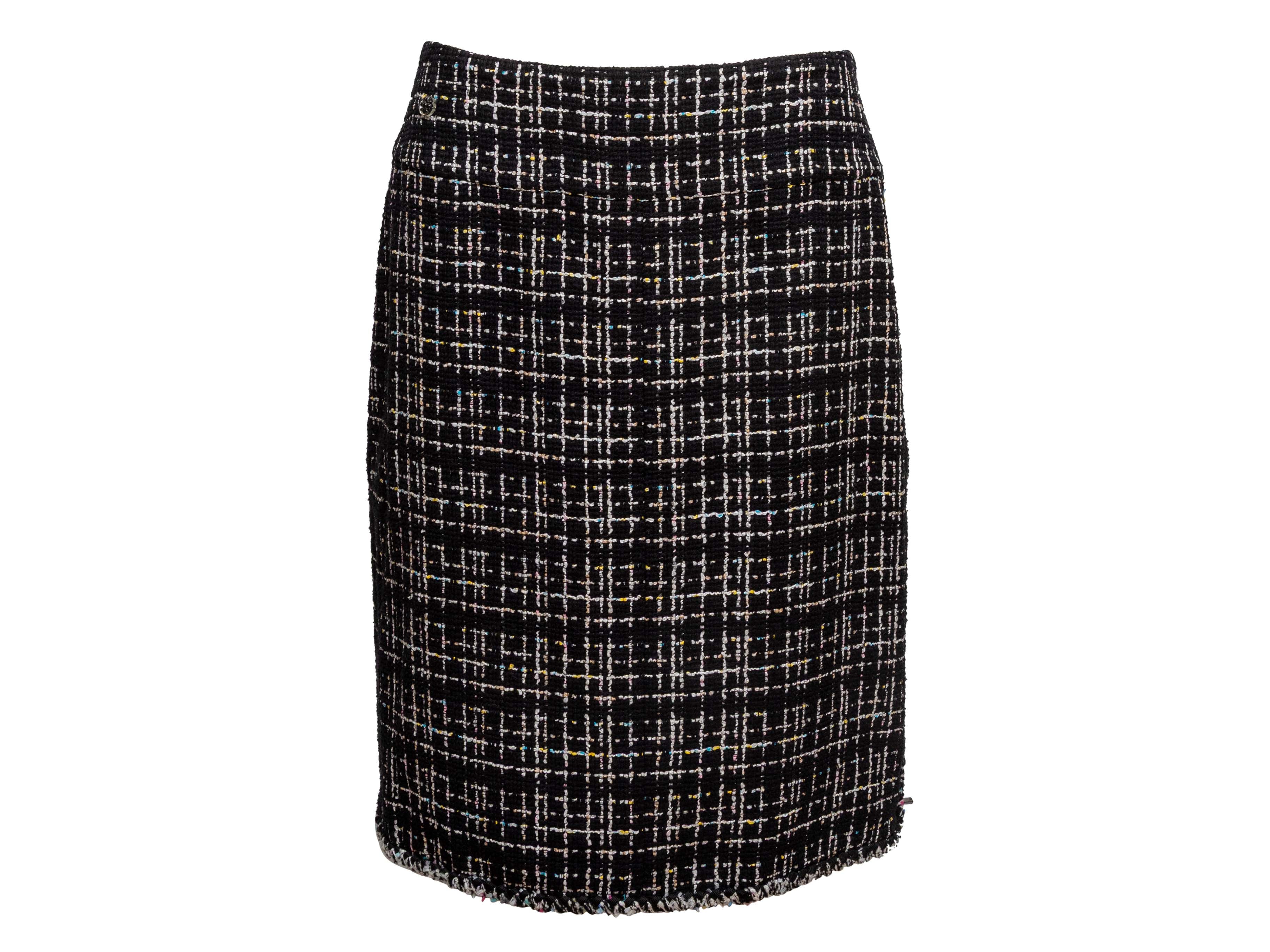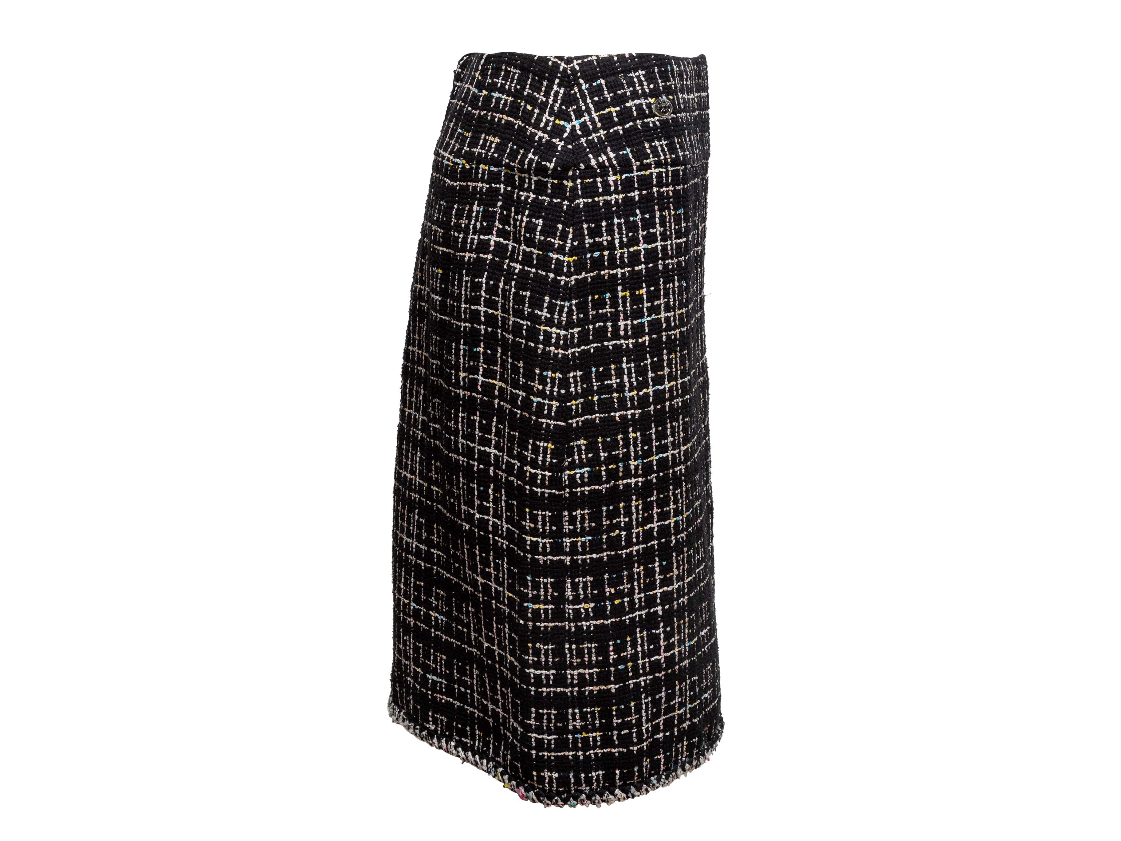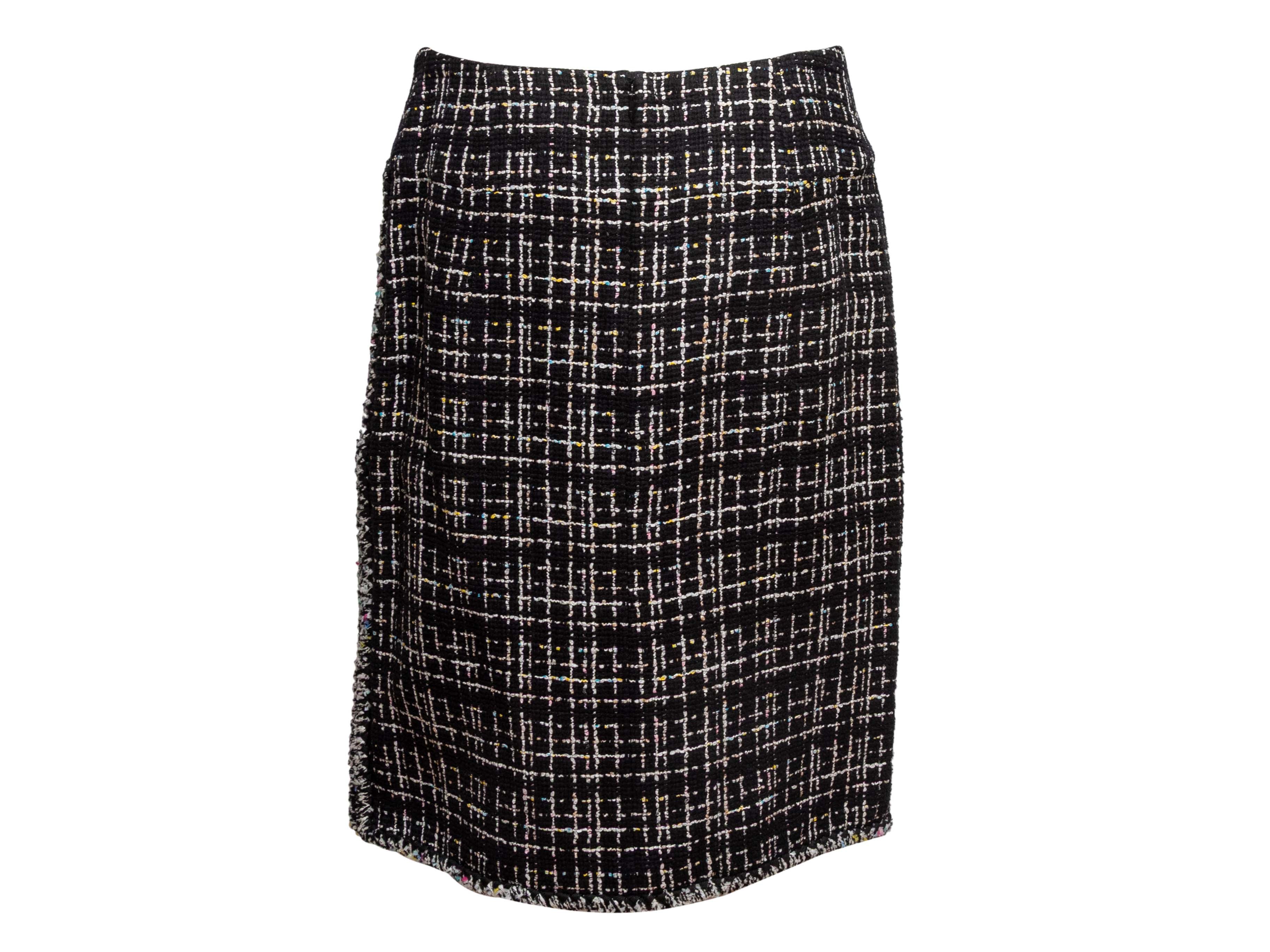 Black & White Chanel Tweed Knee-Length Pencil Skirt Size FR 42