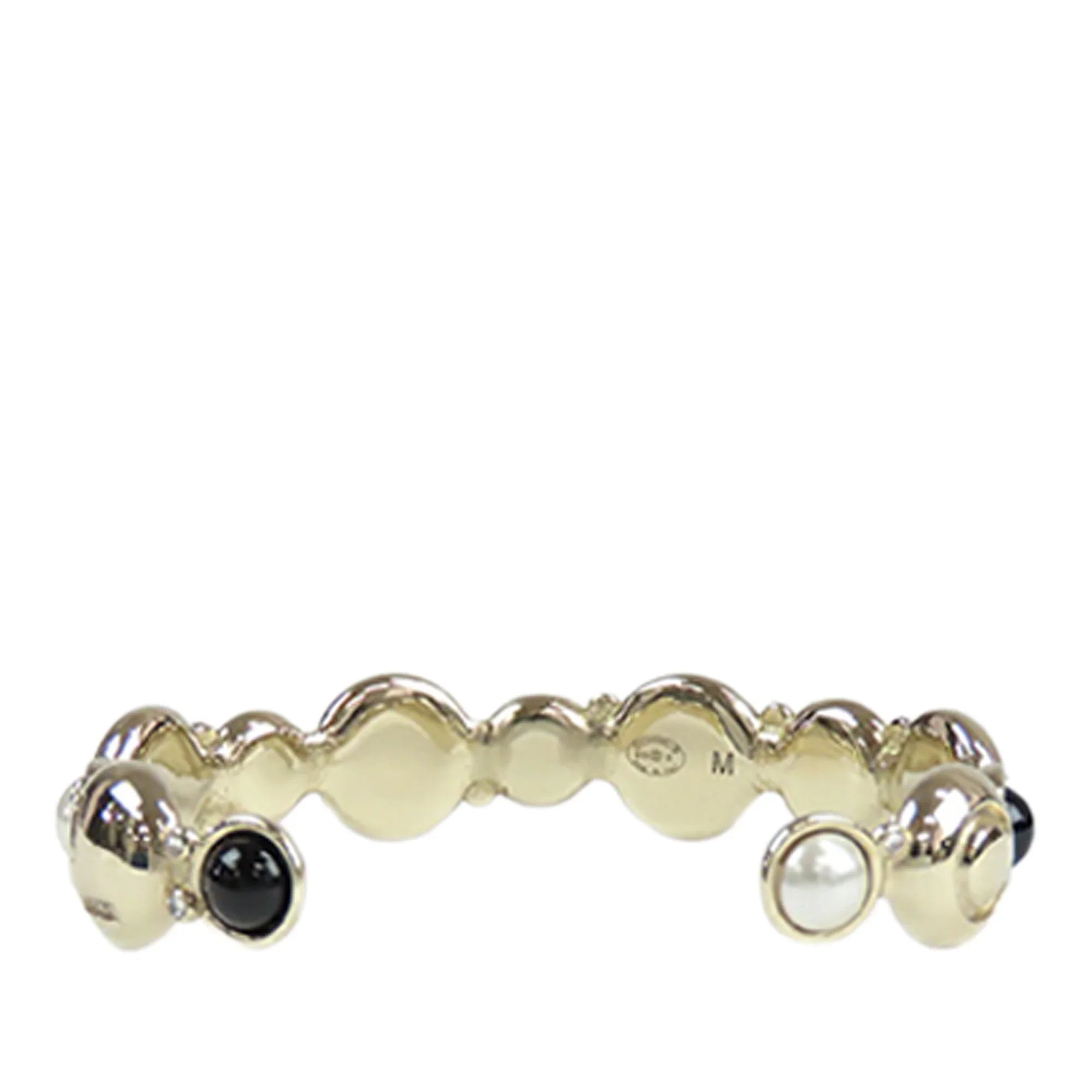 Gold Chanel Gold Plated Faux Pearl and Resin CC Cuff Bangle Bracelet