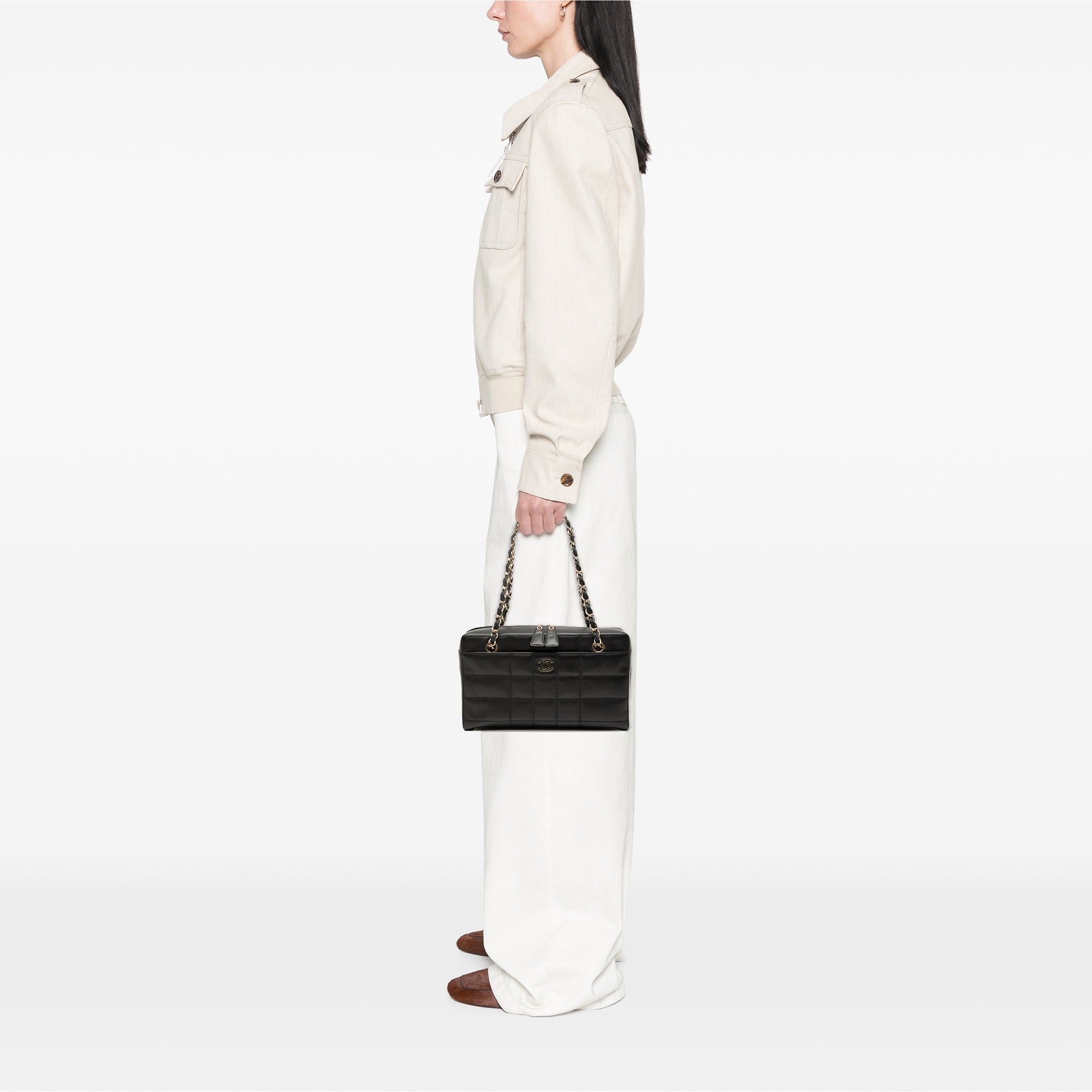 Please note this is a pre-owned item that may display signs of wear consistent with the condition listed above and shown in photos. Designer Revival guarantees this is an authentic Black Chanel CC Choco Bar Lambskin Chain Shoulder Bag or 100% of your money back. Learn more about our authentication process.
