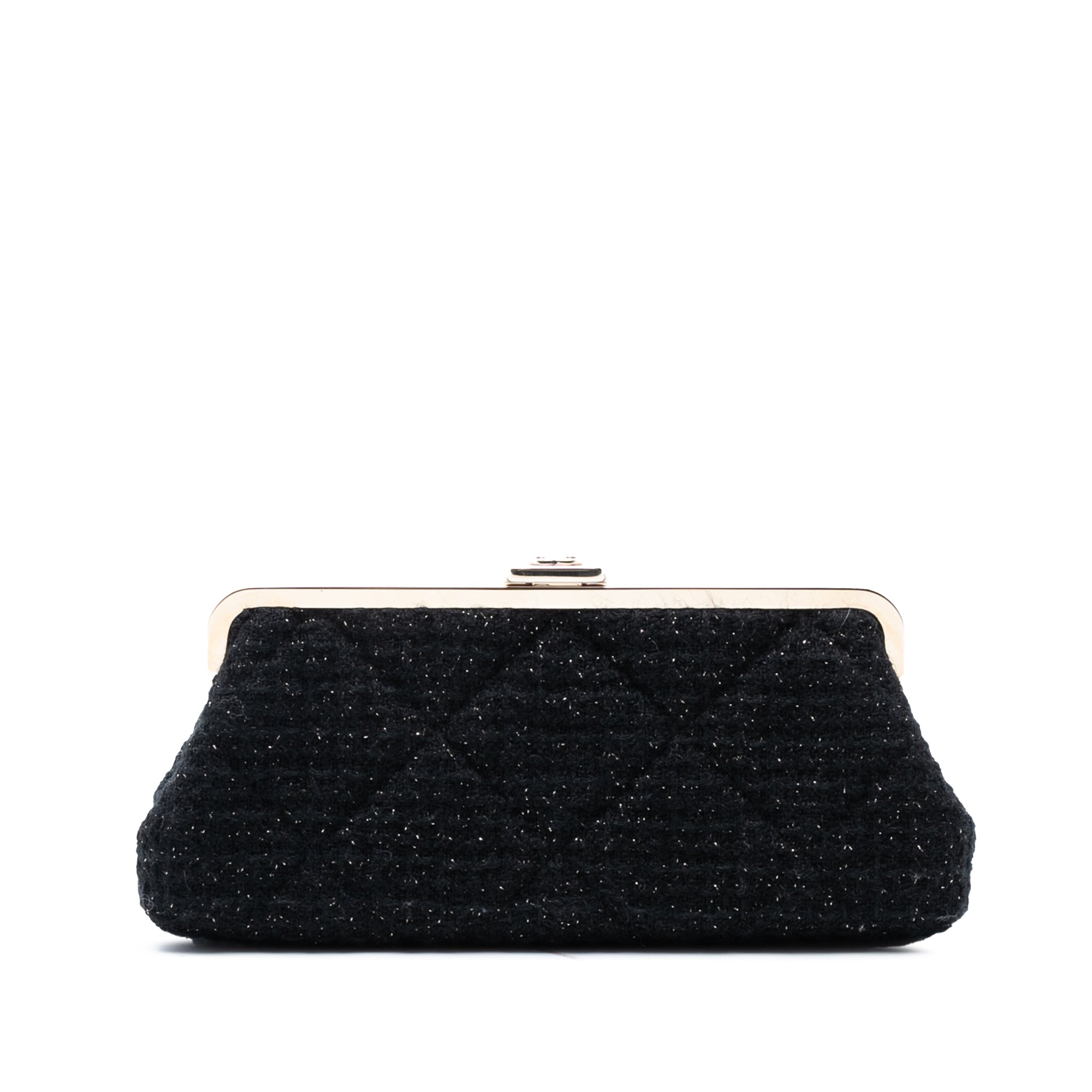 Please note this is a pre-owned item that may display signs of wear consistent with the condition listed above and shown in photos. Designer Revival guarantees this is an authentic Black Chanel Quilted Tweed Kisslock Clutch or 100% of your money back. Learn more about our authentication process.