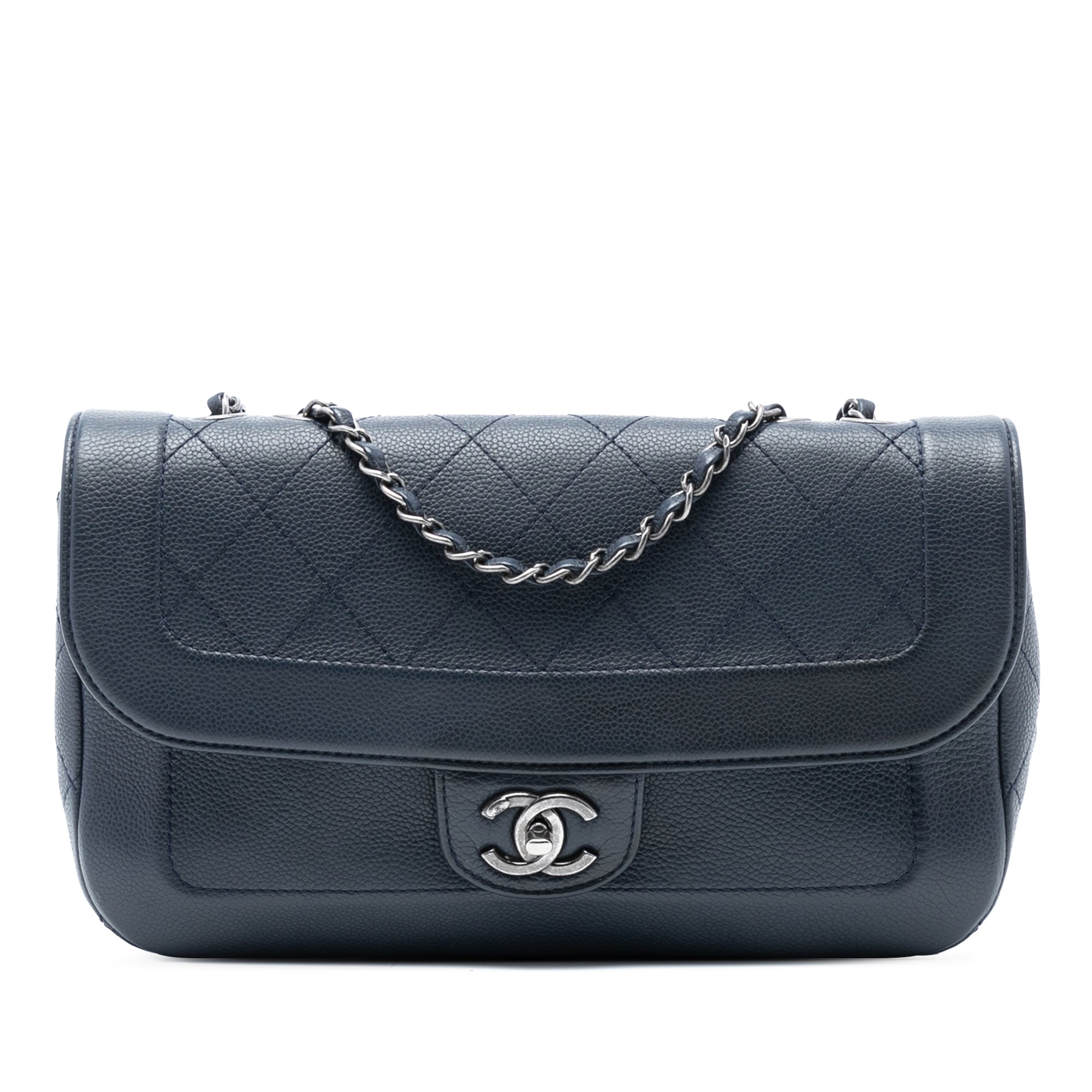 Blue Chanel CC Diamond Stitch Caviar Flap Crossbody Bag