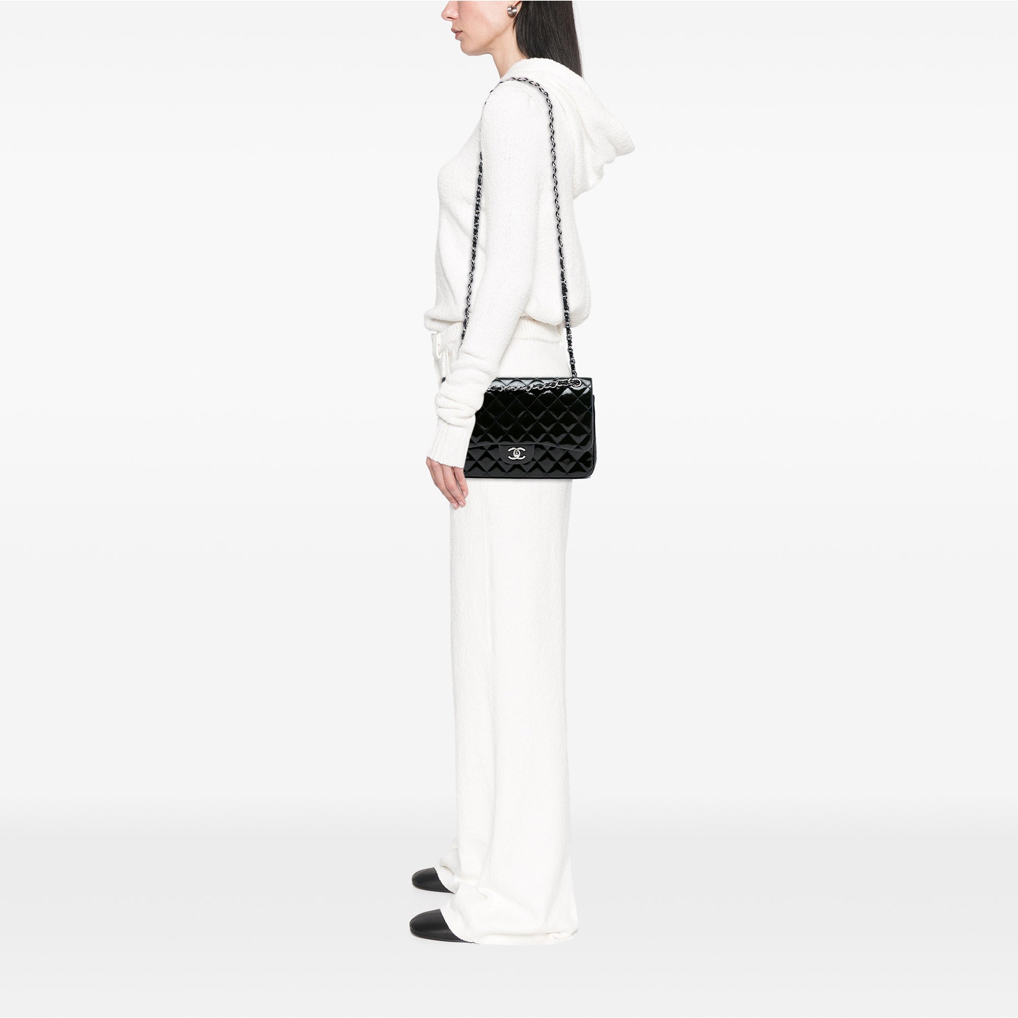 Please note this is a pre-owned item that may display signs of wear consistent with the condition listed above and shown in photos. Designer Revival guarantees this is an authentic Blue Chanel Jumbo Classic Patent Double Flap Shoulder Bag or 100% of your money back. Learn more about our authentication process.